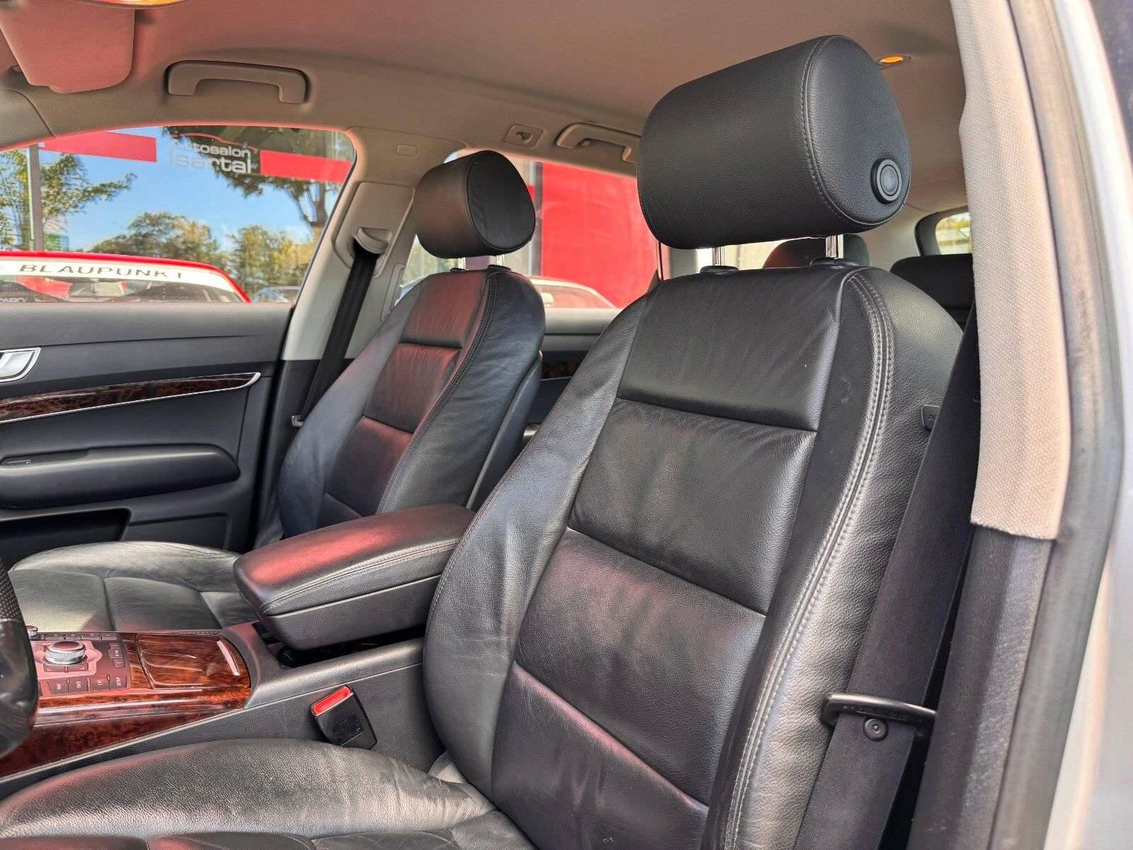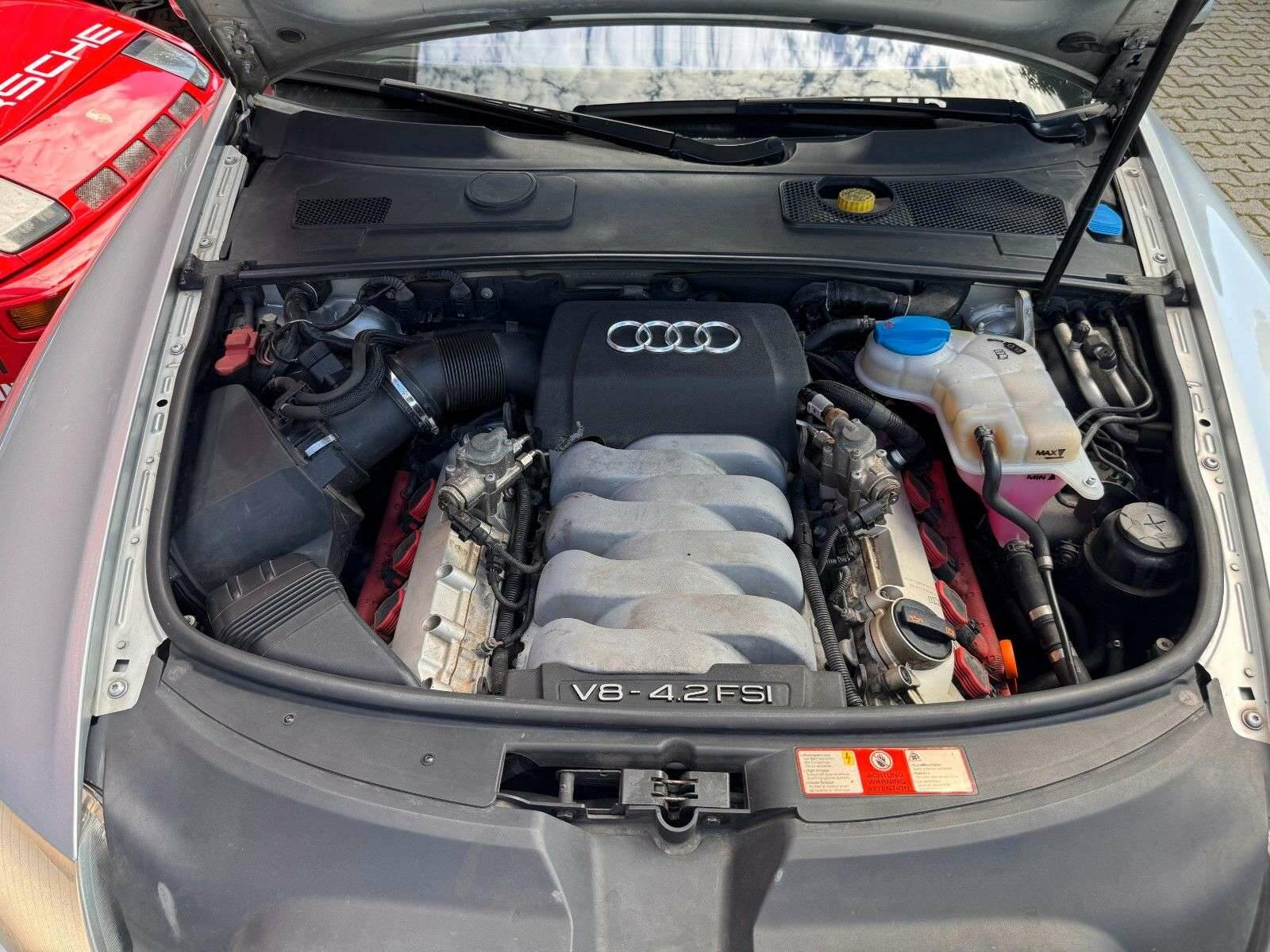 Airbag Fahrer-/Beifahrerseite, Antriebs-Schlupfregelung (ASR), Automatische Fahrlichtschaltung (ALS), Außenspiegel asphärisch, links, Außenspiegel asphärisch, rechts, Außenspiegel elektr. verstell- und heizbar, beide, Außenspiegel Wagenfarbe, Außentemperaturanzeige, Dachreling, Elektron. Differentialsperre (EDS), Fahrwerk (adaptive air suspension), Fensterheber elektrisch vorn + hinten, Frontscheibe mit Bandfilter oben, Gepäckraum-Abtrennung (Netz), Gepäckraumabdeckung / Rollo, Heckscheibe heizbar, Heckscheibenwischer, Innenausstattung: Dekoreinlagen Holz Vavona Assam-Grau, Isofix-Aufnahmen für Kindersitz, Karosserie: 4-türig, Komfort-Klimaautomatik 3-Zonen, Kopf-Airbag-System (Sideguard), Kopfstützen hinten (3-fach), Kraftstofftank: 80 Ltr., Lendenwirbelstützen vorn, elektr. verstellbar, LM-Felgen, Motor 4,2 Ltr. - 257 kW V8 32V FSI, Reifen-Reparaturkit, Rücksitzlehne geteilt/klappbar, Scheibenwaschdüsen heizbar, Seitenairbag vorn, Sitzbezug / Polsterung: Leder Milano, Sitze vorn elektr. verstellbar, Sitzheizung vorn