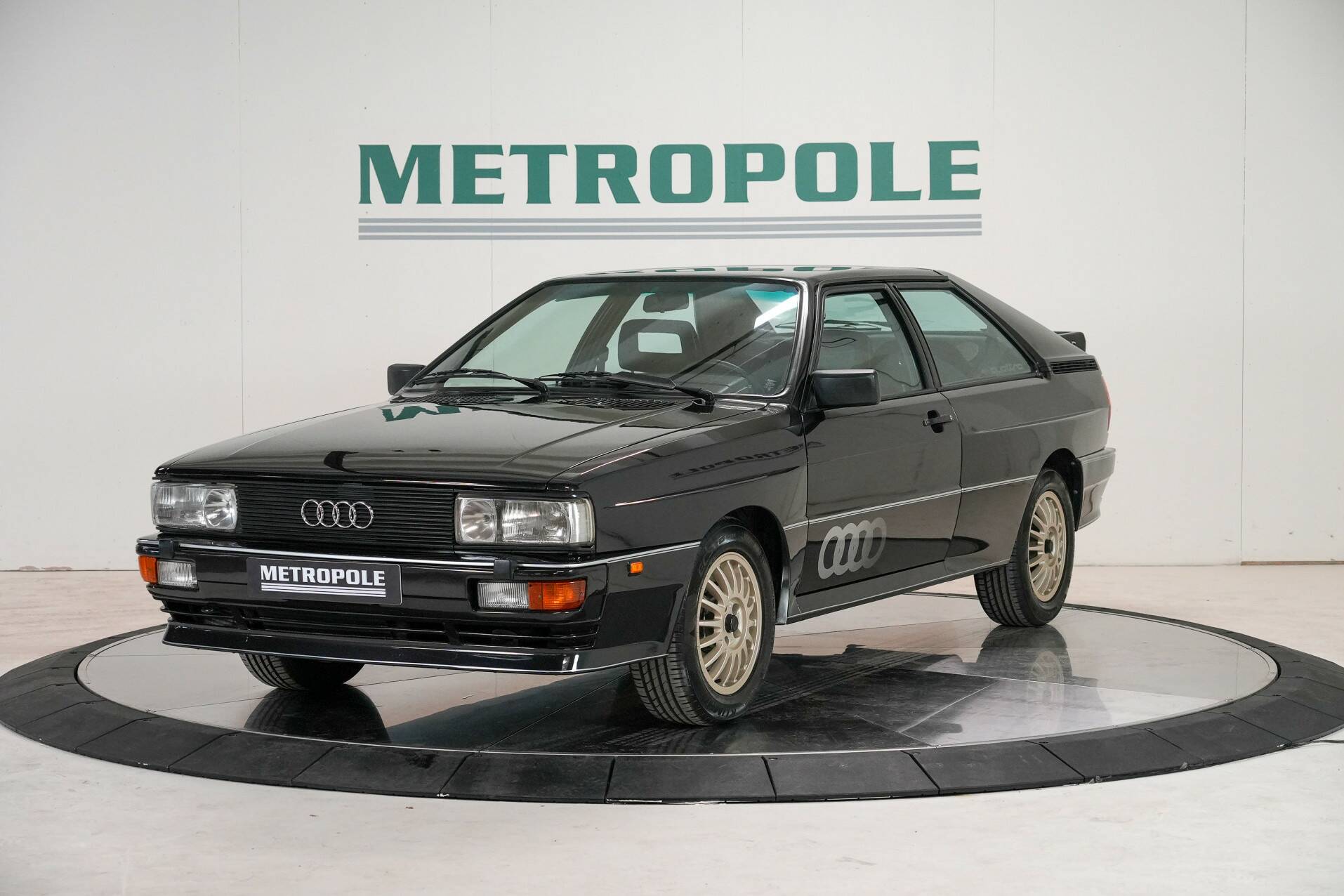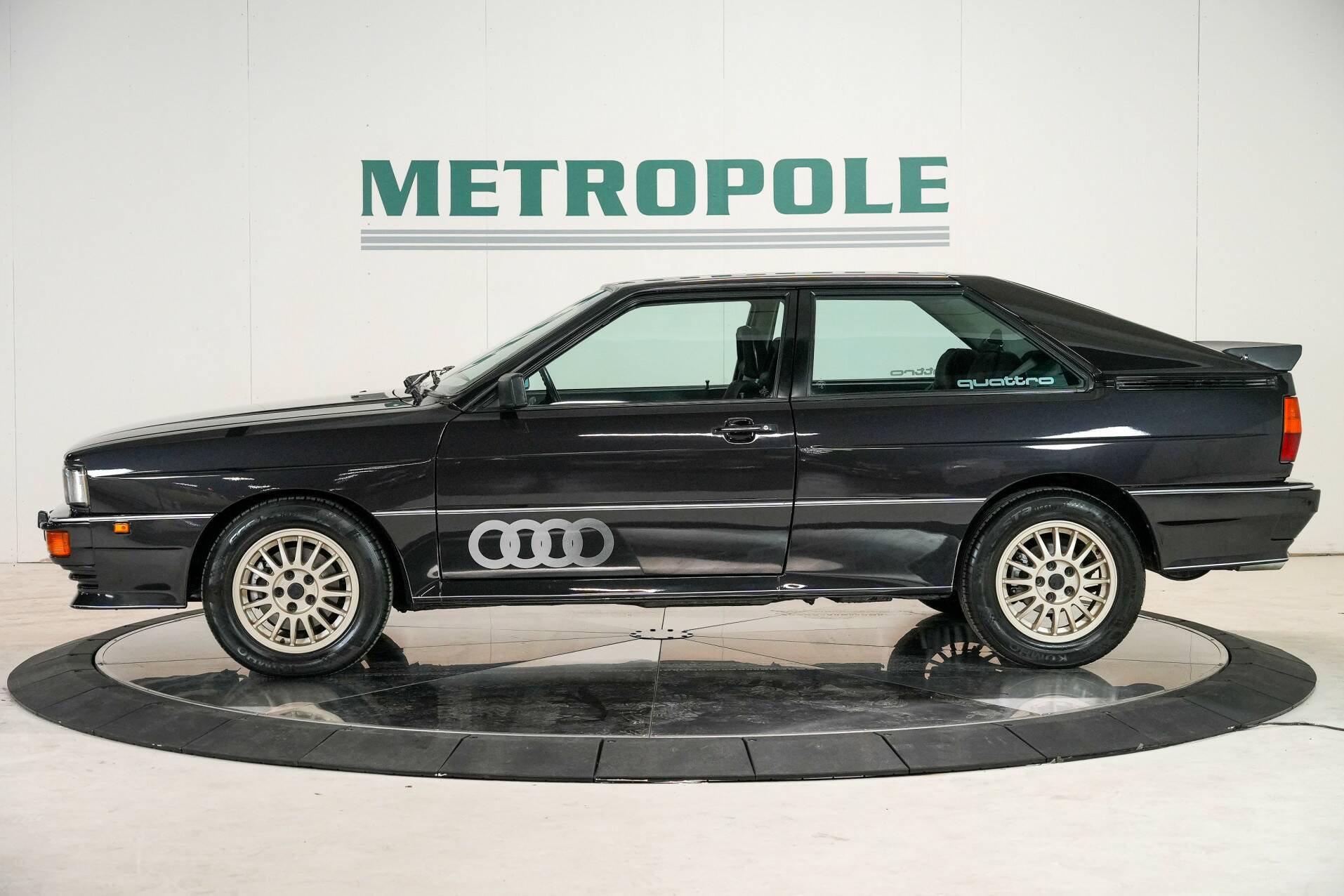 Der hier gezeigte quattro stammt aus dem Jahr 1983. Er ist schwarz mit einer dunkelgrauen Innenausstattung und grünen Zierelementen. Der Wagen hat nur 117.000 km auf dem Tacho und fährt sich wie neu. Sein Klang ist einfach grandios – erzeugt vom 200 PS starken Fünfzylinder-Turbomotor! Für seine Zeit ein extrem leistungsstarker Motor. Er gilt als Ikone der Automobilwelt, setzte Maßstäbe für Audi und inspirierte viele andere Hersteller.