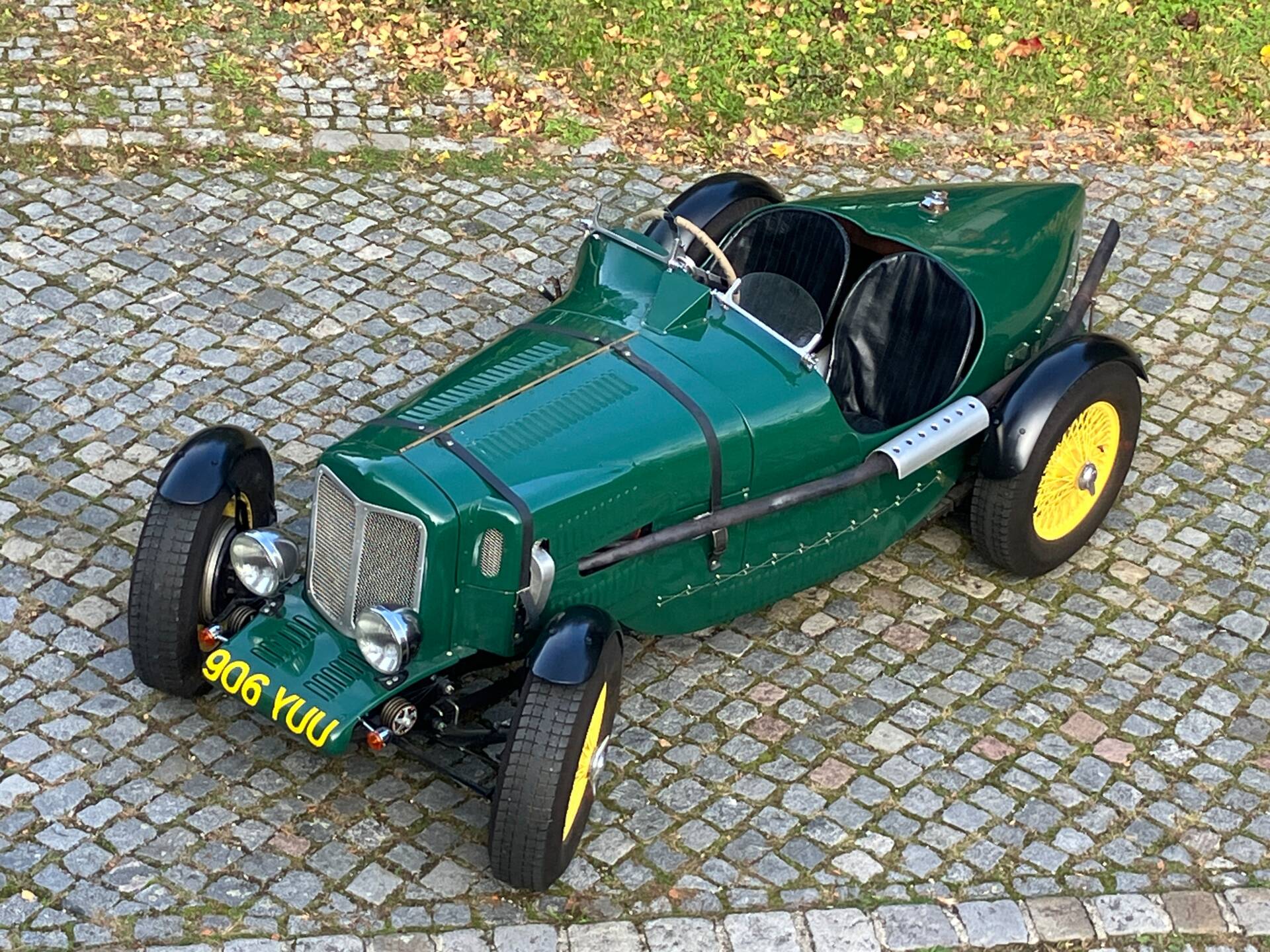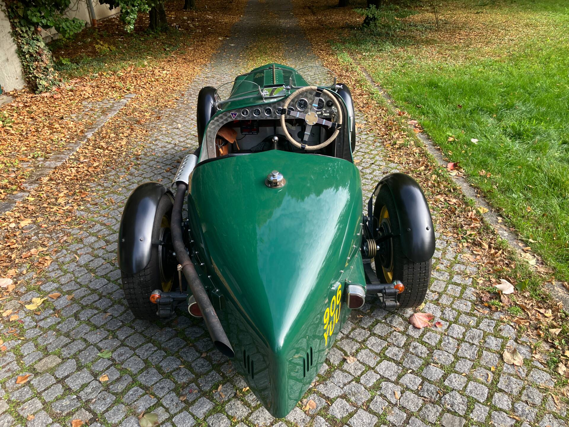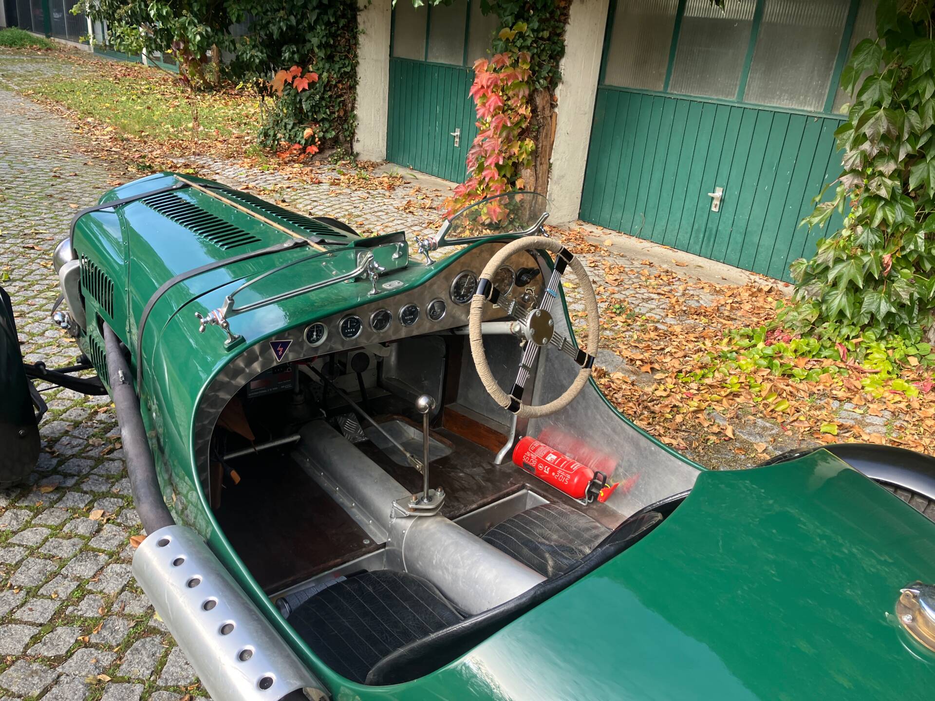 Die Karosserie wurde von Hand aus Aluminium gefertigt und entspricht den Rennwagen der 30-iger Jahren. Der Motor ist von einem Ford 100 E, das Getriebe ist noch vom Austin 10. Der Motor bekam einen Kompressor, damit doch ein bisschen mehr Leistung zur Verfügung steht. Der Sound dieses Wagen ist unbeschreiblich gut.