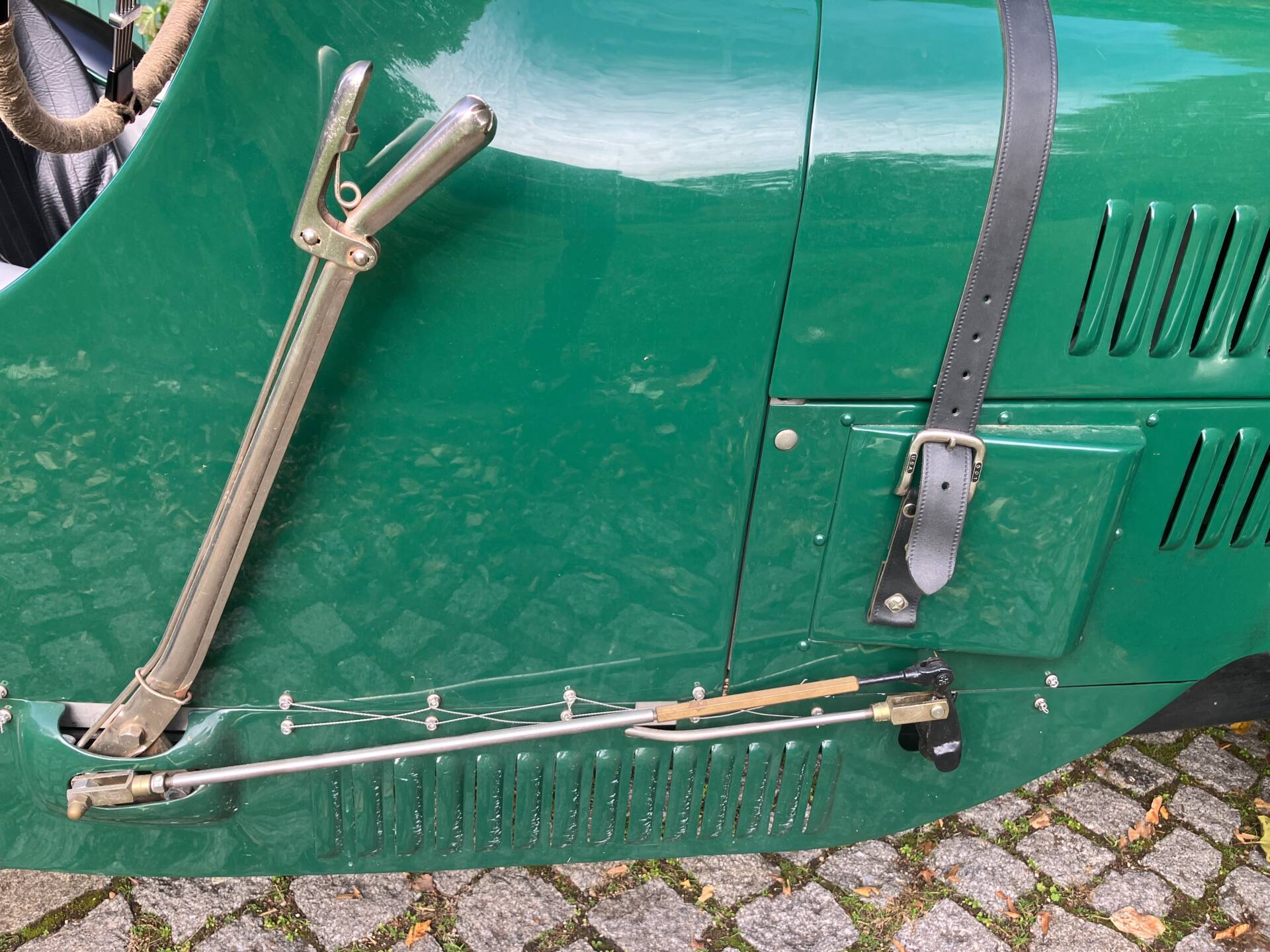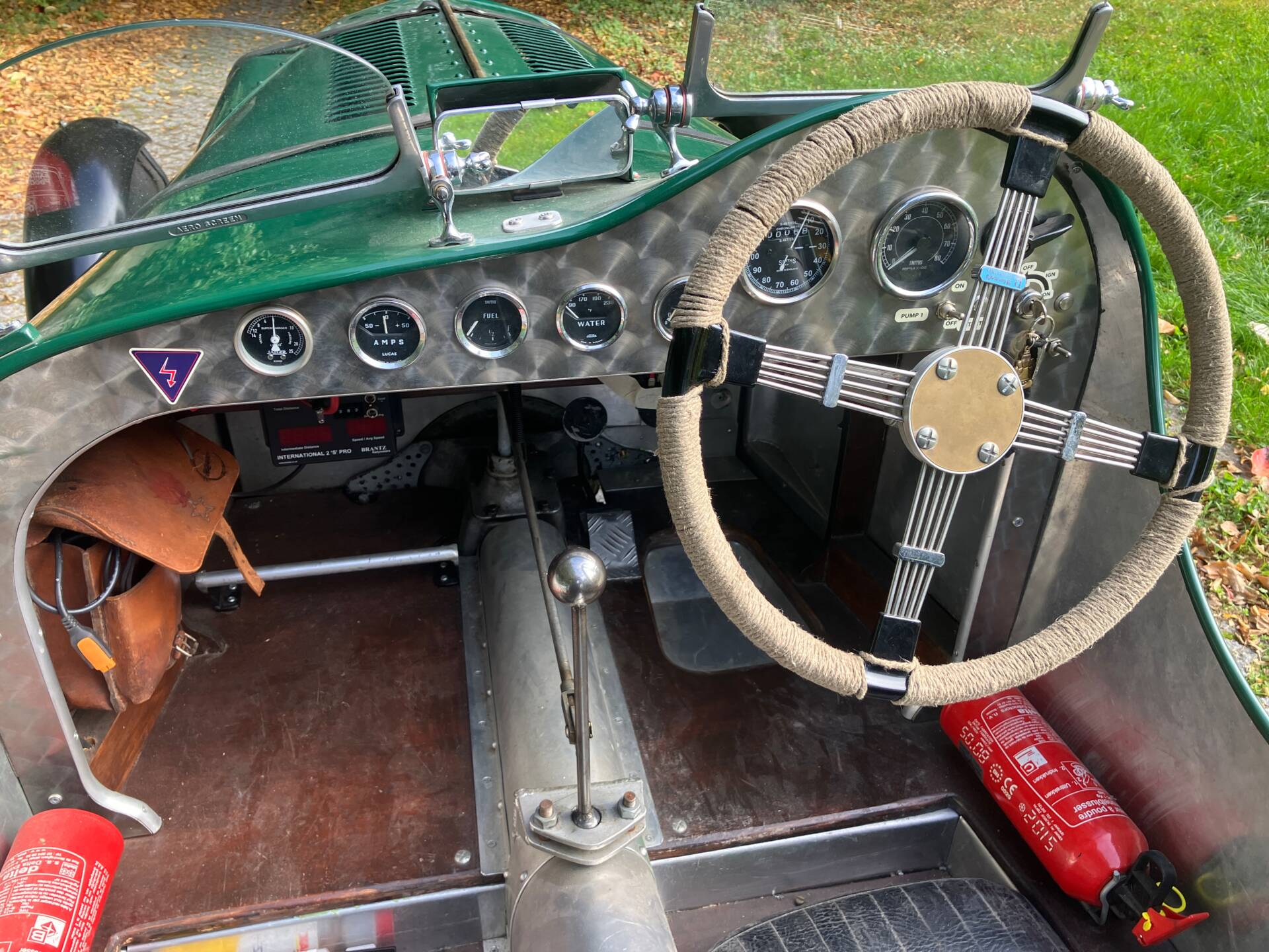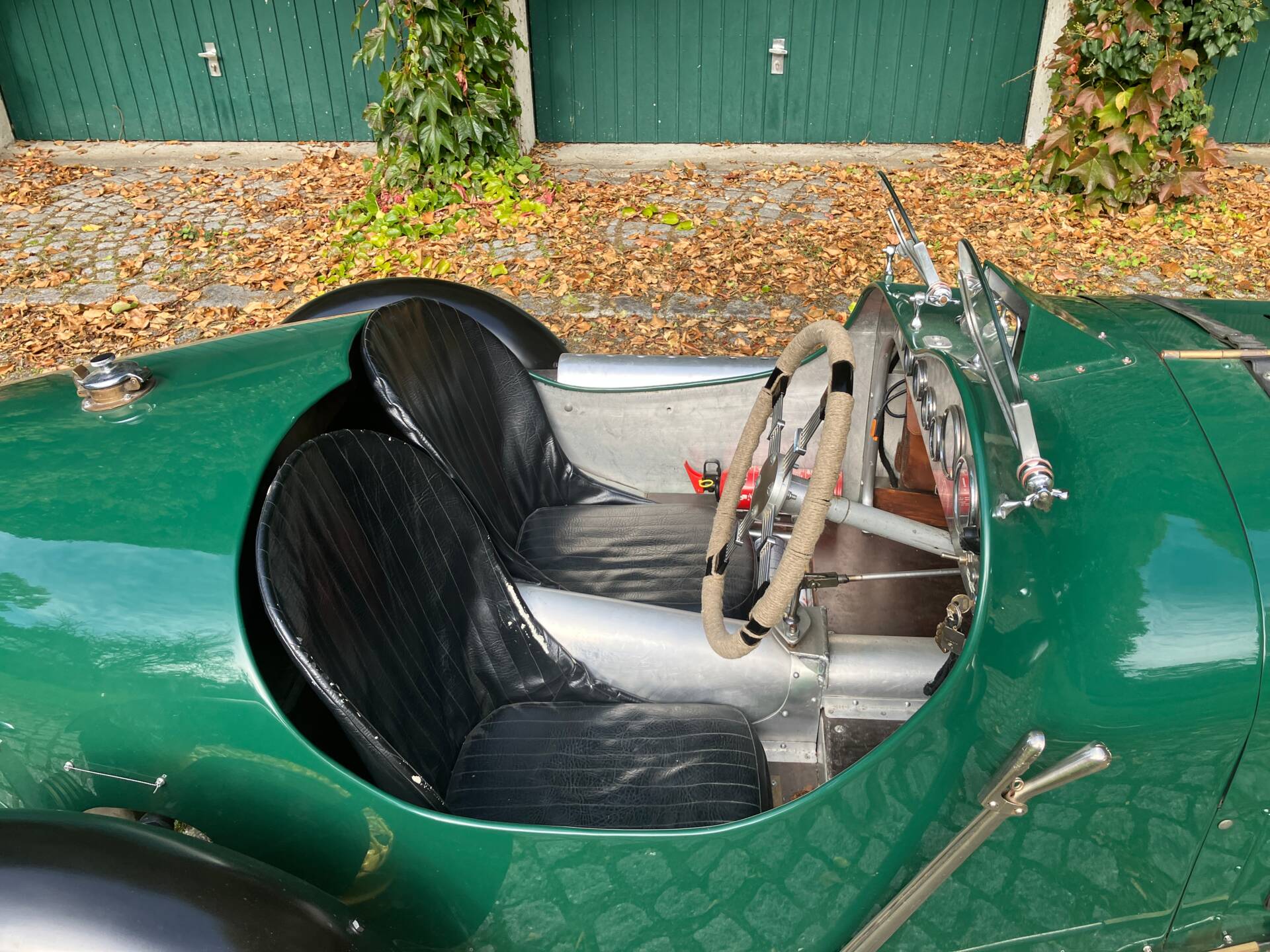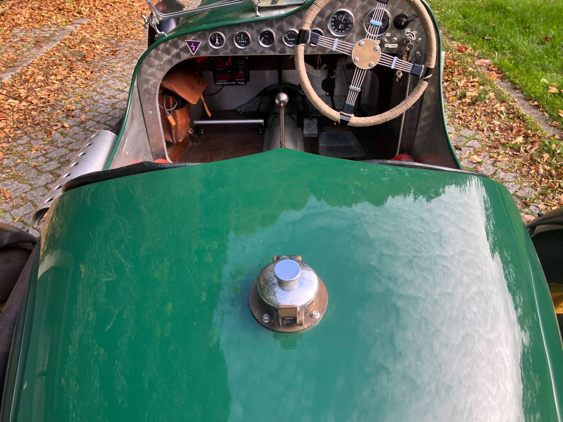 Die Karosserie wurde von Hand aus Aluminium gefertigt und entspricht den Rennwagen der 30-iger Jahren. Der Motor ist von einem Ford 100 E, das Getriebe ist noch vom Austin 10. Der Motor bekam einen Kompressor, damit doch ein bisschen mehr Leistung zur Verfügung steht. Der Sound dieses Wagen ist unbeschreiblich gut.