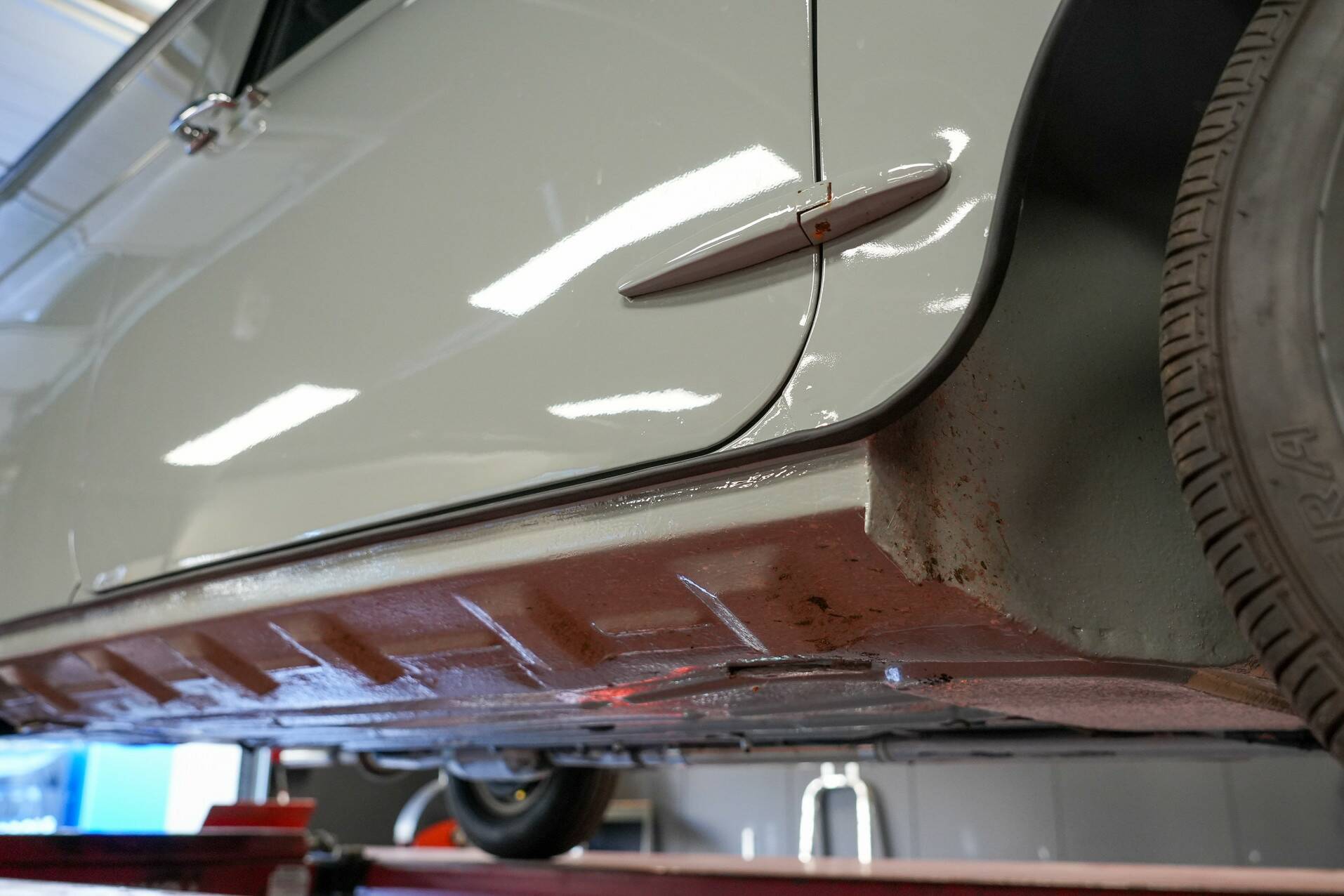 Der Unterboden ist komplett rostfrei und in sehr gutem Zustand. Einen originalen Mini zu fahren ist ein einzigartiges Erlebnis. Die Nähte sind unglaublich präzise. Dies ist der Minivan für alle, die ein perfektes Original suchen.