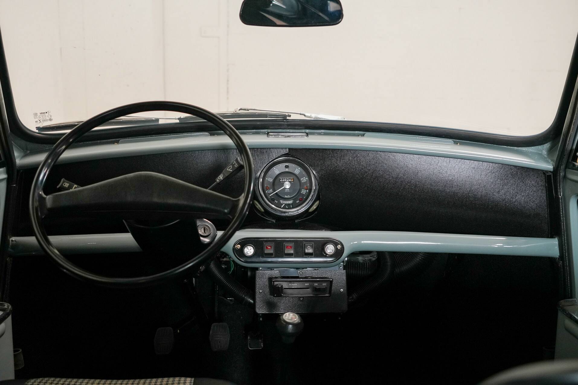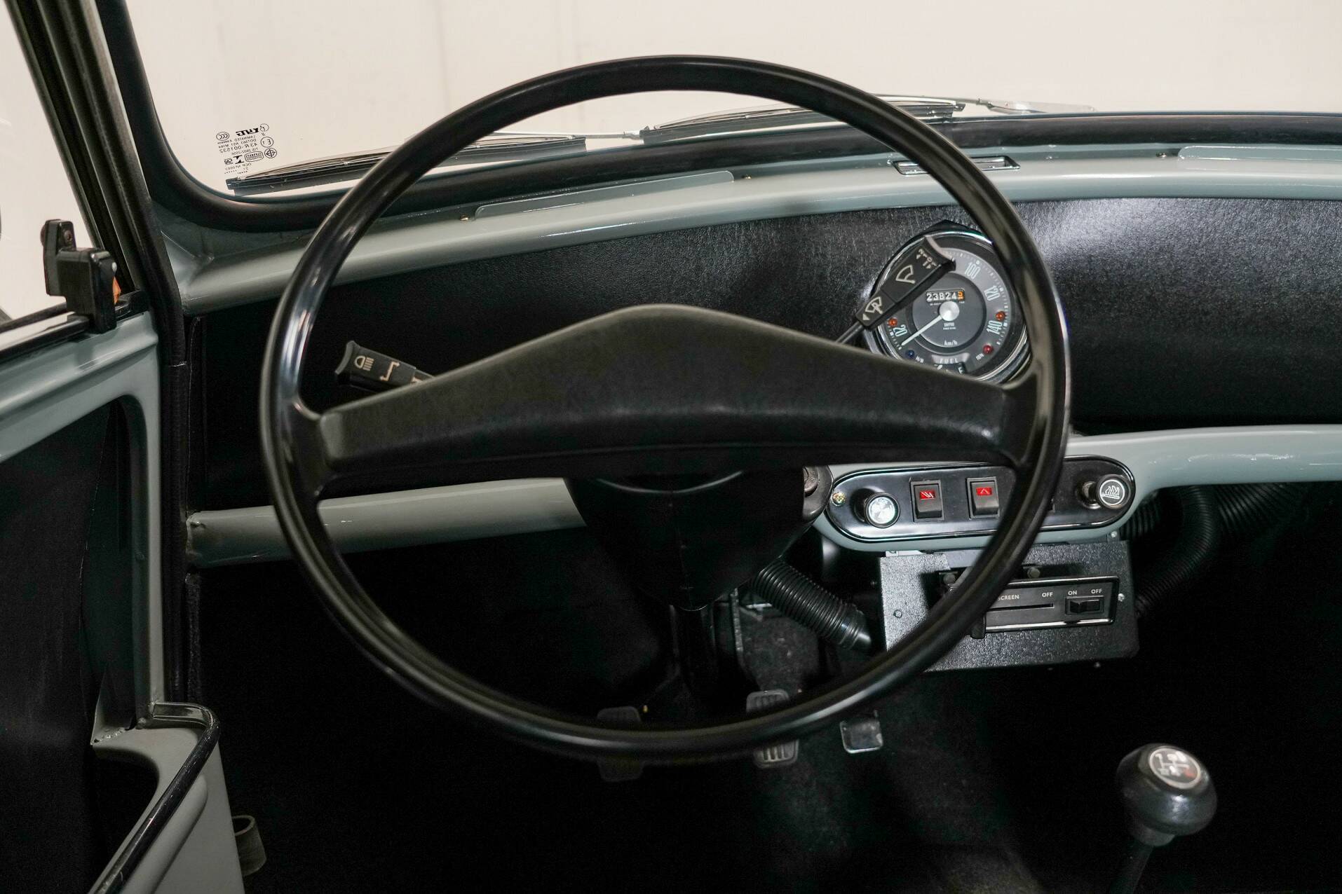 Der hier präsentierte Mini ist weitgehend original und verfügt noch über den originalen 848-cm³-Motor. Auch der Innenraum ist unverändert und somit original.