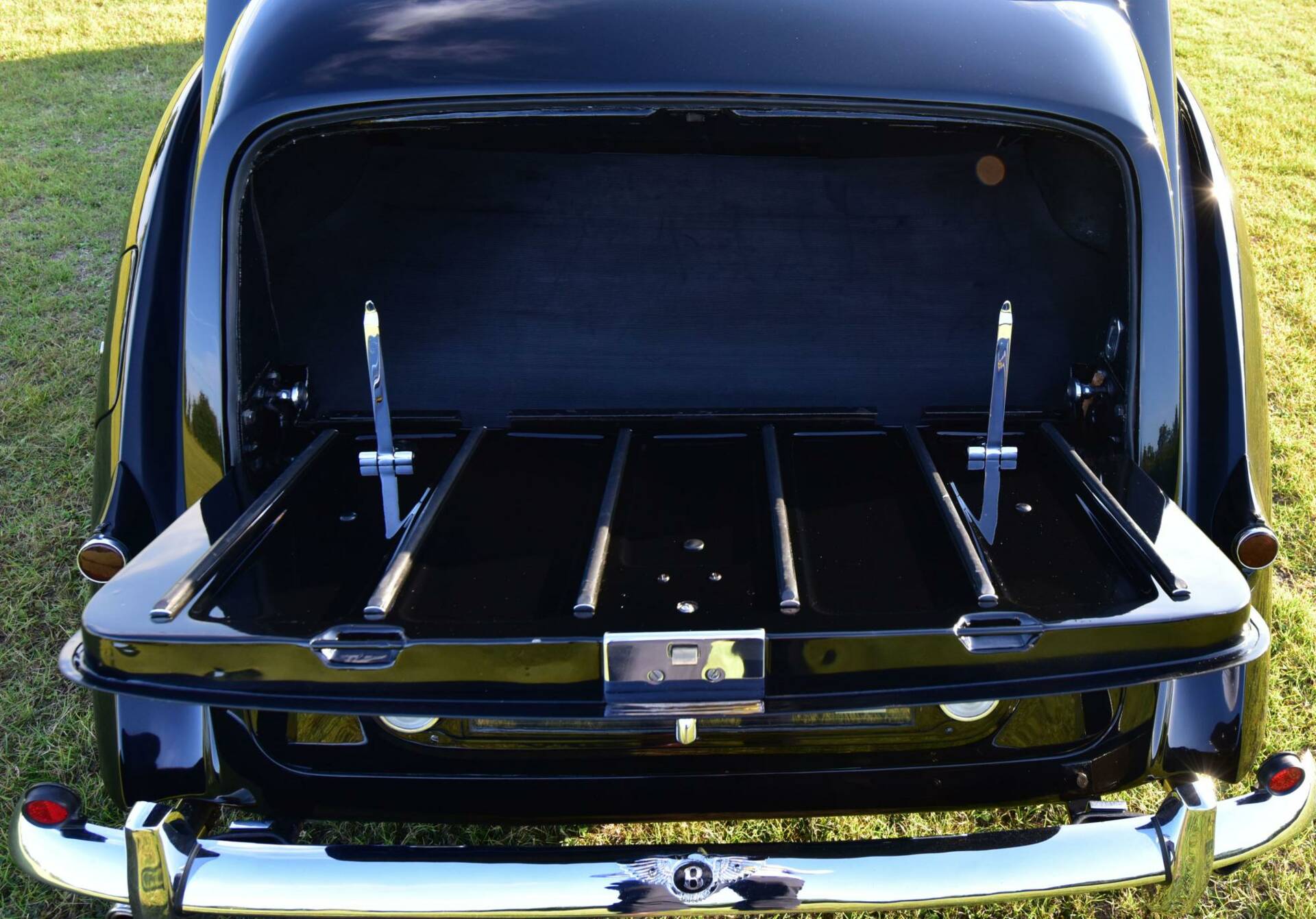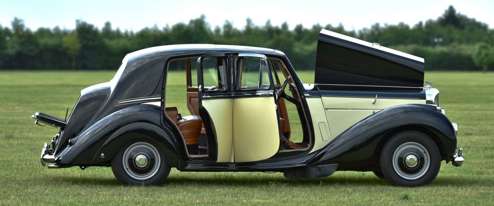 The factory bodies were made by Pressed Steel Ltd of Coventry and sent to the Bentley works at Crewe for painting and fitting out with traditional wood and leather. They featured rear hinged 'suicide' doors and a sliding sunroof.