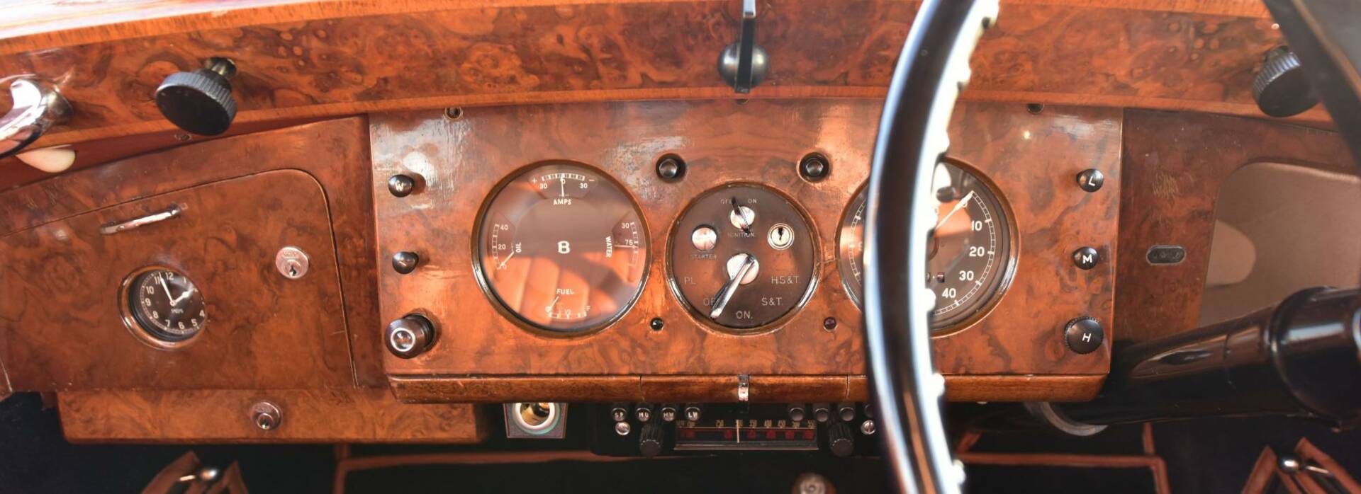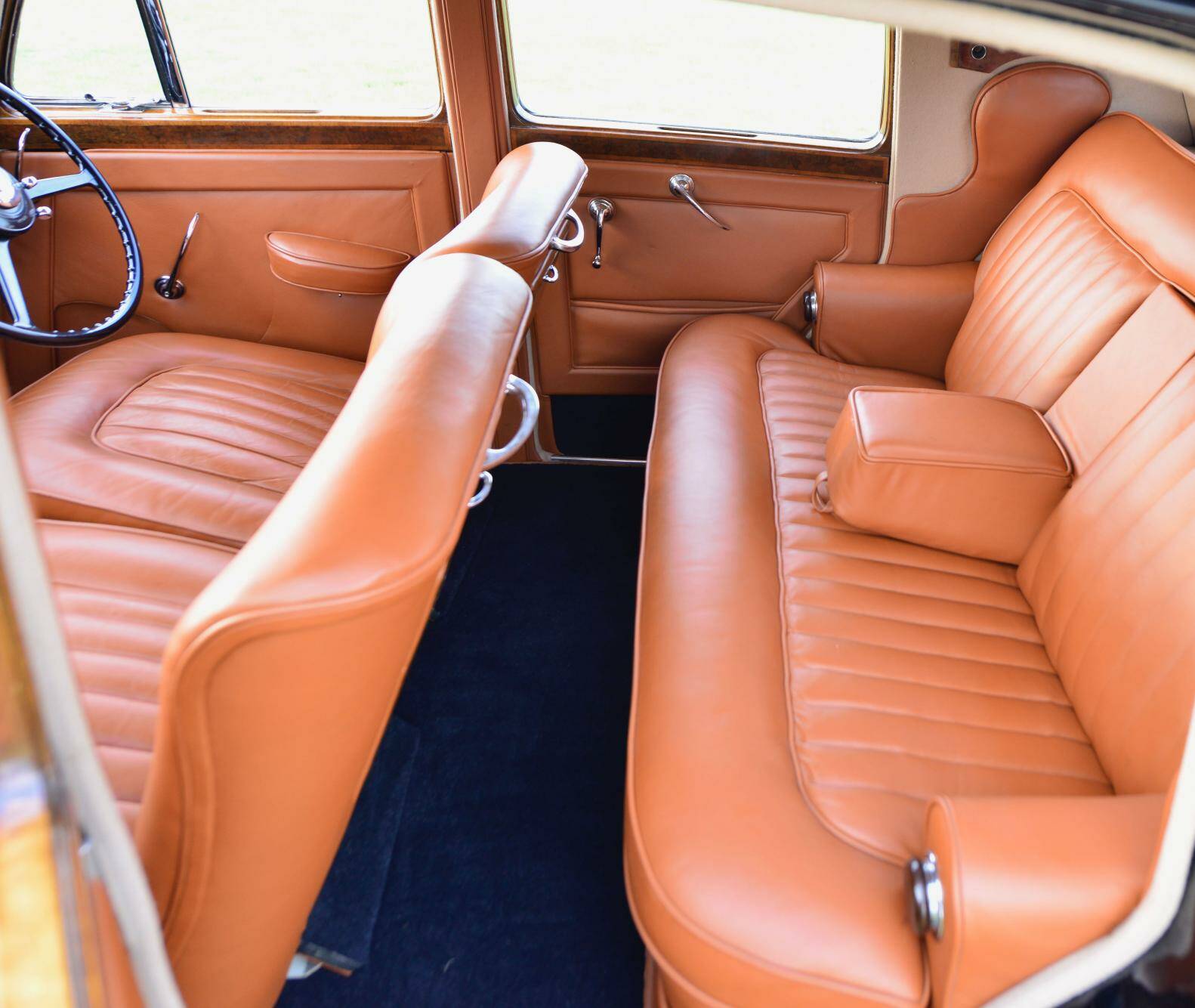 The next owner, Mr WH Beaumont, had the front seats reupholstered in traditional Connolly hides in 1979. He also had the car repainted from its original dark grey to it's present cream and black finish.