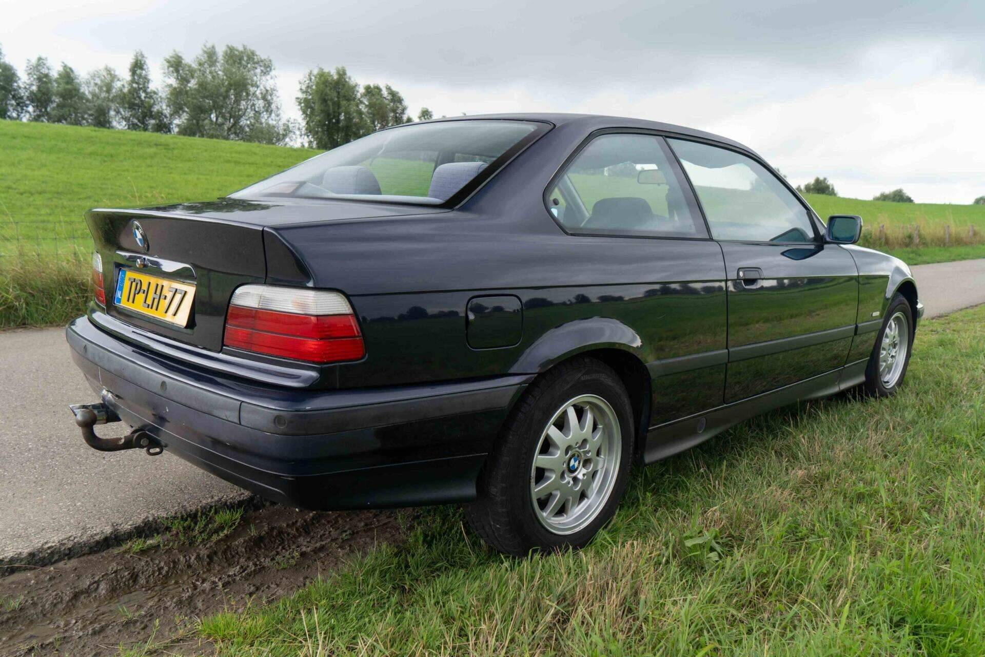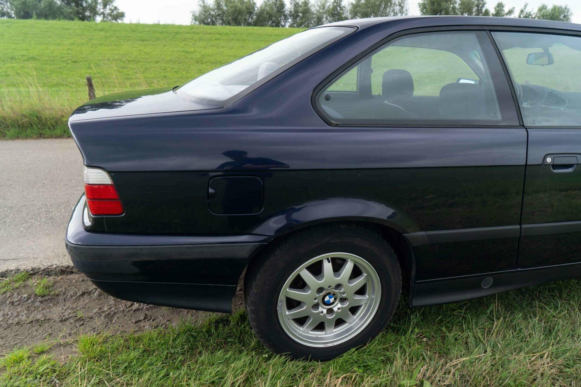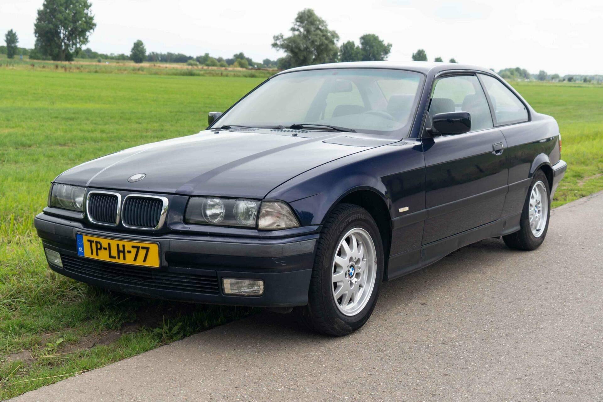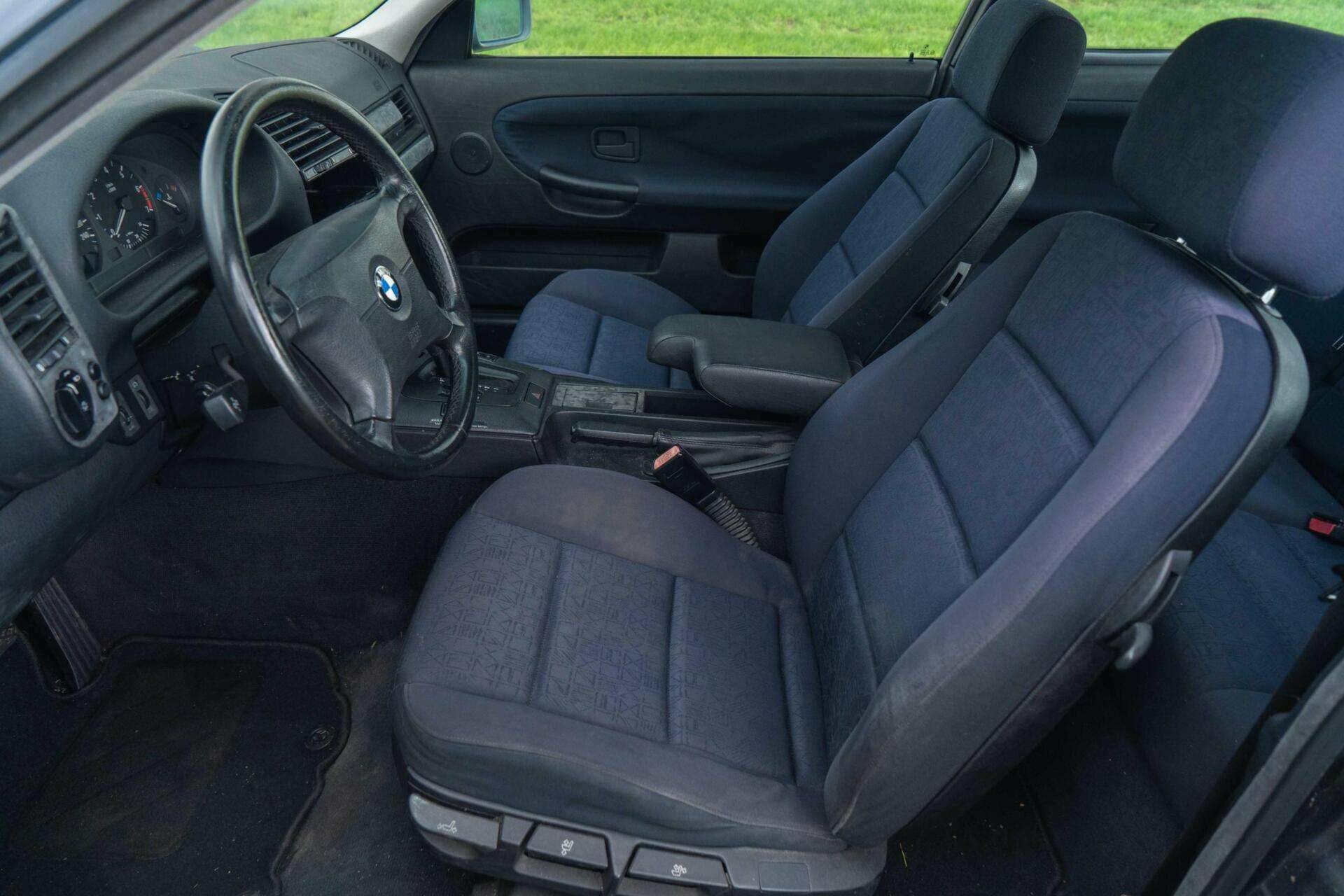 Deze BMW 3 Serie Coupé (E36) uit 1998 is een bescheiden maar eerlijk voorbeeld van een van BMW's meest herkenbare generaties. Uitgevoerd in donkerblauw met bijpassend blauw stoffen interieur, biedt hij een no-nonsense uitstraling en een back-to-basic rijervaring.
