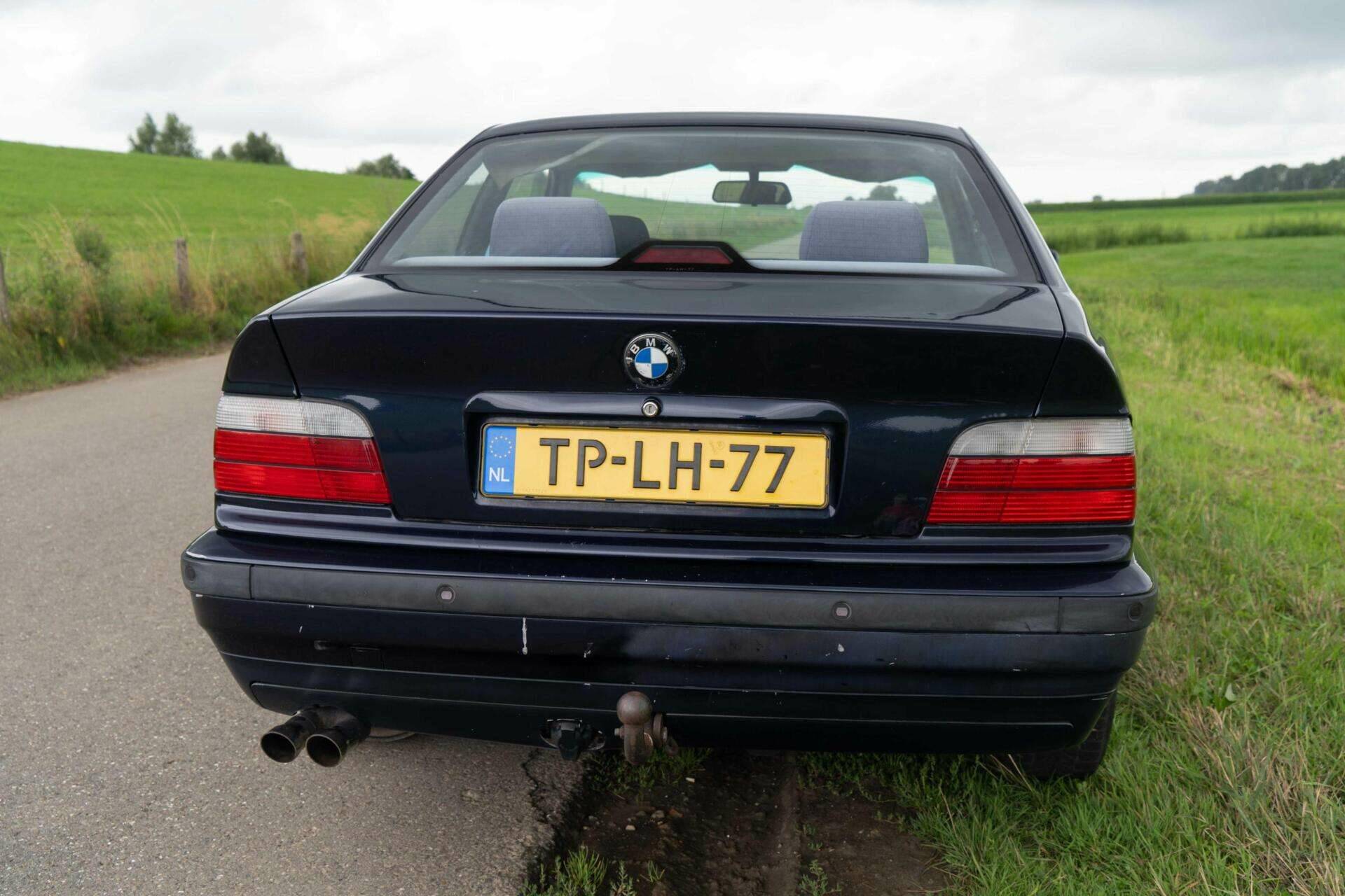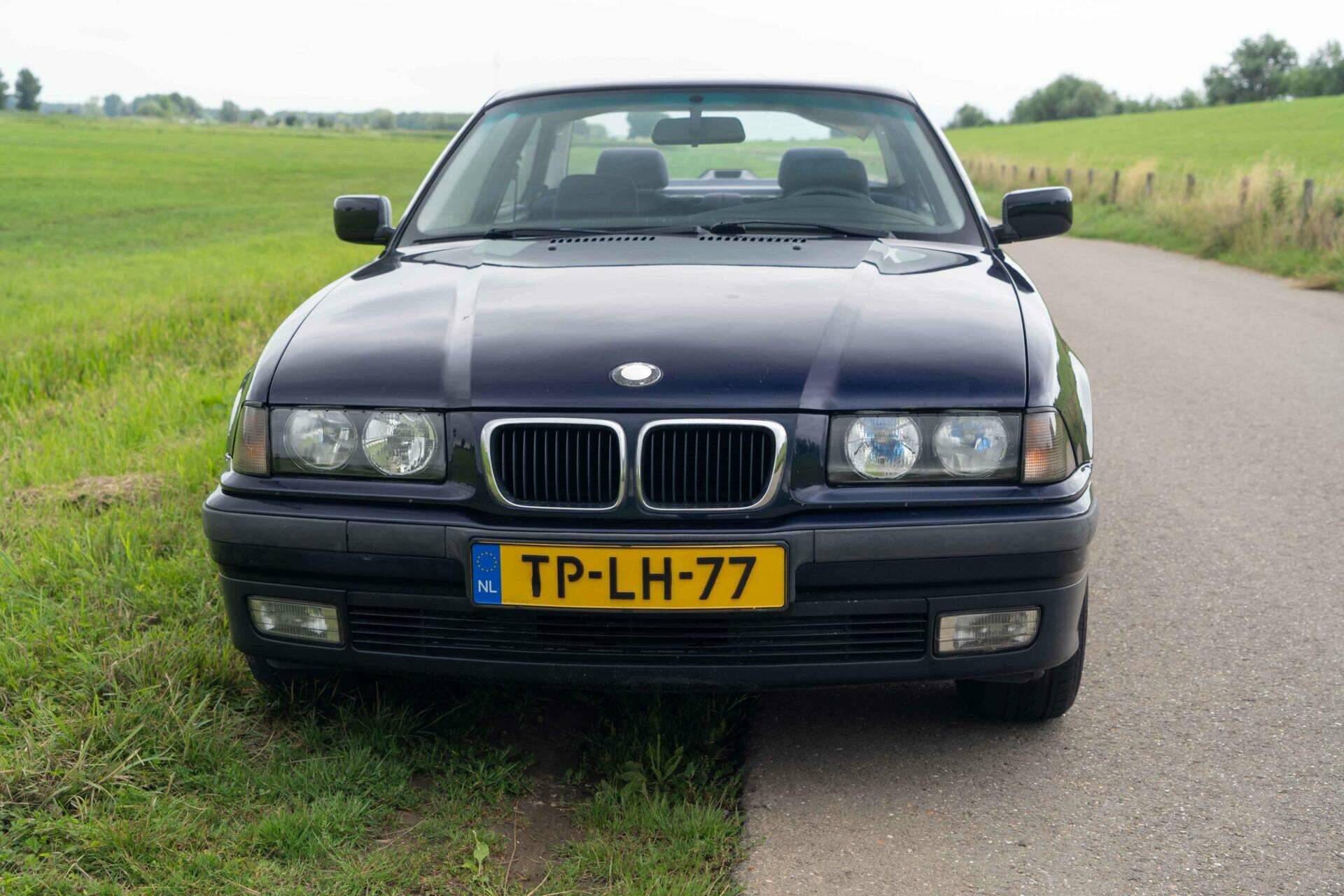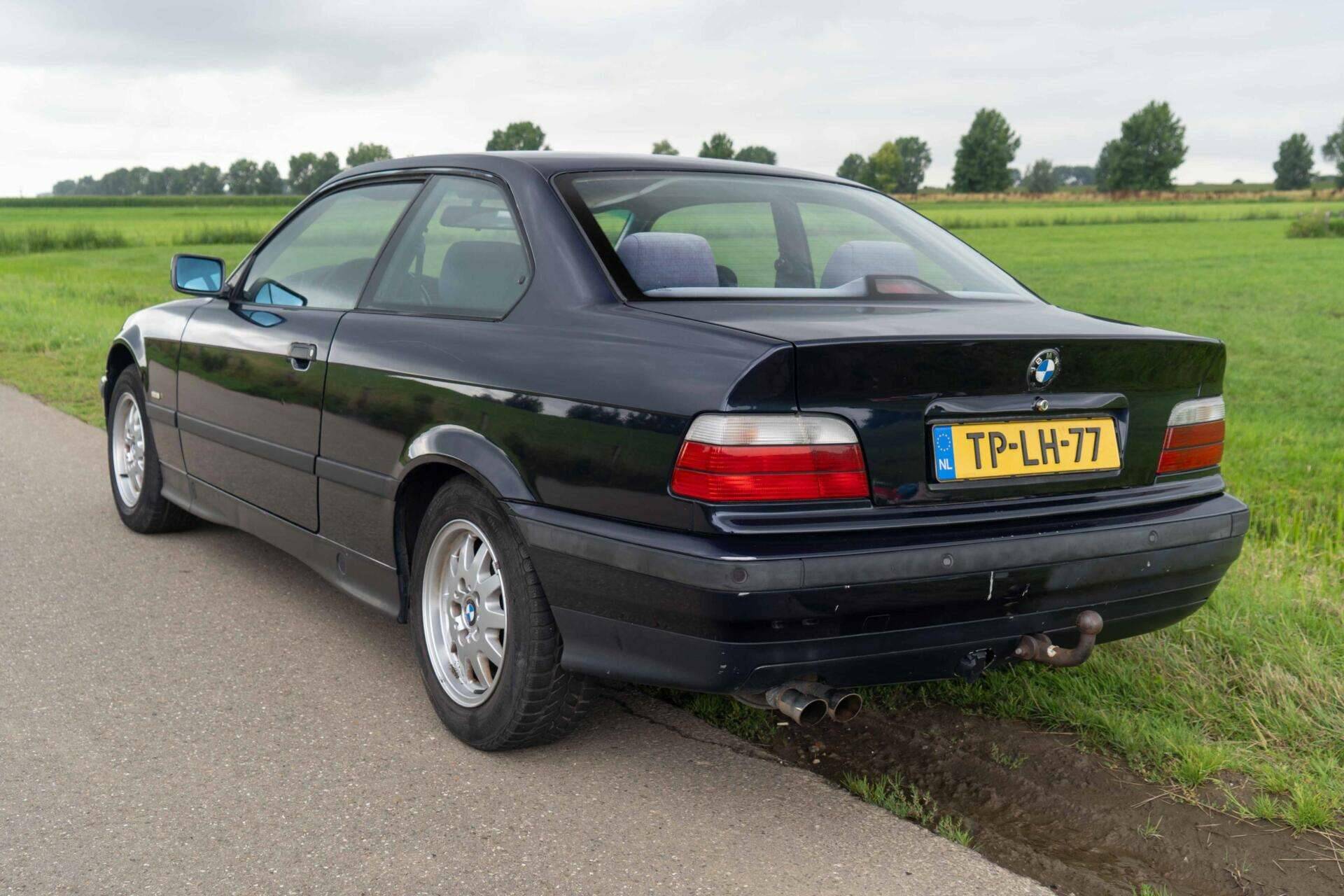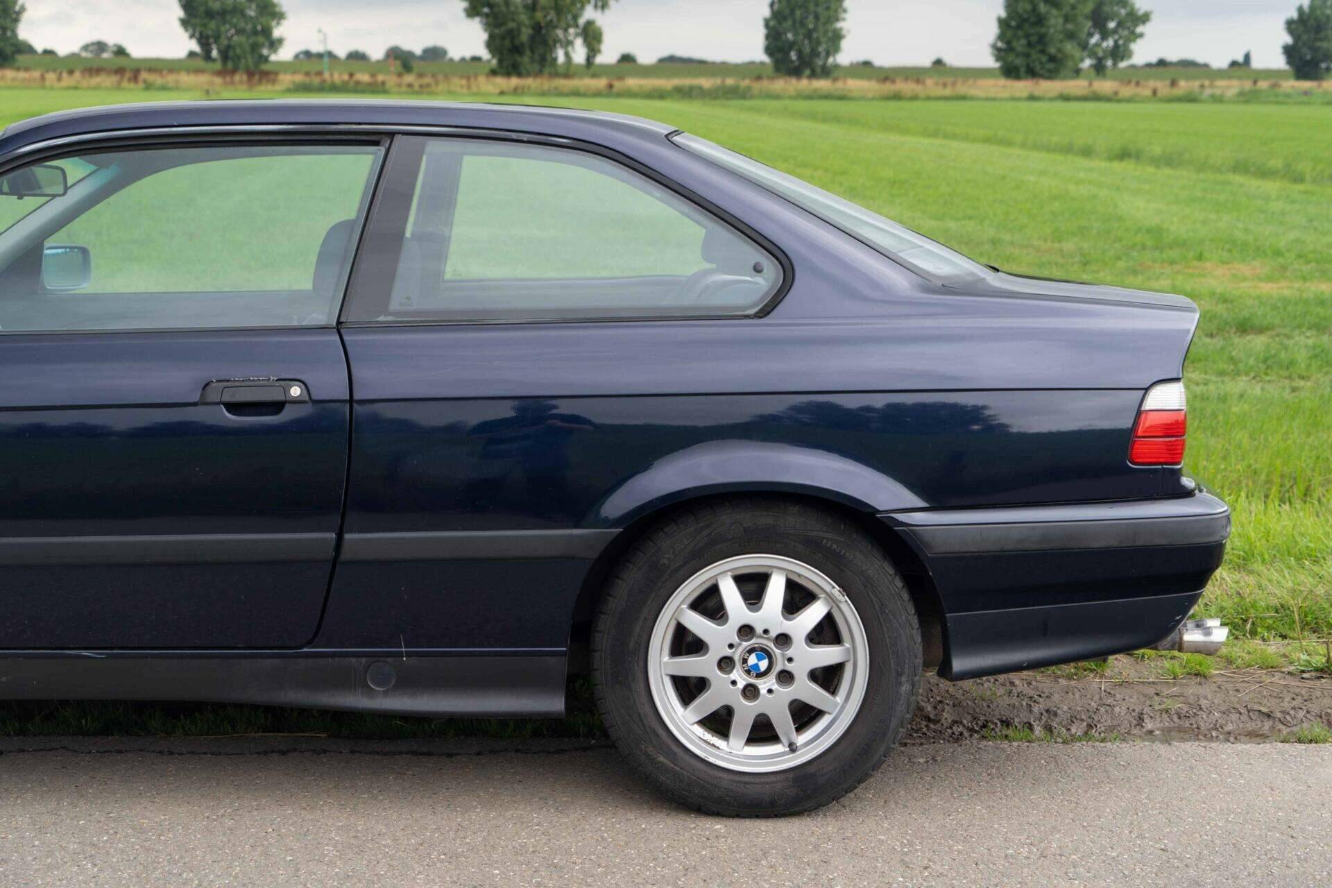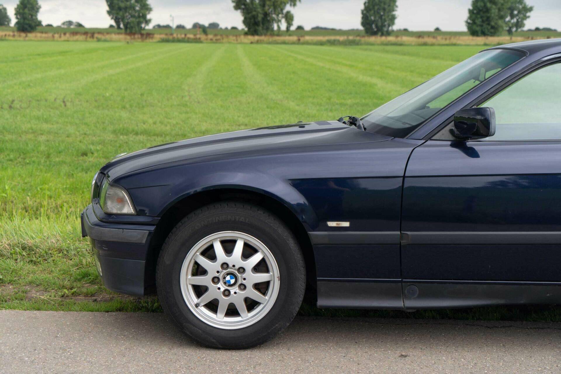 Deze BMW 3 Serie Coupé (E36) uit 1998 is een bescheiden maar eerlijk voorbeeld van een van BMW's meest herkenbare generaties. Uitgevoerd in donkerblauw met bijpassend blauw stoffen interieur, biedt hij een no-nonsense uitstraling en een back-to-basic rijervaring.
