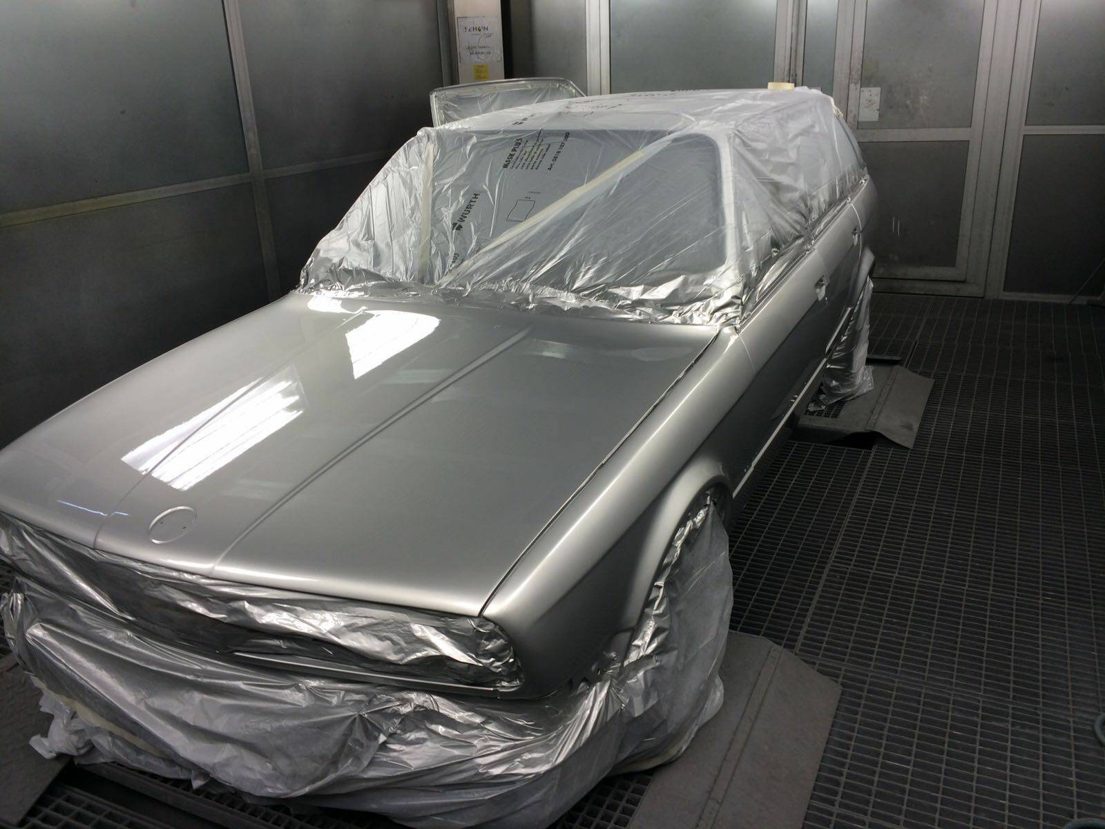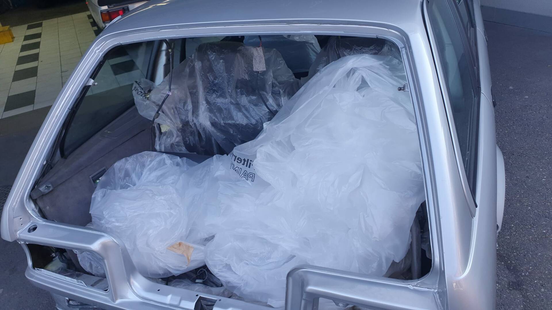 Dieser 325i Touring präsentiert sich in Silber-Metallic mit komplett restaurierter Karosserie. Im Rahmen der Restauration wurden sämtliche Roststellen entfernt, neue Kotflügel eingesetzt, der Lack vollständig erneuert und alle Hohlräume sorgfältig versiegelt. Das Fahrzeug zeigt keinerlei Dellen, Kratzer oder optische Mängel. Sämtliche Chrom- und Zierteile sowie die Scheinwerfer befinden sich in hervorragendem Zustand. Originale Kreuzspeichenfelgen (15 Zoll) und zusätzliche 5-Stern-Felgen ergänzen das stimmige Gesamtbild.