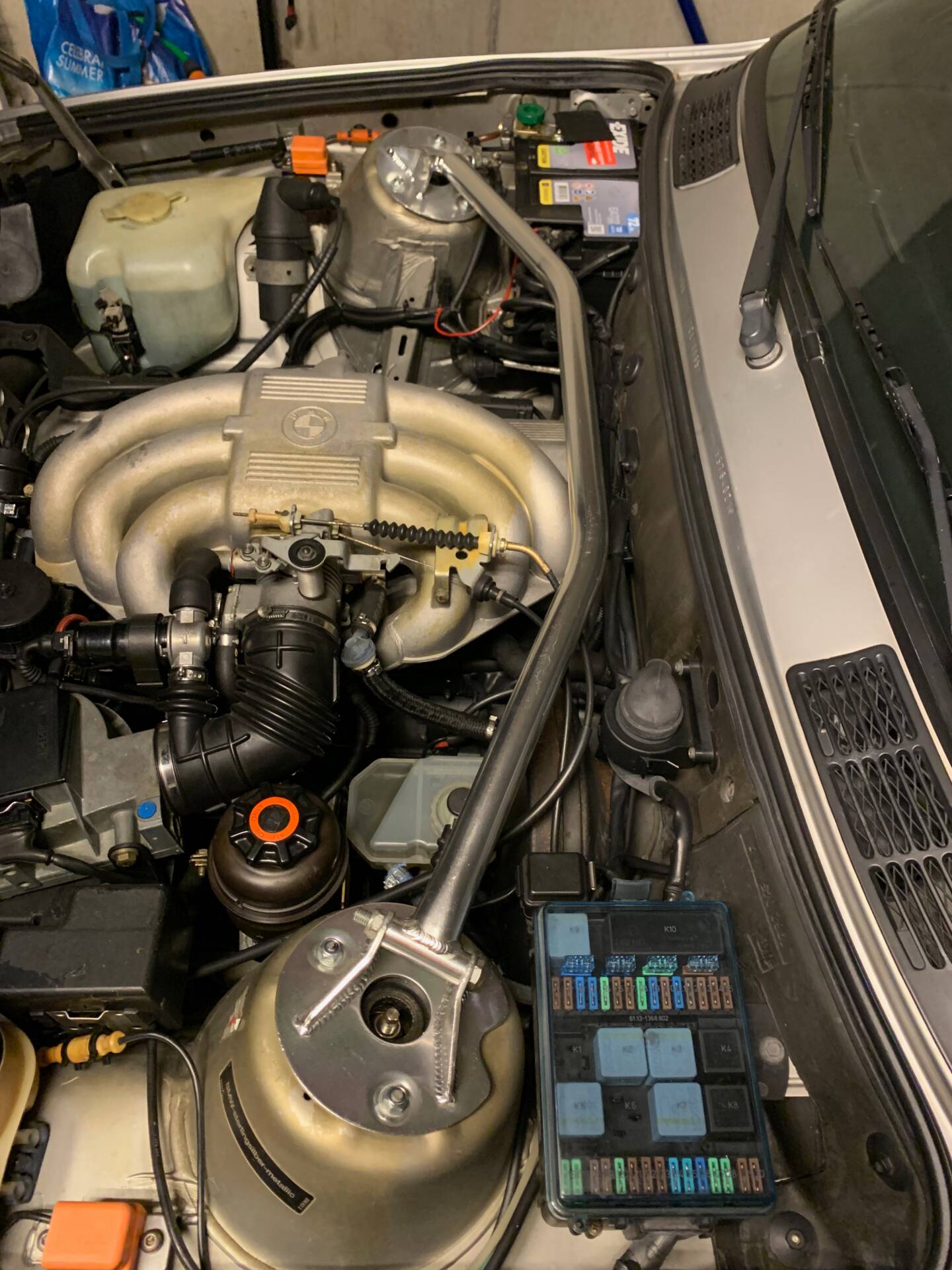 Angetrieben wird der Touring von einem 170 PS starken Reihensechszylinder in Verbindung mit seltener Handschaltung. Sportfahrwerk mit H&R-Federn und Bilstein-Dämpfern, geprüfte Domstrebe sowie ein sportlicher Auspuff – alle Veteranen-konform – sorgen für dynamisches Fahrverhalten. Im Zuge der Restauration wurden nahezu alle technischen Komponenten erneuert oder überholt: neue Bremsteile, Federbeine, Achs- und Fahrwerksanbauteile, neue Heizung, neuer Tank, neue Dichtungen (inkl. Getriebesimmering), neue Scheinwerfer und Dachhimmel. Die Wartung ist vollständig dokumentiert; letzter Service bei 215.000 km.