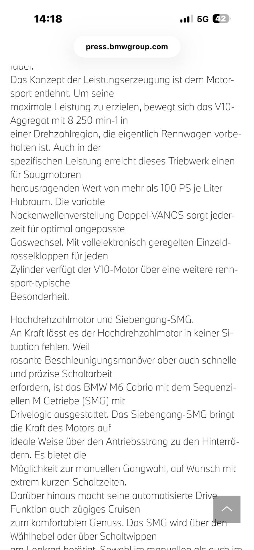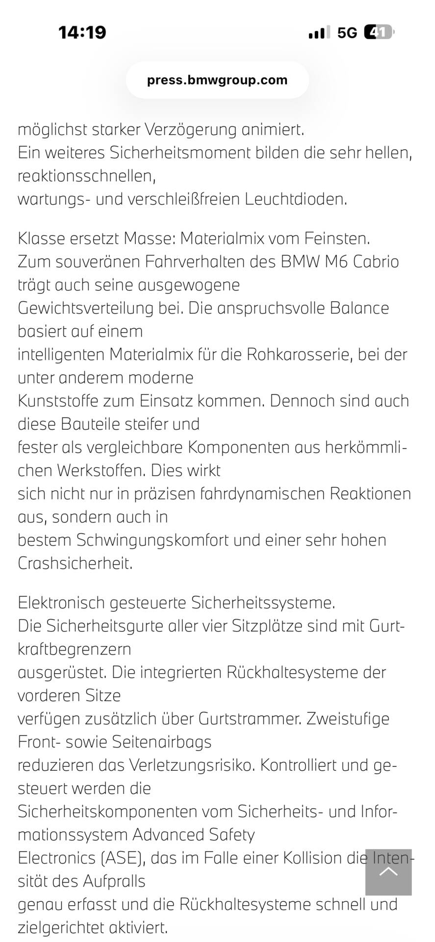 BMW M6 Cabrio Presse Fahrzeug von 2006