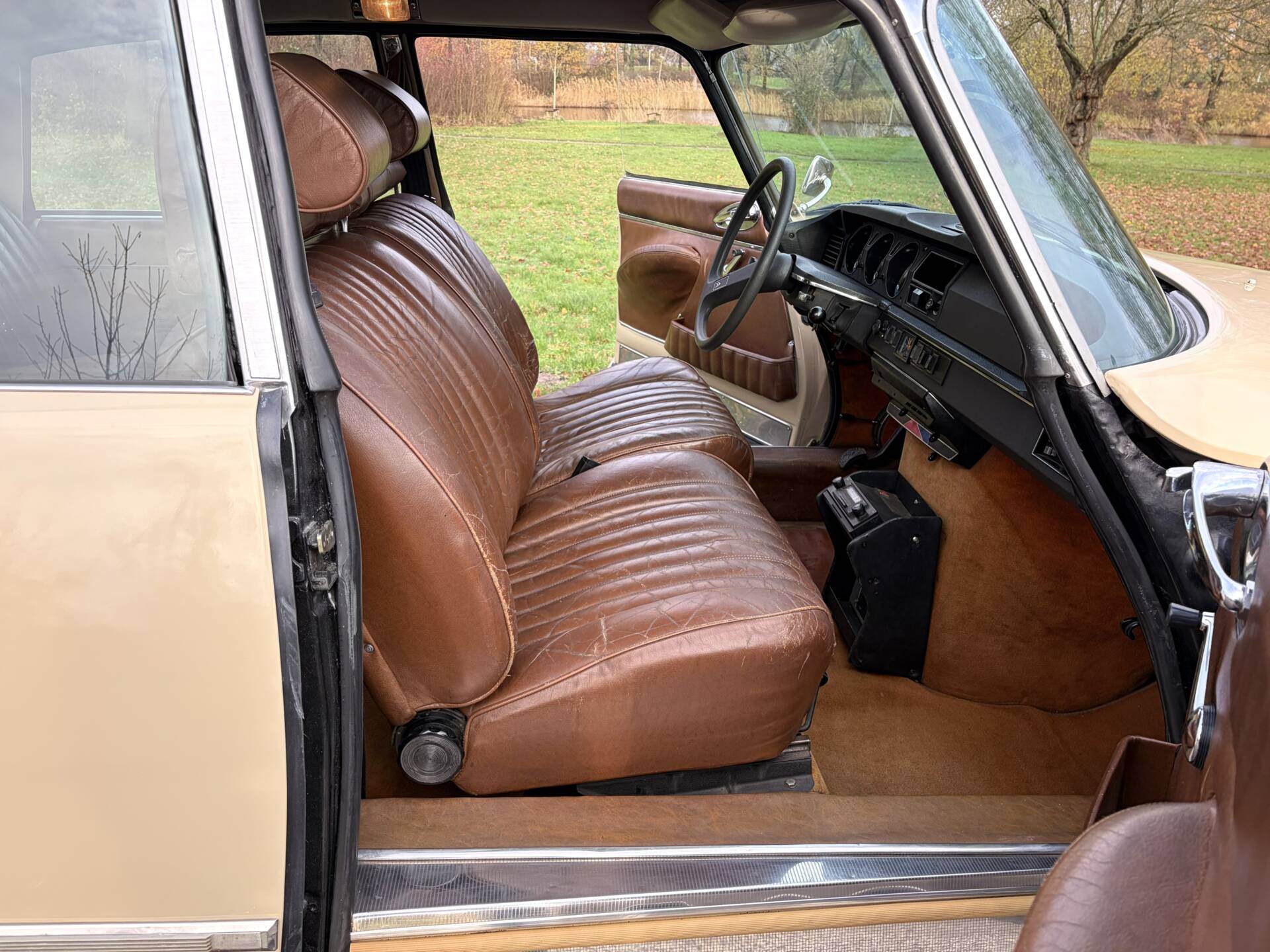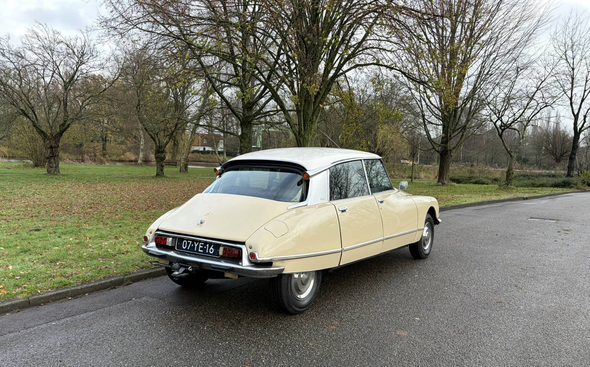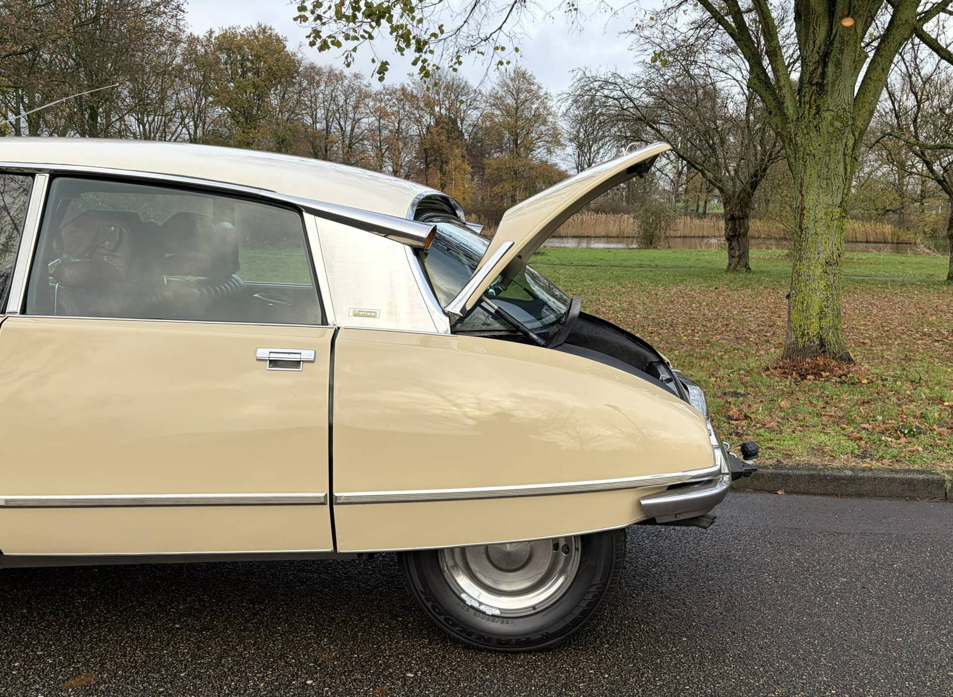 The DS was delivered new in "beige Tholonet AC 086," and like many classic cars, the body has been resprayed. About four years ago, the Dutch owner commissioned the repainting of his beloved Pike in the original DS color "beige Vanneau AC 083," and the quality of the paintwork is excellent. The body is beautifully straight, and all the original details have been carefully maintained. Many stainless steel and chrome parts have been replaced in the past, and the bumpers appear to be original. The chrome is neat with minor signs of wear. The hollow areas have been treated, and I couldn't find any rust. The doors close perfectly, and the seams are also in perfect condition. A tow bar was recently installed.