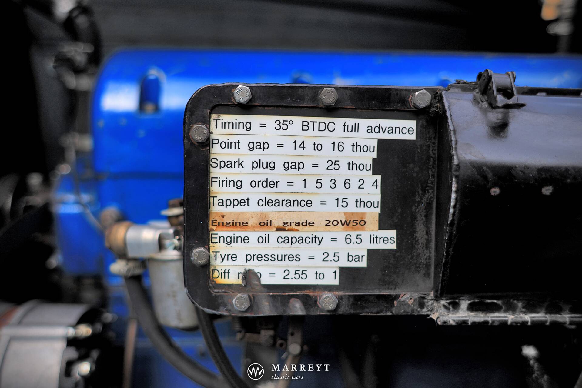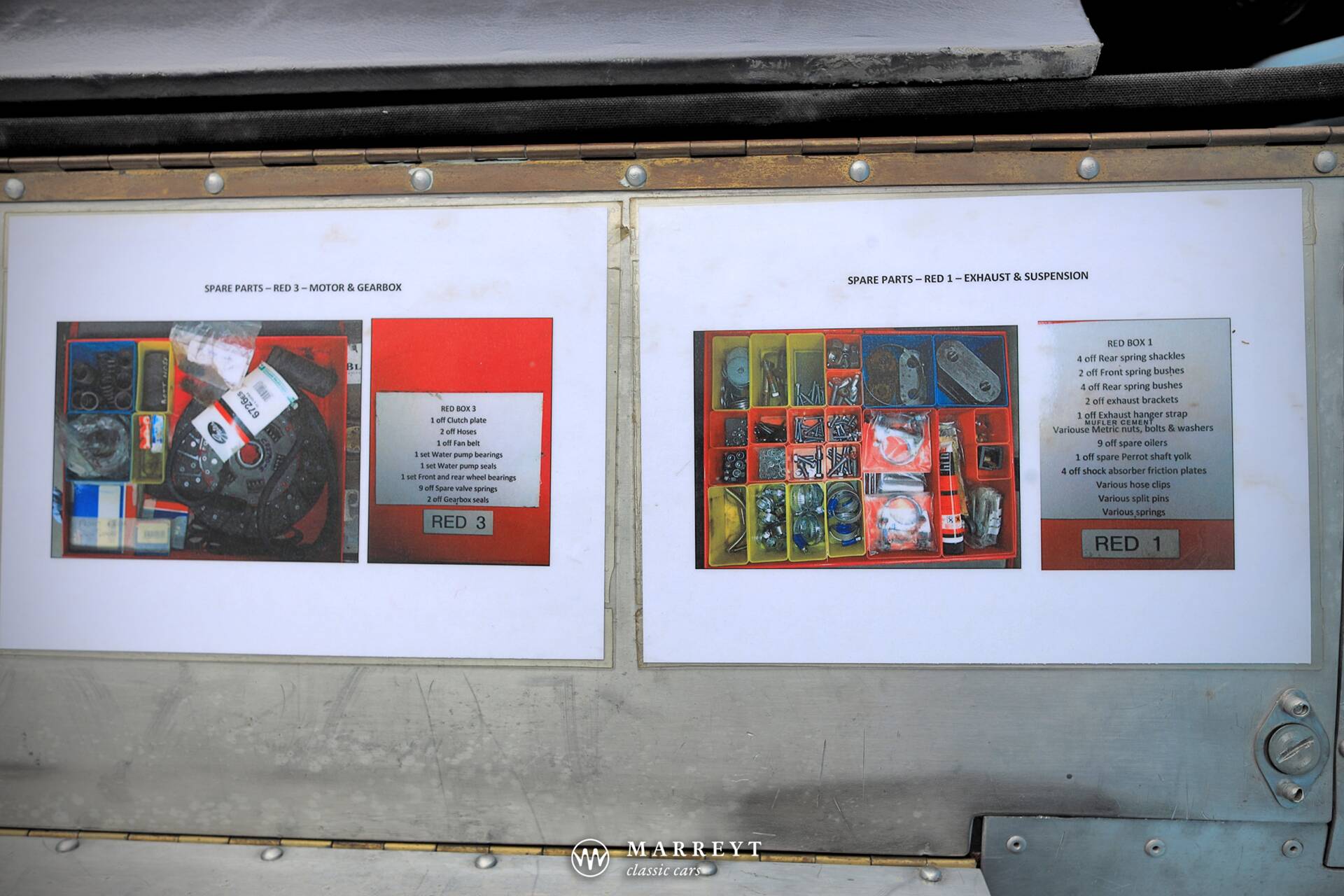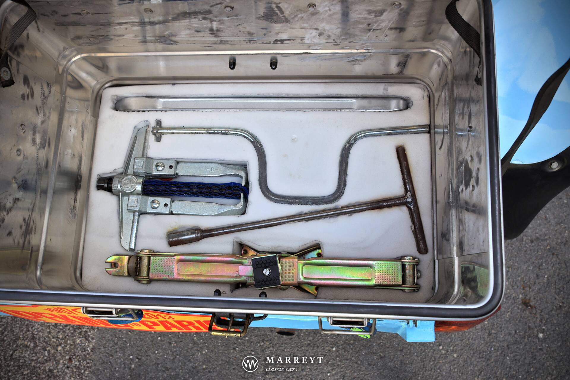 • Rally-specific equipment including overdrive, tripmeters, extra lighting, modern 12V electrics, and reinforced suspension.