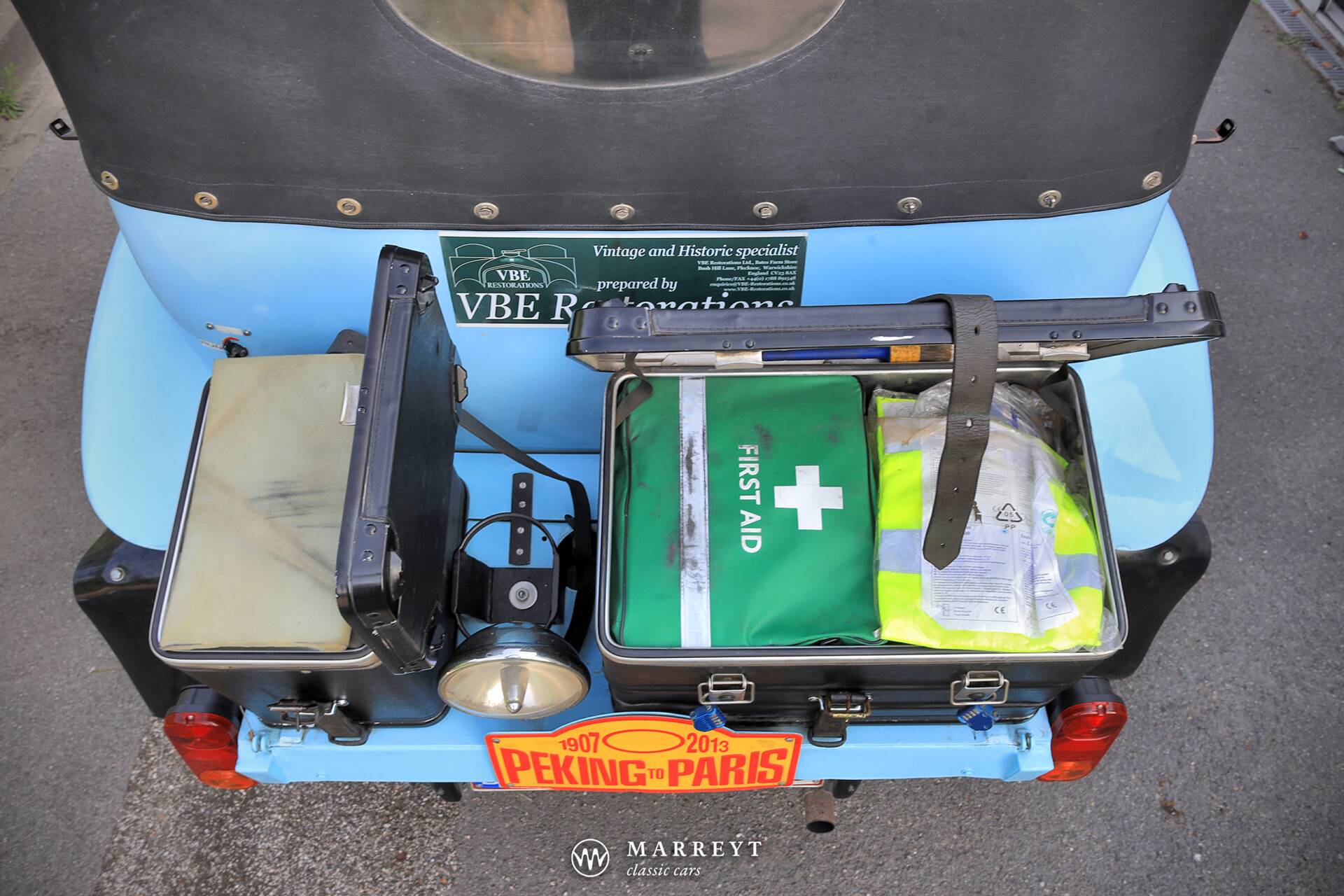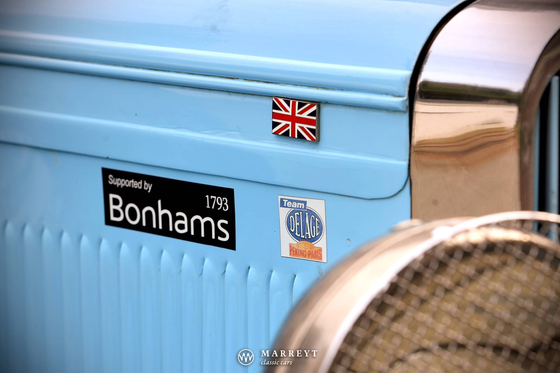 This Delage isn’t just a showpiece—it’s a battle-hardened veteran of the Peking to Paris Rally, the most demanding endurance rally on earth. It conquered the route not once but three times: 2007, 2010, and 2013. From the Great Wall to Siberian rivers, Mongolian steppes to the finish at Place de la Concorde, the car wrote its own legend. Along the way it earned a Silver Medal in 2010, prepared by VBE Restorations, and returned in 2013 with Belgian backing from Marreyt Classic Cars.