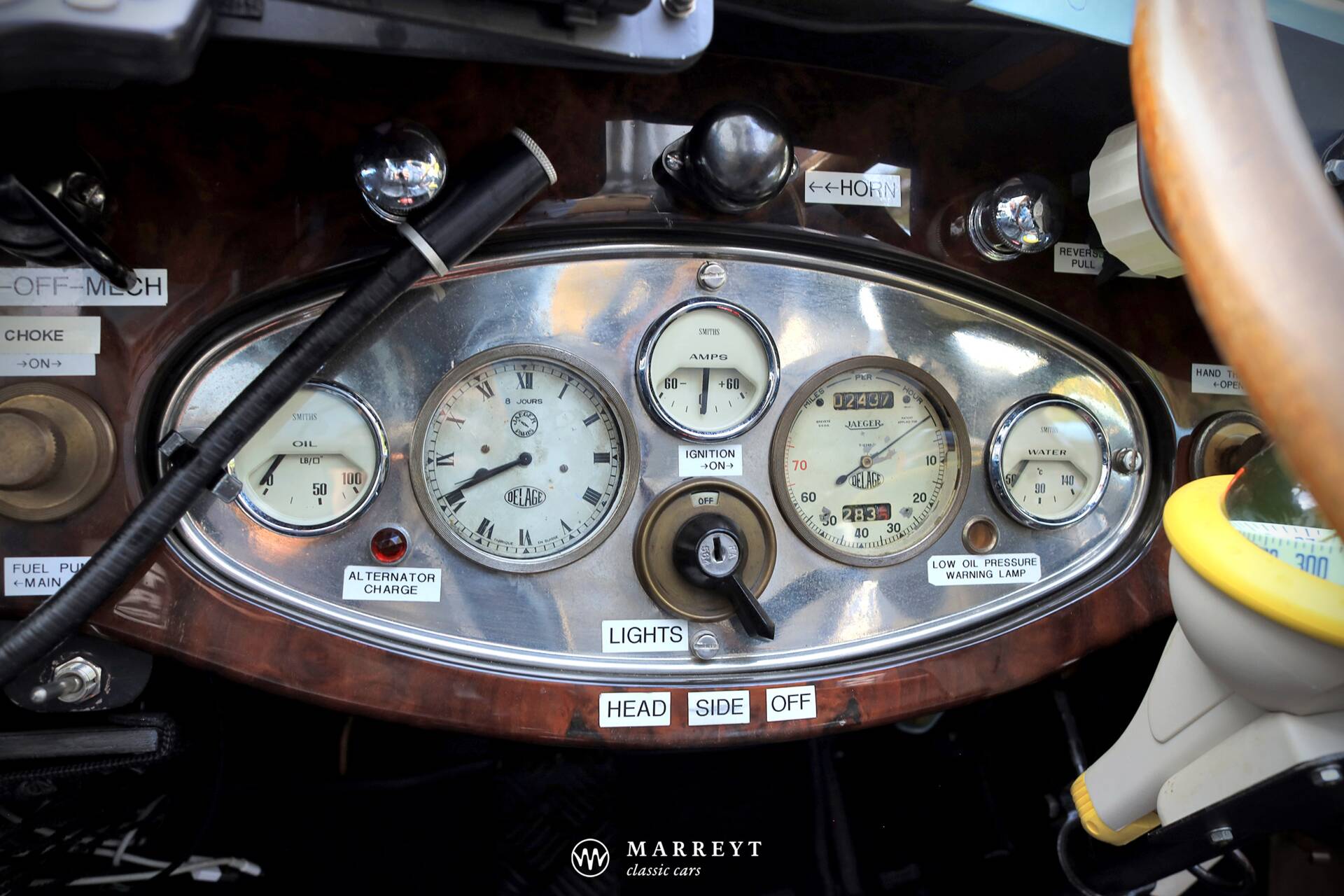 This particular Delage’s life story is just as fascinating as its engineering. Ordered new in 1930 by an Indian Maharaja as a saloon, it came equipped with distinctive details like twin side-mounted spare wheels, a luggage rack, and a gearbox shield. From India it travelled the globe, settling in Yorkshire in 1933, where it remained for two decades. In the ’60s it joined the register of the Vintage & Sports Car Club, but after 1968 it disappeared into slumber. Only in 2005 was it revived and professionally rebodied into a graceful Chapron-style four-seat tourer, upgraded with 21-inch wheels to suit endurance rallying.