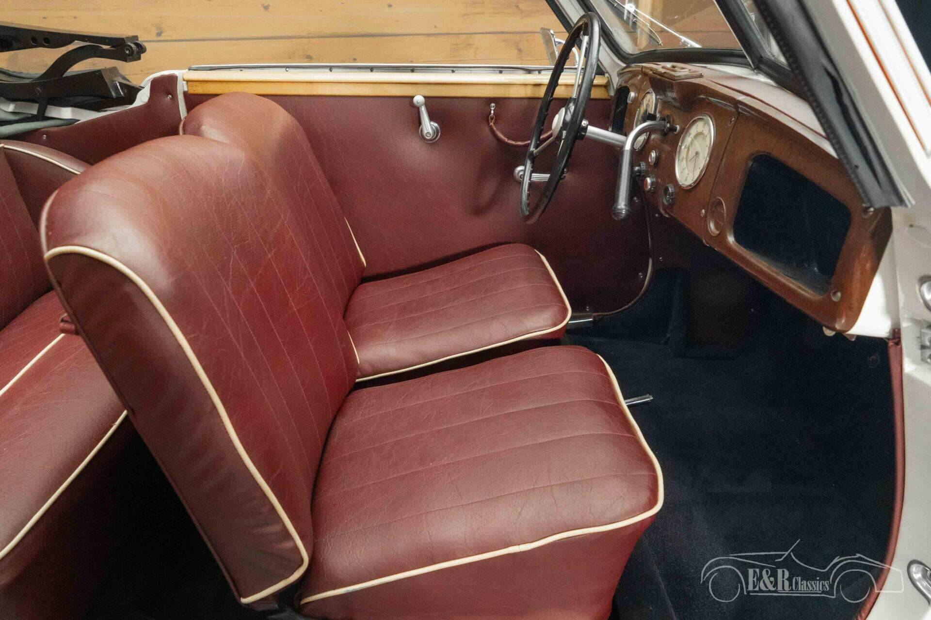 De DKW F8 Cabriolet uit 1939 is een bijzondere verschijning in de autogeschiedenis. Dit model werd geproduceerd door Auto Union, de voorloper van het huidige Audi, en combineert tijdloze elegantie met vooruitstrevende techniek uit de jaren ’30. Onder de motorkap ligt de 700cc 2-cilinder motor gekoppeld aan een handgeschakelde 3 versnellingsbak. Deze F8 is bovendien uitvoerig gerestaureerd in het verleden, waardoor zijn historische waarde volledig tot zijn recht komt. Dankzij zijn zeldzaamheid is een origineel exemplaar als dit nauwelijks nog te vinden, wat hem tot een echt verzamelobject maakt.