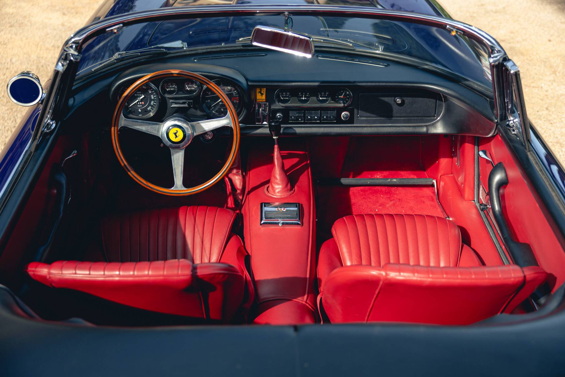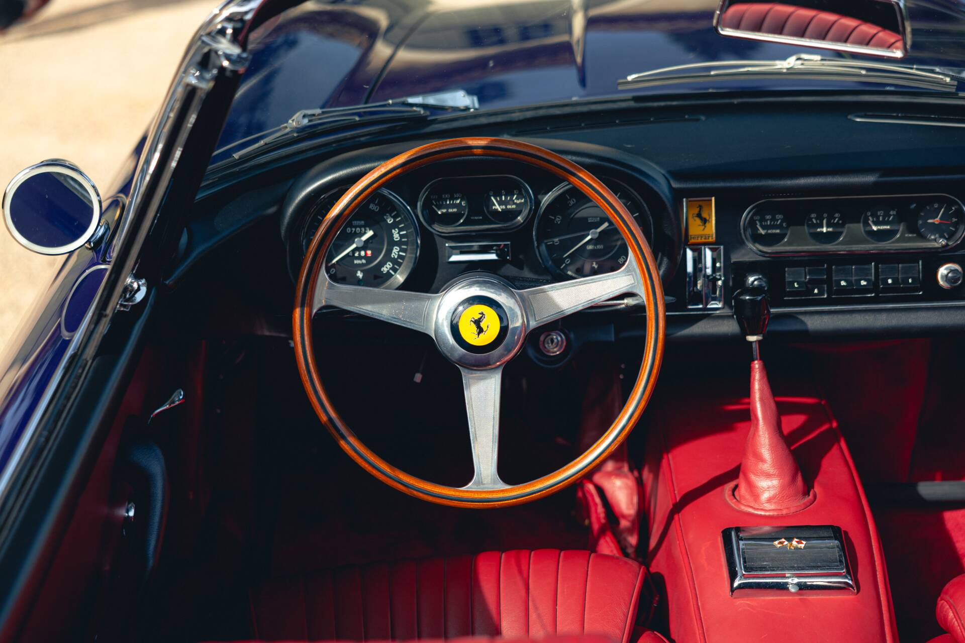 Le V12 (#5809) a été restauré à neuf et parfaitement réglé. Monté avec 6 carburateurs Weber 40 DCN 1 et équipé d’une boite à vitesse Ferrari (4 vitesses + overdrive), le bloc moteur marche bien. Les trains roulants, la suspension et les freins sont neufs.
