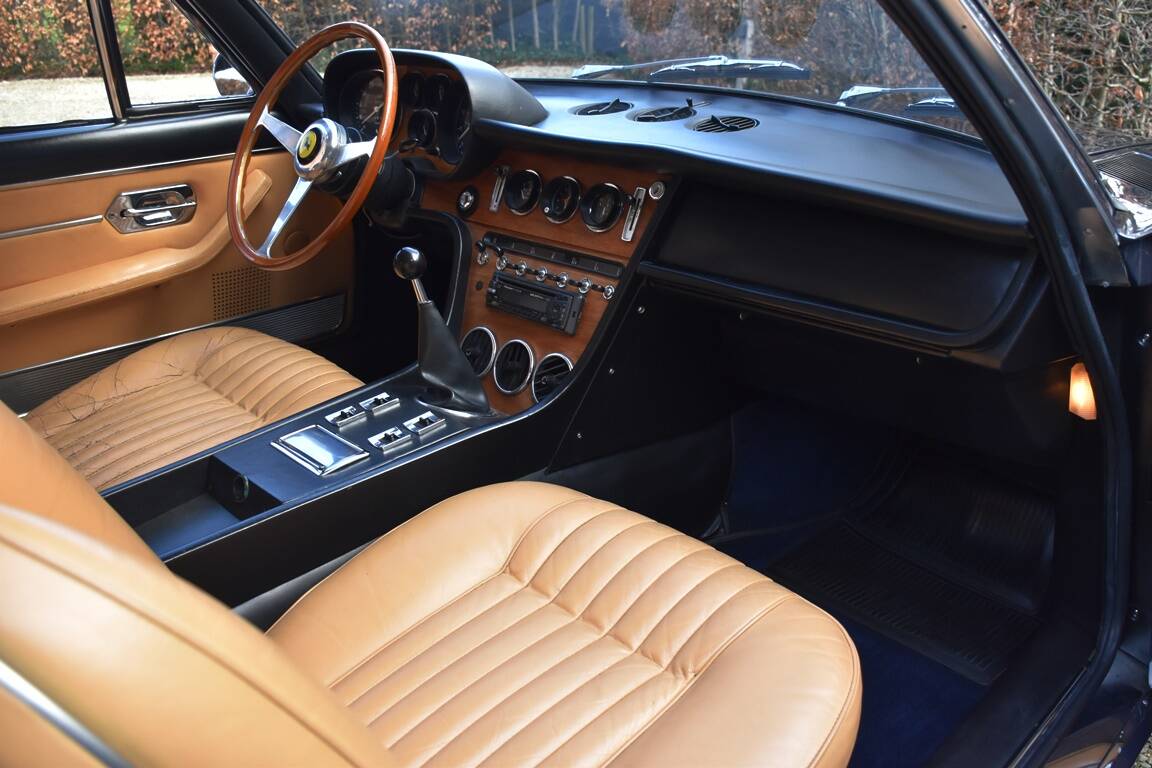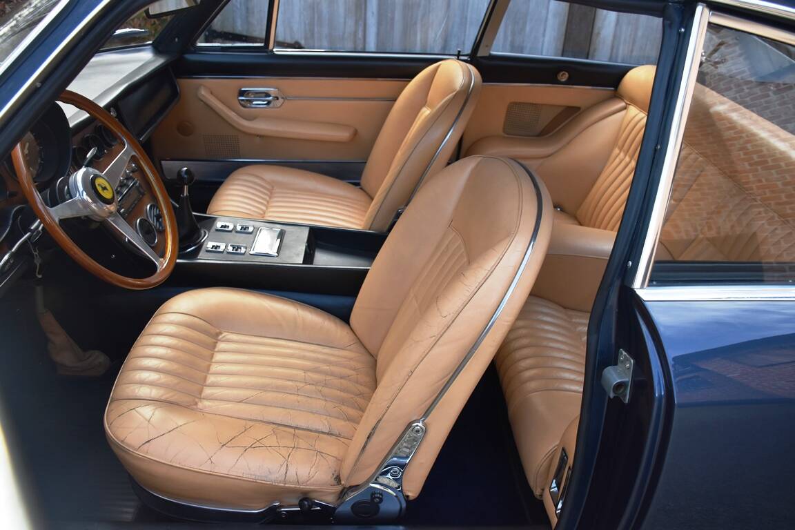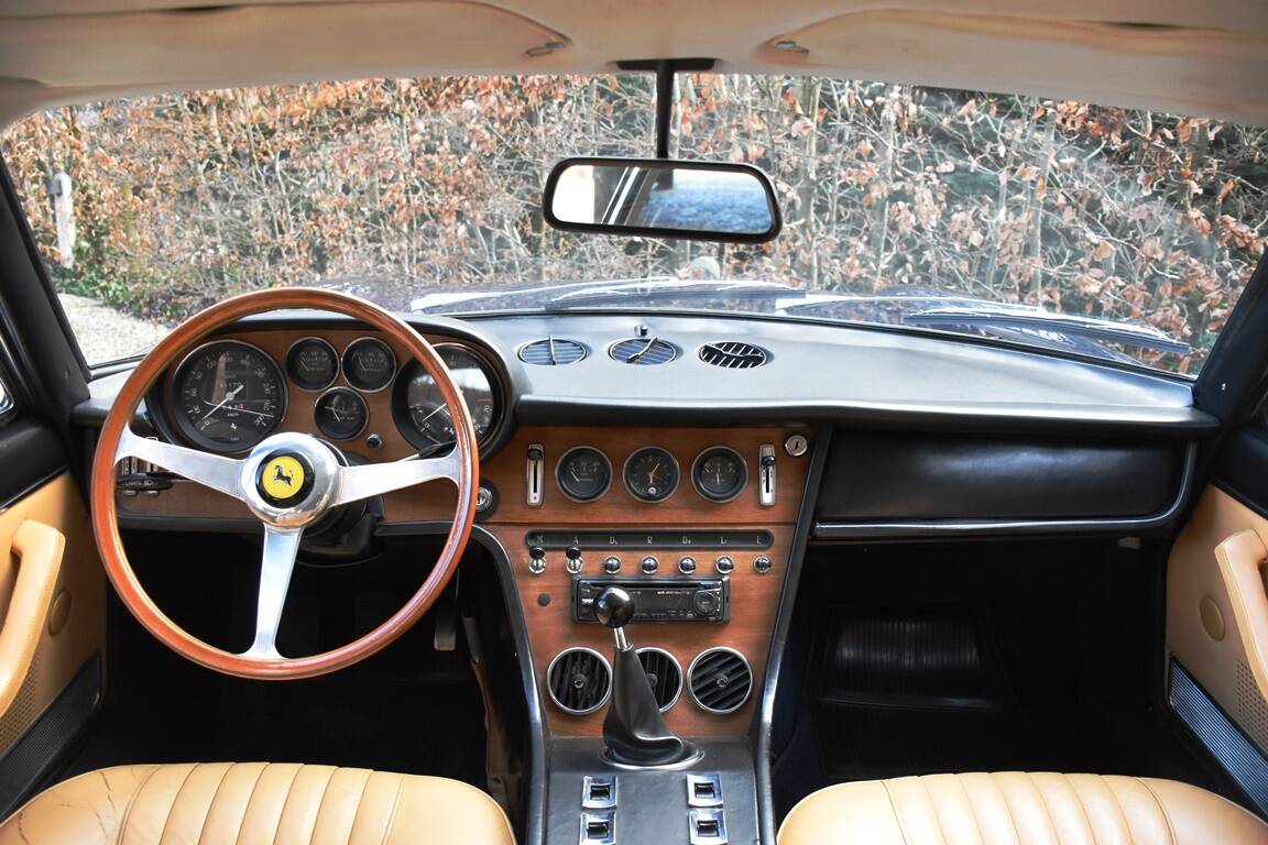 The example we are offering for sale is an original European specification vehicle - delivered new in Geneva (CH) - with power steering, airconditioning and optional Borrani wheels from new. The car come to France in 2002 and remained with the same owner, a British author living in the Tarn region, until 2015. The Ferrari was auctioned in 2015 and bought by the last owner - still in completely original condition. Because the car needed some love and attention anyway, it was decided to bring it to the Belgian Ferrari specialist l'Officina to start a complete restoration while retaining as much as possible from the original parts. This full restoration took almost 5 years and has been fully documented with detailed invoices totalling almost 170.000 EUR ! It is therefore not surprising that this Ferrari is in absolute top condition and undoubtedly one of the very best examples on the market. The interior is still completely original, giving the car that special feeling of a noble classic.