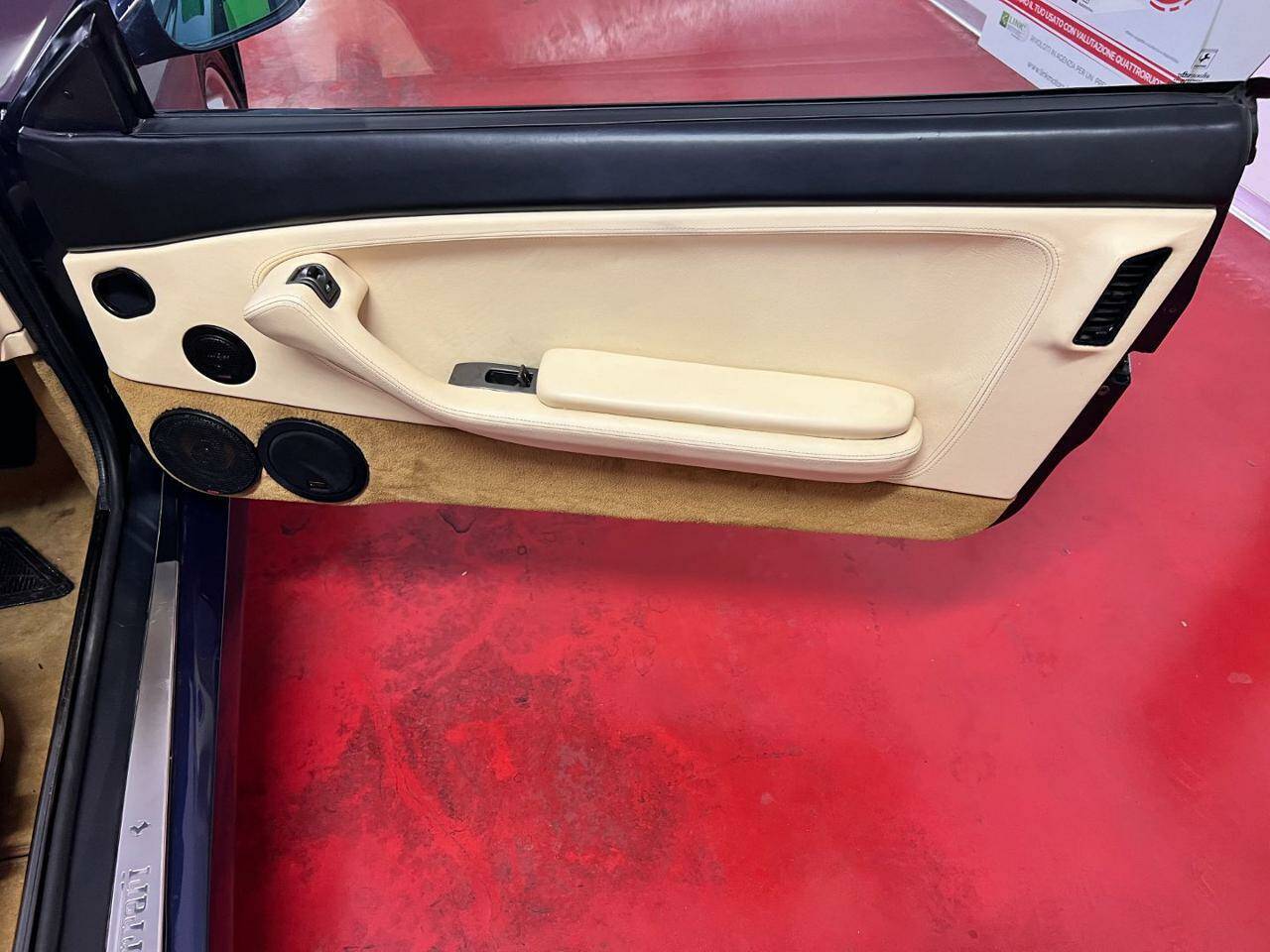 verniciatura "Blue Tour de France" , interni in pelle Bianco Magnolia, tappeti e moquette Castoro