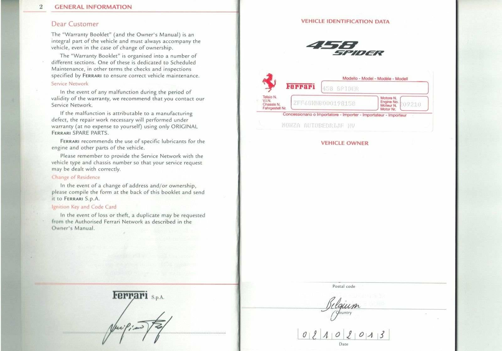 - lückenlos Ferrari Serviceheft gepflegt