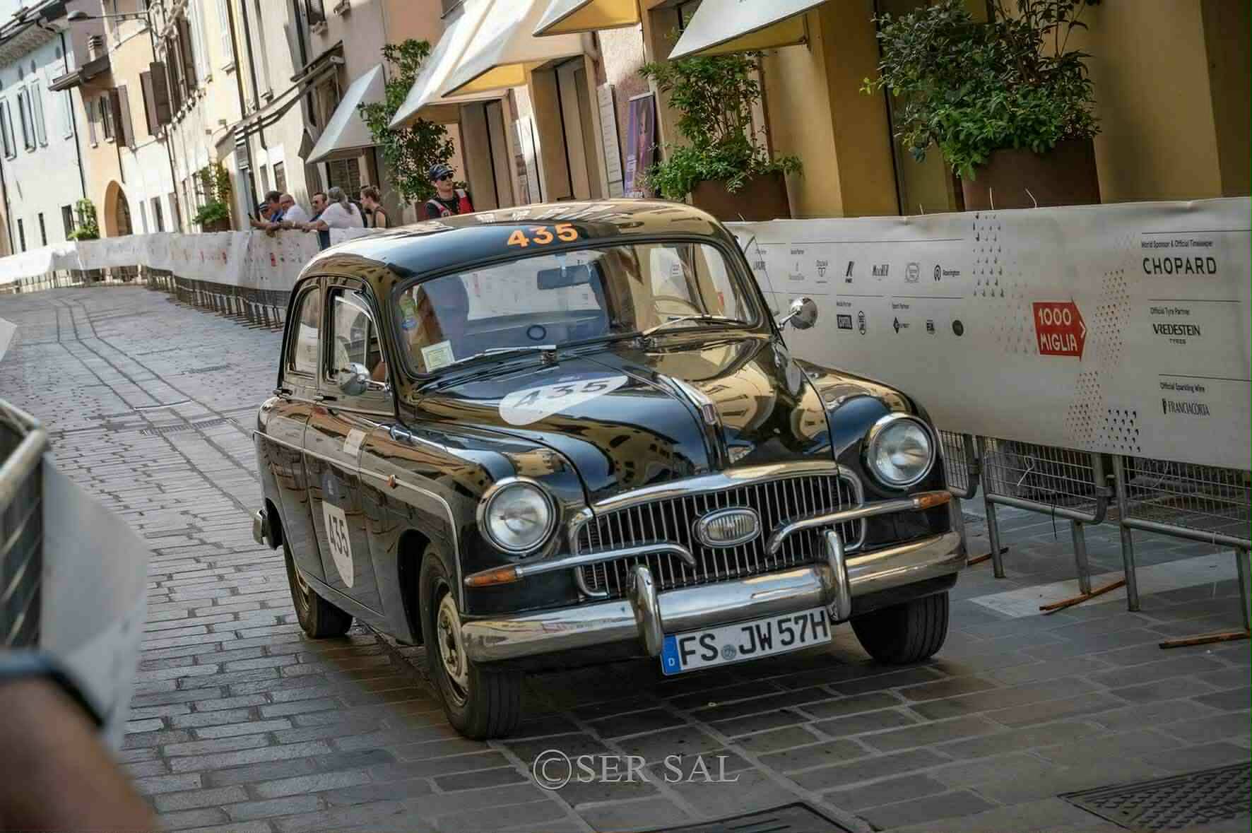 Sie wollten schon immer die Mille Miglia fahren und für kleines Geld sicher angenommen werden? Hier ist ihre Chance. Der Fiat 1400 Diesel ist der einzige der aktuell im Mille Miglia Registro eingetragenen und somit eine hohe Wahrscheinlichkeit, daß er auch im Jahr 2026 wieder starten darf. Das Fahrzeug wurde komplett überholt, der Motor kpl. neu aufgebaut und ist sogar ohne Service Team ins Ziel der Mille Miglia 2025 gefahren.