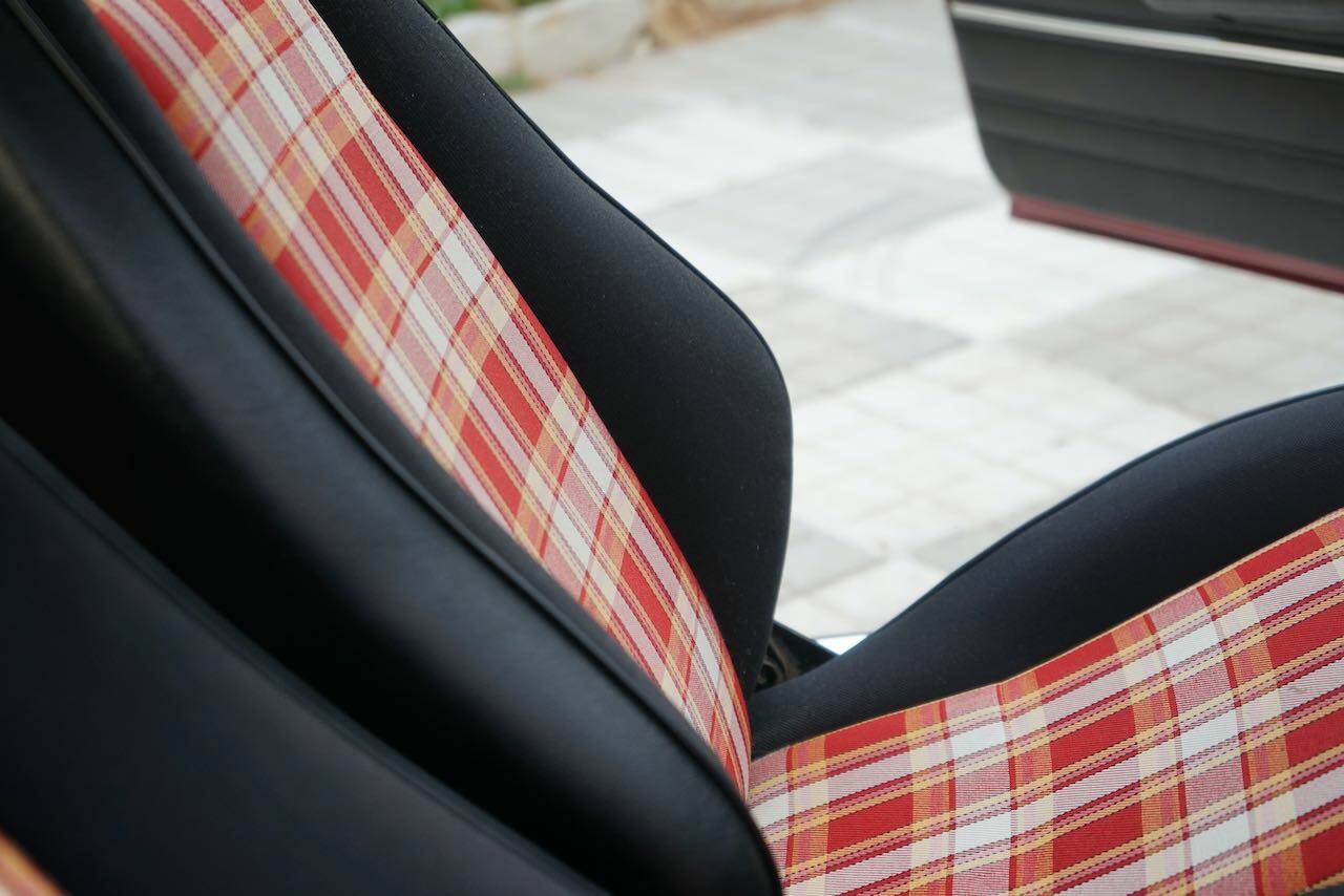 Die Karosserie? Präsentiert sich erstaunlich frisch, was wohl dem Umstand zu verdanken ist, dass der Wagen die letzten 20 Jahre in einer Garage verbrachte – wie ein Oldtimer im Wellnessurlaub. Das Vinyldach? Perfekt. Der Lack? Nur minimale Spuren der Zeit. Der Innenraum? Ein stylisches Zeitzeugnis mit gepflegtem Stoff, schwarzem Teppich und einem Cockpit, das nur an ein paar Ecken ein wenig Patina zeigt – wie ein guter Anzug mit leichtem Vintage-Flair.
