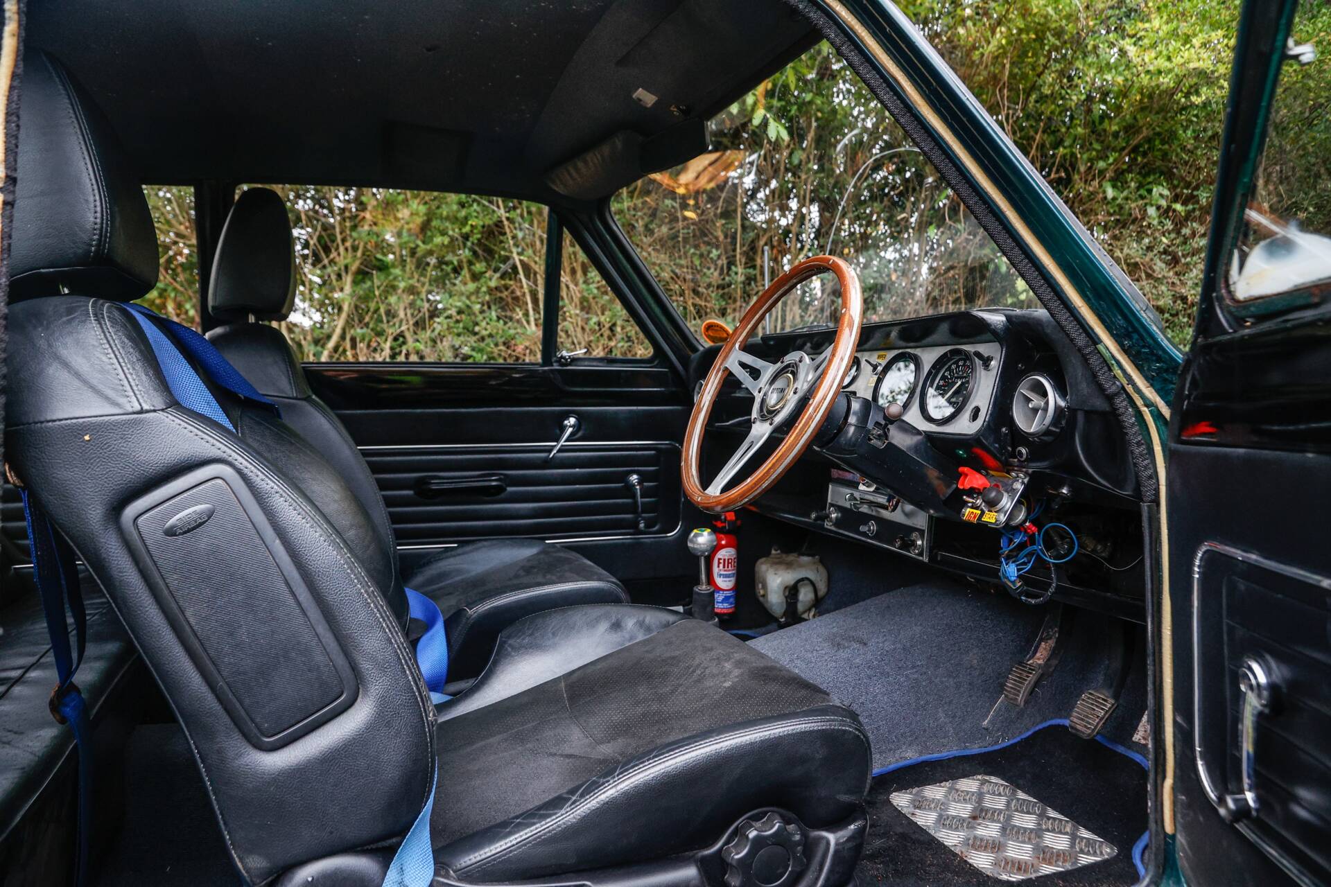 This much modified, fast road specification example, was originally registered as a Ford Cortina 1200cc De Luxe model, however, it is now fitted with a Ford RS2000 engine mated to a Type 9 gearbox with short shift box, single leaf suspension and stainless-steel exhaust. It also has a rear anti roll bar, new battery, disc brakes, engine cut off and sits on a set of Minilite alloy wheels but still retains its original rear bench seat! It comes with a Haynes Owners Handbook and various past MoT test certificates but advantageously, this is now tax and MoT exempt and presents very well as a historic vehicle 'pocket rocket'! Consigned by James Good