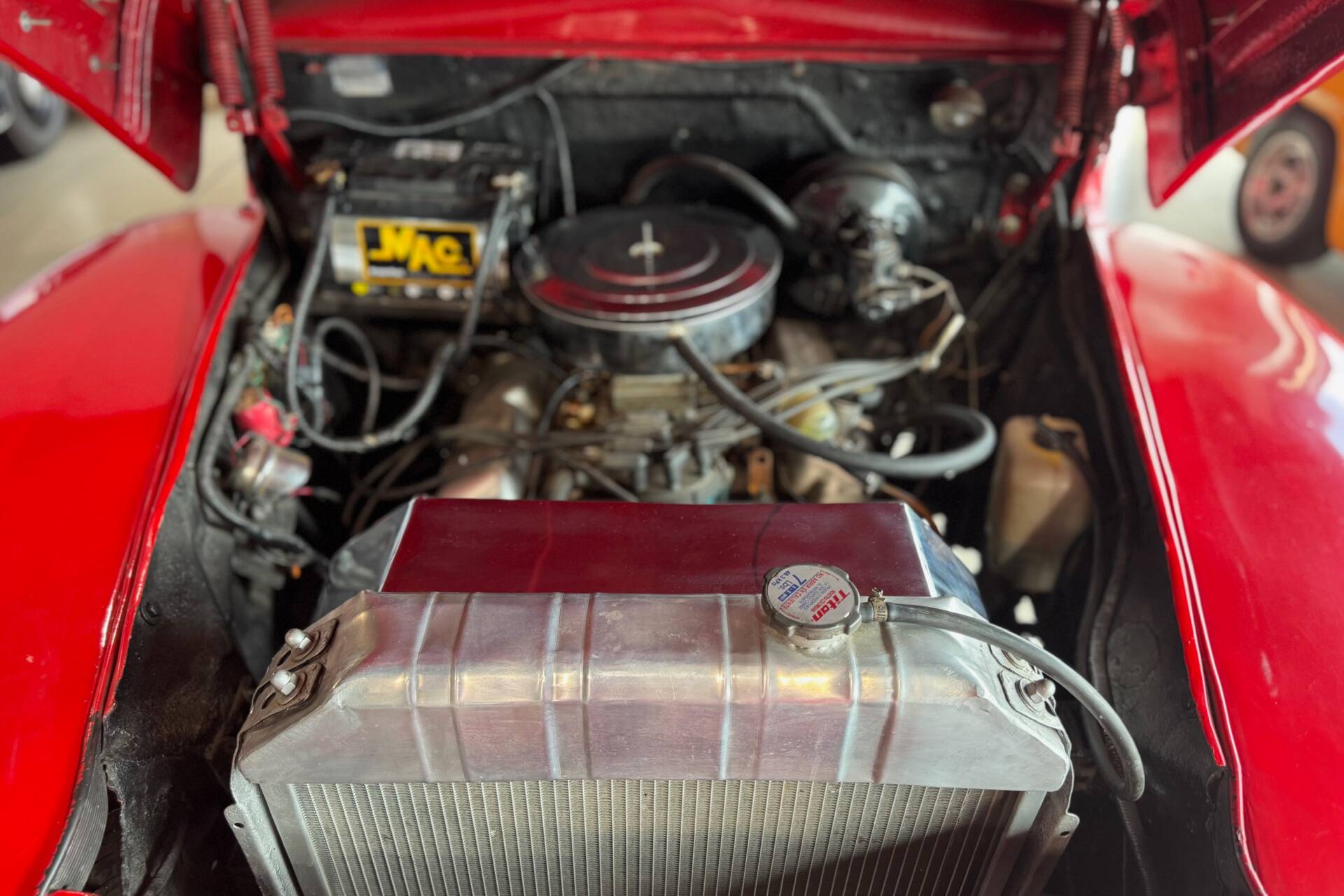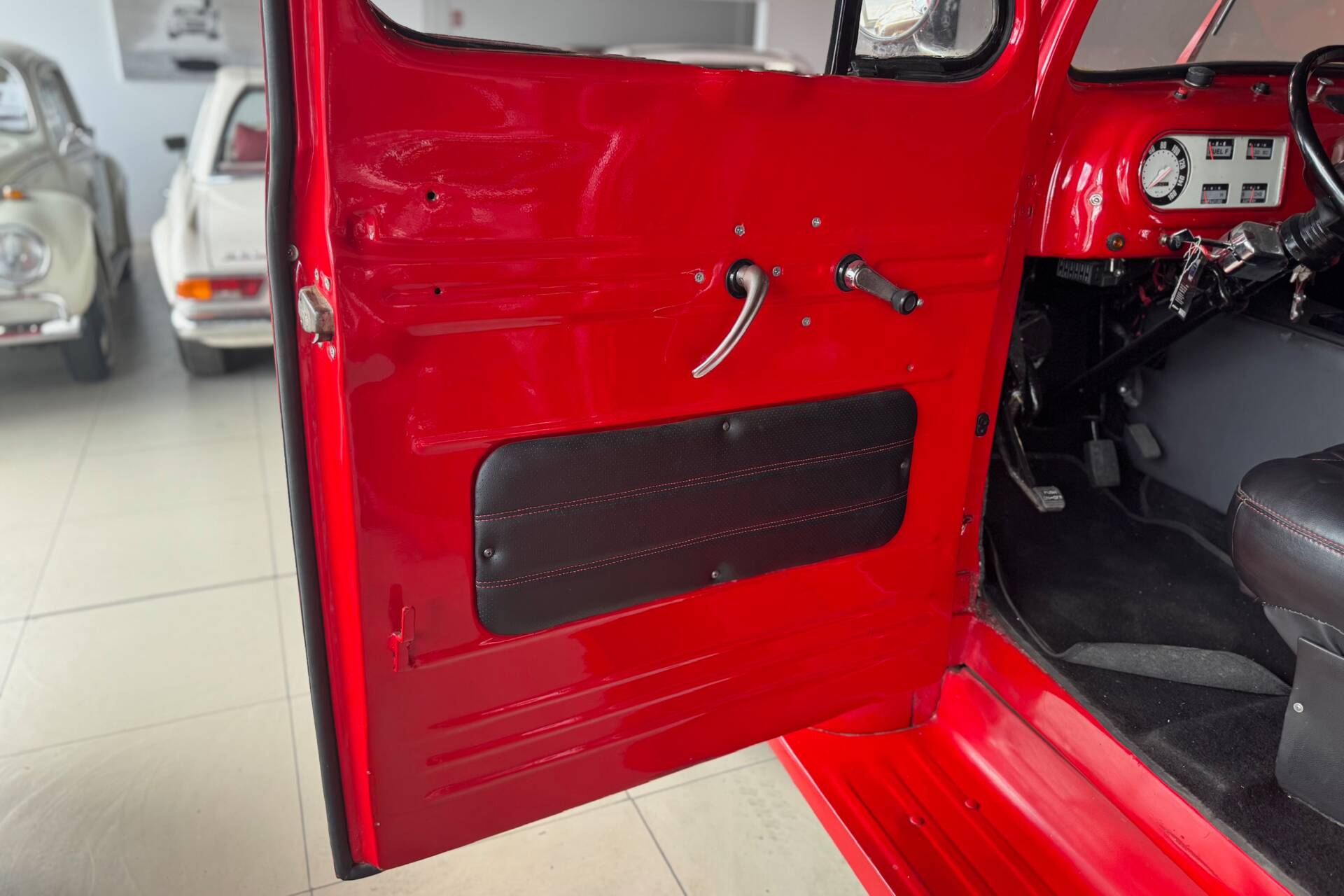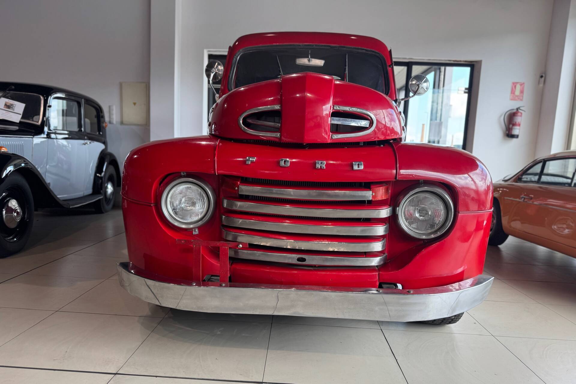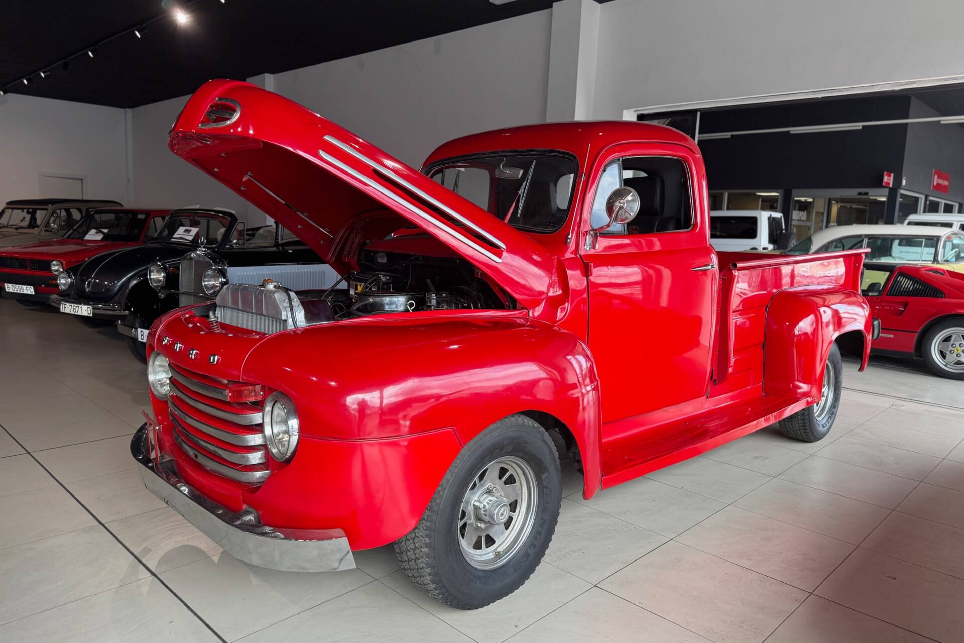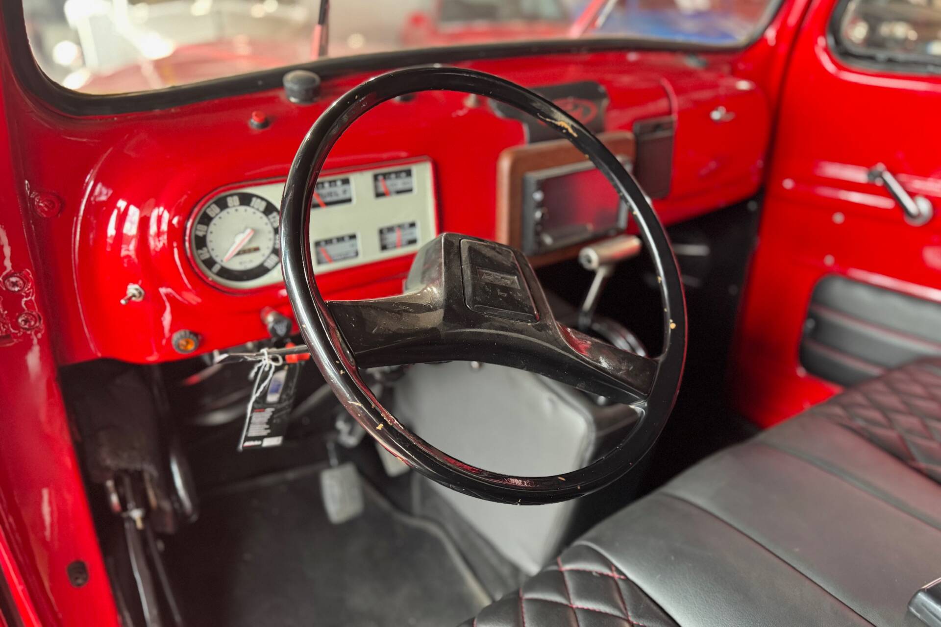 Impresionante réplica de la mítica Ford F100 Pick Up, icono americano de finales de los años 40 y principios de los 50, presentada en un impecable color rojo brillante que resalta sus líneas clásicas y su carácter robusto.