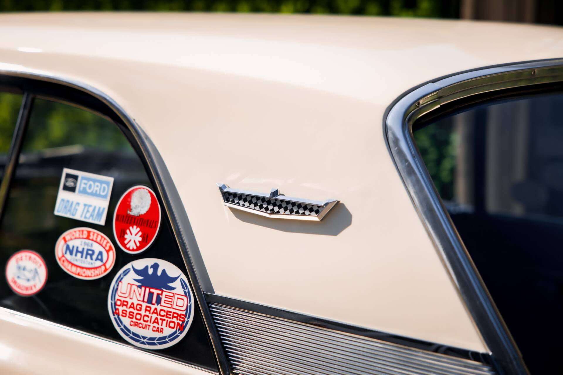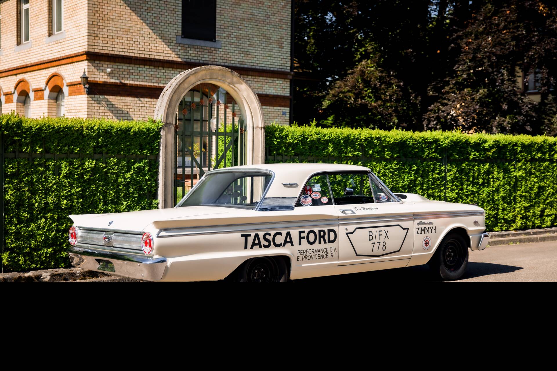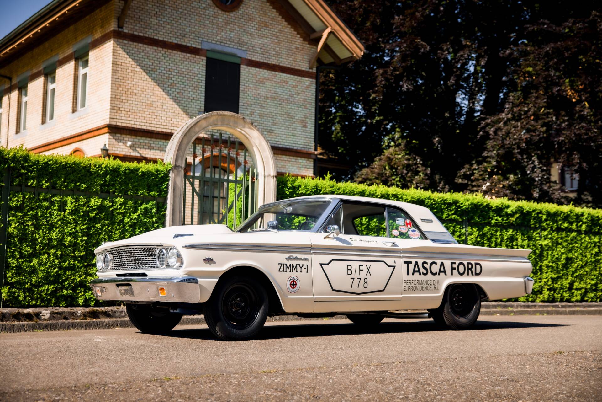 Die erste Hälfte der 60er Jahre markiert die goldene Ära des Drag Racing in den USA. Die unter der National Hot Rod Association (NHRA) durchgeführten Virtel Meilen Rennen waren noch nie so populär. Mehr Hubraum, mehr Leistung, mehr Racing war das Credo. Auch die Hersteller aus Detroit mischten im grossen Stil mit und bekamen mit „FX“ (Factory Experimental) ein eigenes Rennklassement um sich dort zu messen. Das Grundprinzip: ein kompaktes Serienfahrzeug allen unnötigen Gewichts zu entledigen und den grössten und leistungsstärksten Motor aus der Produktion einzubauen. So begann das Kräftemessen zwischen Ford, GM und Chrysler. Schliesslich war es die Zeit von „win on Sunday, sell on Monday“. 1962/63 geriet der Fairlane mehr in den Fokus für Fords Drag Racing Programm, wo man bis anhin auf den Galaxie setzte. So wurde ein nagelneuer 1963er Ford Fairlane mit einem 410 cui Mercury V8 ausgestattet, welcher wiederum kurz darauf dem neuen 427 Platz machte. Ausserdem wurden Heizung, Radio, Dämmmaterial und weitere unnütze Bauteile entfernt. Damit der gigantische Motor auch Platz fand wurde die ikonische „Teardrop“ Motorhaube aus GFK angebracht. Gemäss dem NHRA Reglement gab es 7 Zoll Sliks auf der Hinterachse. In diesem Auto liess Ford Testfahrer Bill Humphrey auf dem Detroit Dragway die Virtelmeile in 11 Sekunden hinter sich. Von da an war klar: Der Fairlane war der neue Star am Virtelmeilen Himmel. Das Projekt wurde weitergetrieben und mit dem Modelljahr 64 erschien offiziell der Fairlane „Tunderbolt“. Nur 127 dieser Wagen mit der 427er Maschine verliessen das Werk und sind heute extrem seltene und hochpreisige Sammlerfahrzeuge. Der Prototyp jedoch, das von Tasca Ford gesponserte Auto von Bill Humprey, wurde daraufhin geschlachtet. Leider eine gängige Praxis damals.