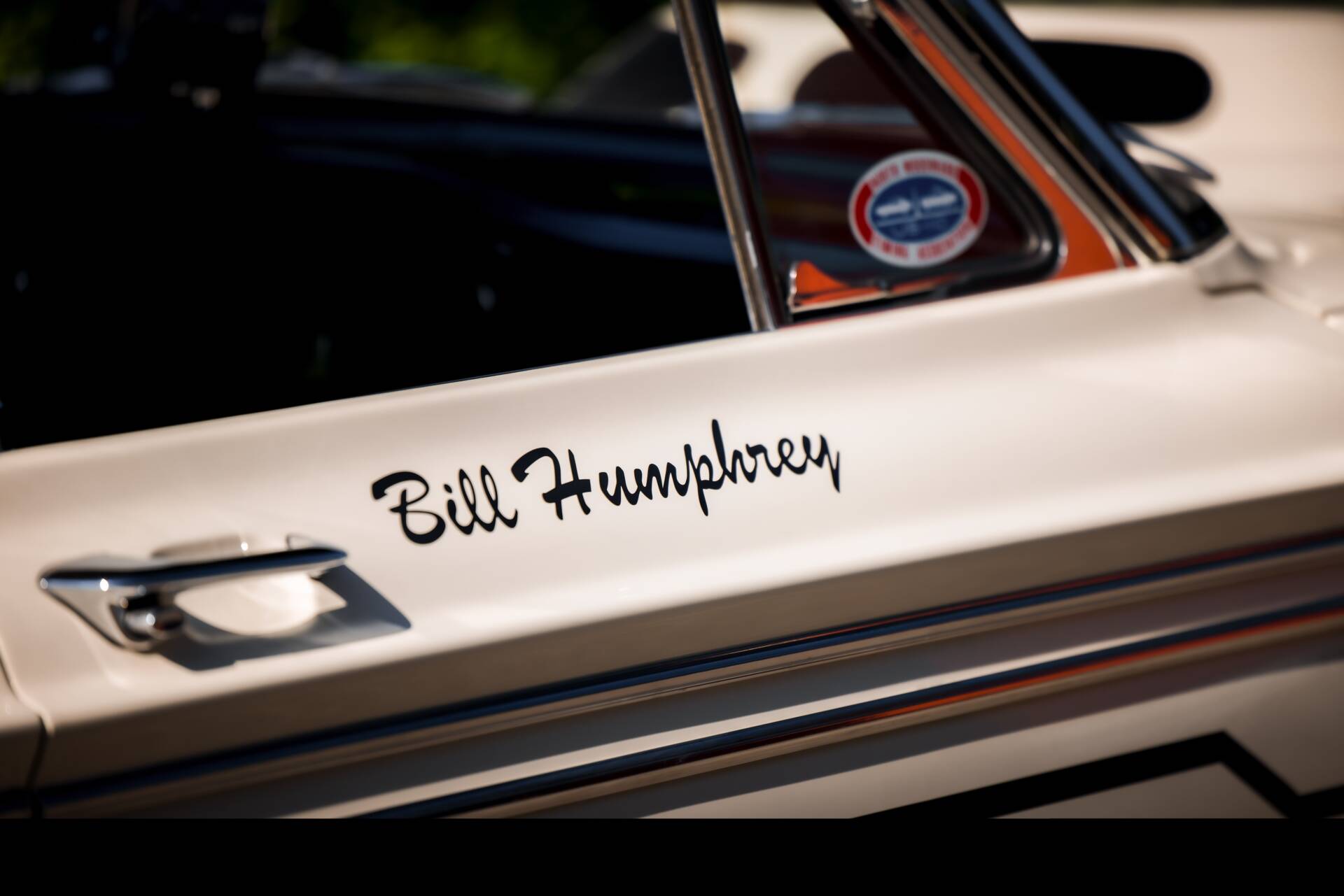 Dieser Fairlane 500 ist die Reinkarnation jenes Thunderbolt Prototypen. Er wurde nach Vorbild von Humphreys Wagen neu aufgebaut. Die Sponsoren und Klassenbezeichnungen wurden originalgetreu nachgebildet. Kurz vor seinem Tod hat Bill Humphrey sogar das Armaturenbrett signiert. Die Mechanik wurde zwischen 2021 und 2024 komplett revidiert. Zuletzt wurde ein durchwegs neu aufgebauter 351 Windsor V8 eingebaut. Beatmet wird er über eine Eldelbrock High Rise Ansaugbrücke und einem Holley 4-fach Vergaser. Des Weiteren wurden Optimierungen in Form elektronischer MSD Zündanlage, Edelstahl Fächerkrümmern mit Sidepipes, elektrischer Benzinpumpe und Aluminiumkühlers mit Zusatzlüfters vorgenommen. Die Aufhängungen und Bremsen sind ebenfalls erneuert worden. Vorne gab es ein Upgrade auf Wilwood Scheibenbremsen mit 4-Kolben Zangen und innenbelüfteten Scheiben. Für die Kraftübertragung sorgt das C4 3-Stufen Automatikgetriebe. Wie beim original Auto wurden Radio, Heizung und Dämmung weggelassen. Nur eine Carrosserie auf Mikey Thompson Sliks und die brachiale Leistung des Windsor V8. Kein Schnickschnack. Ein Ordner mit der Dokumentation des liebevoll aufgebauten Wagens ist vorhanden. Der Ford verfügt über das 13.20a Zolldokument. Ein echter Hingucker in mechanischem neuwertigem Zustand. Allein das Drehen des Zündschlüssels lässt die Erde beben und man kann sich das Lächeln nicht verkneifen. Ein sicherlich einzigartiges und aussergewöhnliches Auto für den besonderen Geschmack. Amerikas Motorsport auf seinem Zenit. Gegen Aufpreis ist eine MFK möglich.