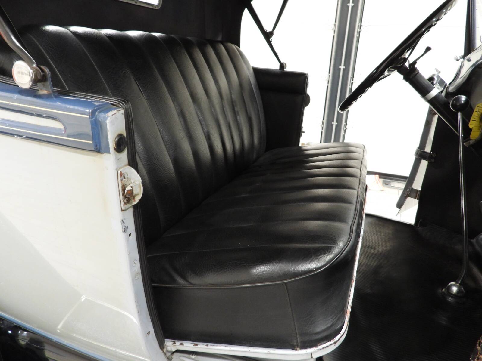 Black leather seats and panels, chrome-plated driver's side mirror, rubber floor, 5 painted ivory spoke wheels with 4.40/4.50-21 whitewall tires, third rear seat known as the "mother-in-law seat"