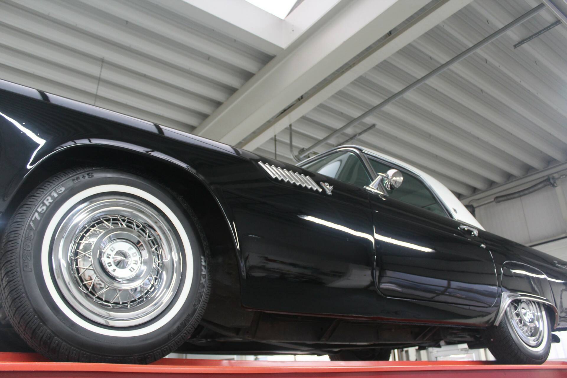 Hierbei handelt es sich um einen Ford Thunderbird aus dem Jahr 1955, das allererste Modelljahr und der Beginn einer Legende. Ein Automobil, das von der ersten Stunde an Autorität ausstrahlte und längst weltweite Berühmtheit erlangt hat.