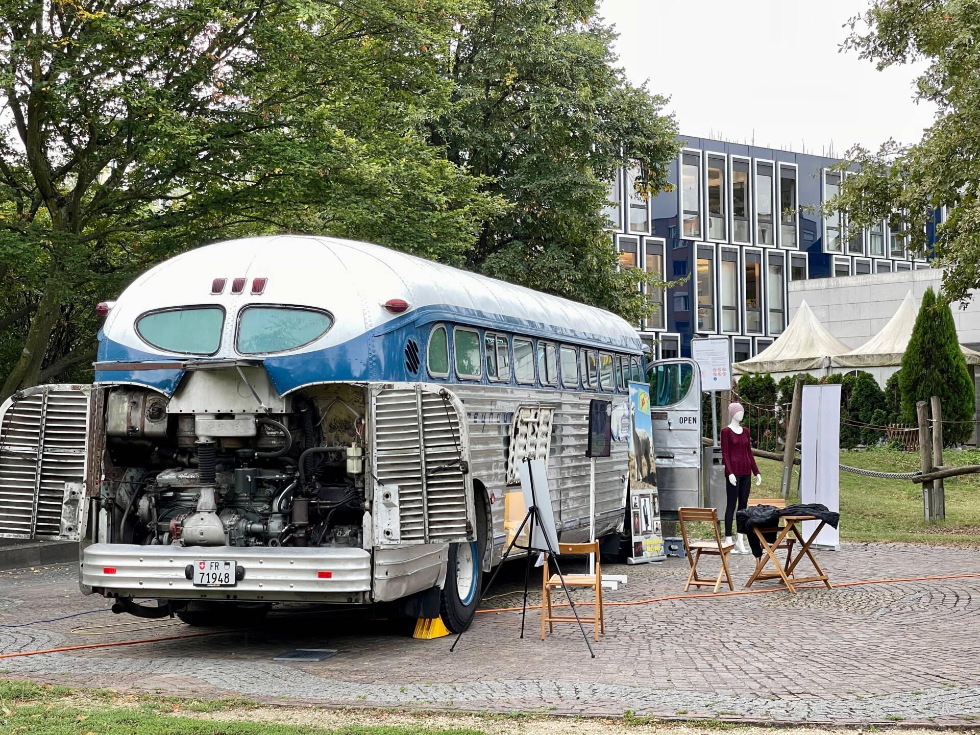 Erster Bus weltweit mit Klimaanlage, Liegesitzen, Leselampen. Kult-Bus, entworfen vom Designer, der die Original-Coca-Cola-Flasche entworfen hat. 2-Takt-Diesel, unsynchronisiert.