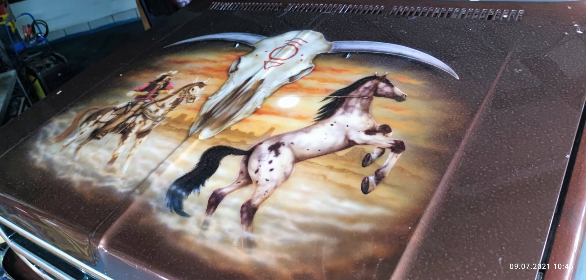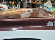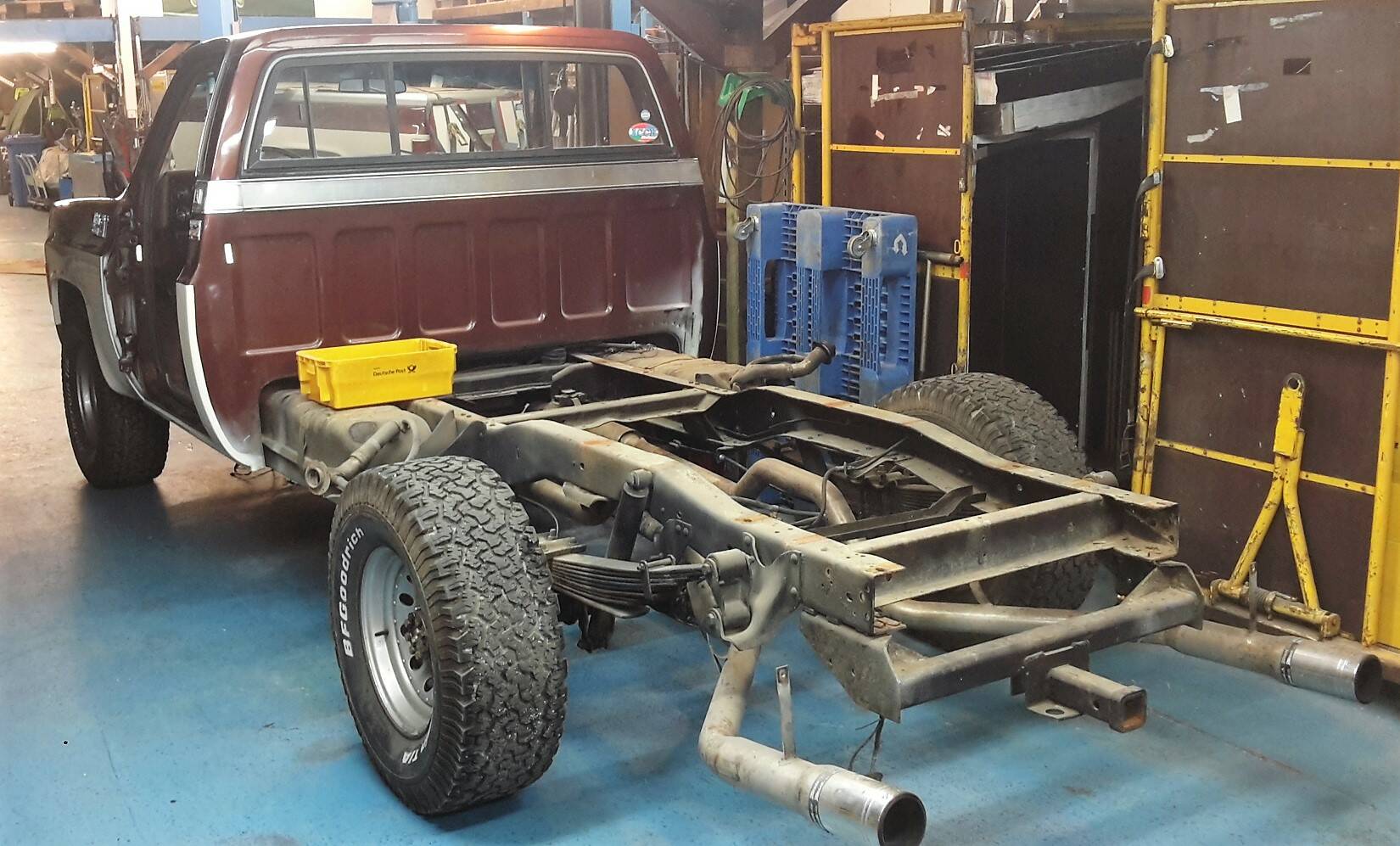 Optisch präsentiert sich der Sierra 2500 im klassischen Erscheinungsbild eines US-Pick-ups der Siebziger: kraftvolle Proportionen, langgestreckte Haube und markantes Frontdesign. Die Ladefläche weist laut Angaben oberflächliche Rostblasen auf, zudem gibt es eine Delle an der Aluminiumabdeckung. Dies sind Spuren authentischer Nutzung, die den Charakter eines echten Arbeitstiers unterstreichen. Die originalen Anbauteile und der Erhaltungszustand der Karosserie werden nicht näher beschrieben; Informationen hierzu liegen nicht vor.