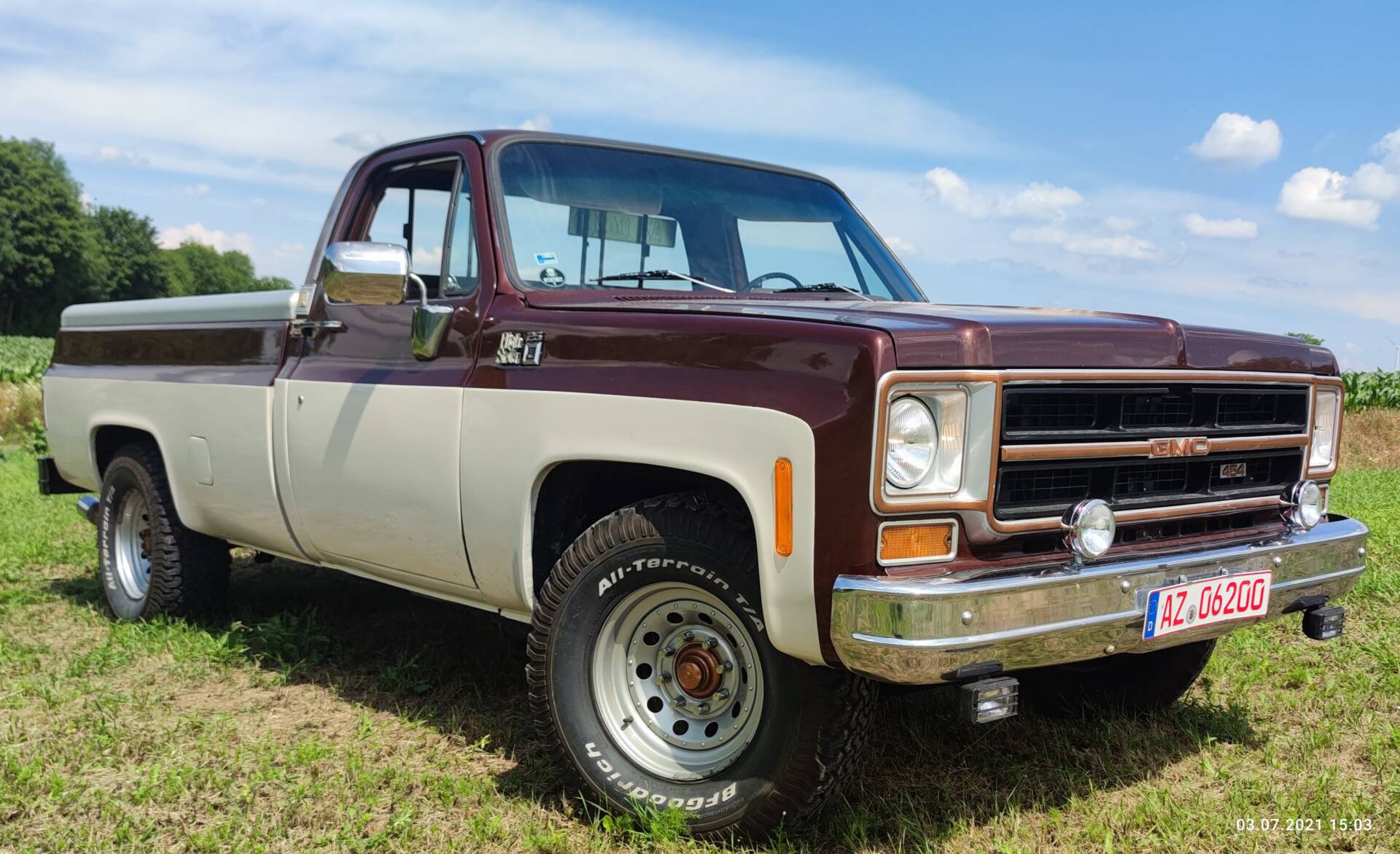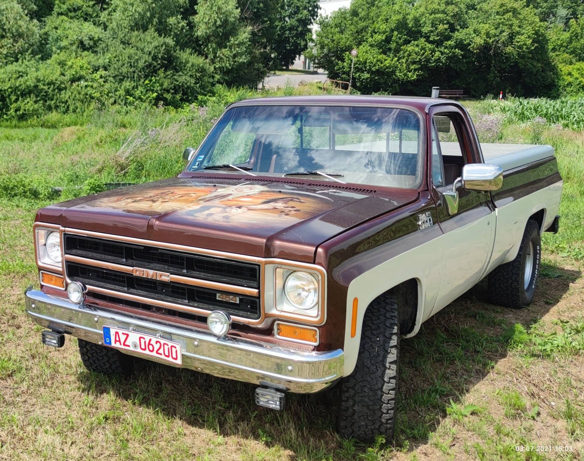 Dieser GMC Sierra 2500 von 1975 präsentiert sich als authentisch erhaltener Klassiker der amerikanischen Pick-up-Kultur. Im Jahr 2022 wurde Motor, Antrieb und Elektrik vollständig restauriert beziehungsweise überholt – eine Maßnahme, die in der Szene Seltenheitswert besitzt. Der 7,5-Liter-„Big Block“-V8 mit 454 cui ist für seine beeindruckende Laufkultur und sein gewaltiges Drehmoment bekannt. Weitere Besonderheiten sind die Edelstahlauspuffanlage und eine Anhängerkupplung, die eine Zugleistung von rund 2.720 kg ermöglicht. Das Fahrzeug befindet sich laut Angaben im Top-Zustand, ein aktuelles Oldtimer-Gutachten liegt vor.
