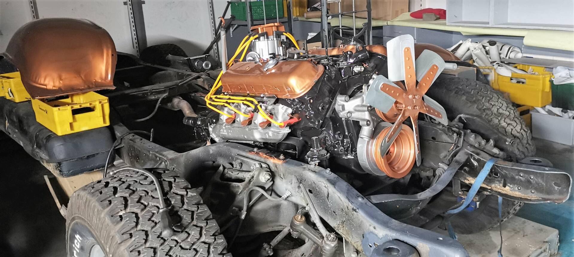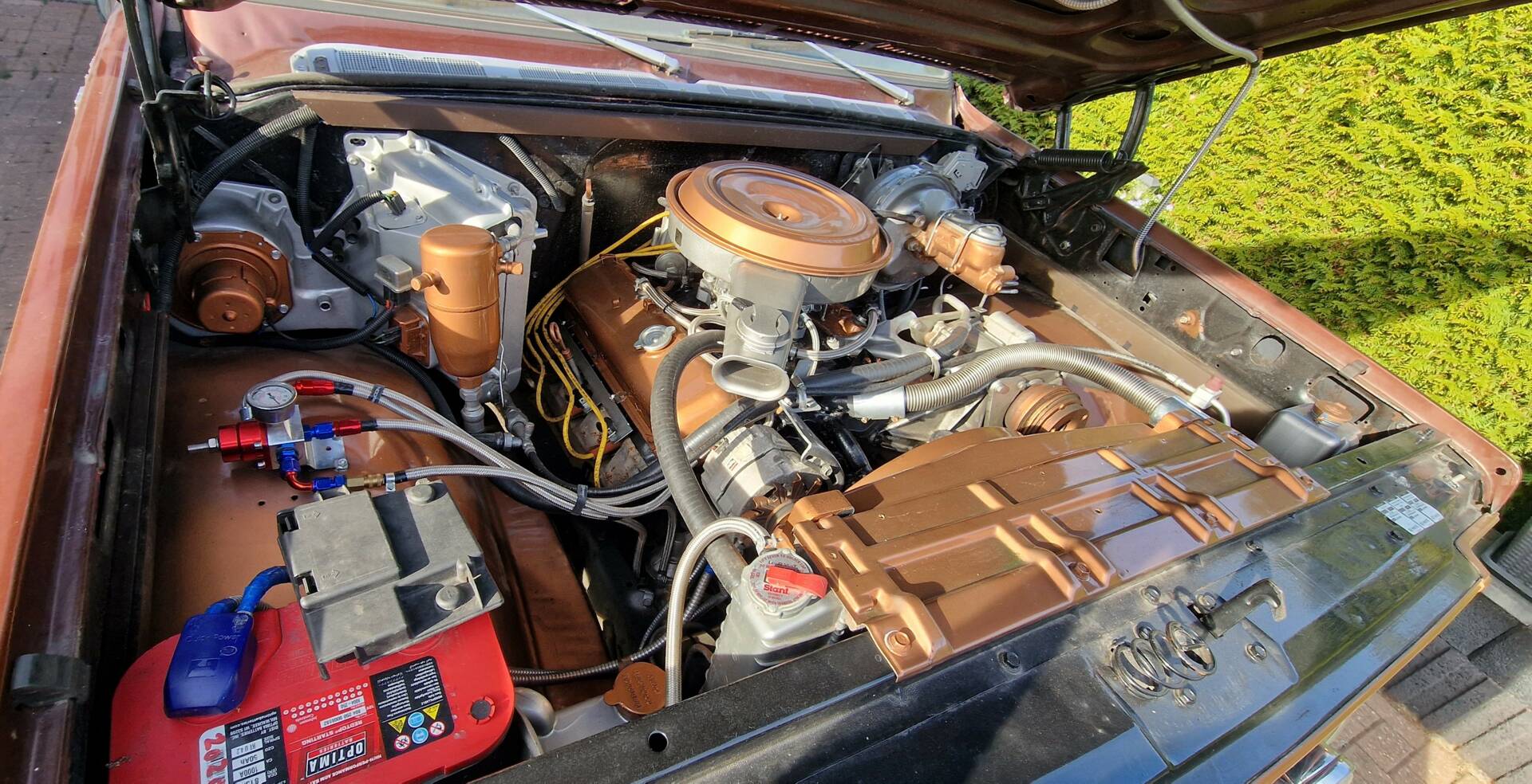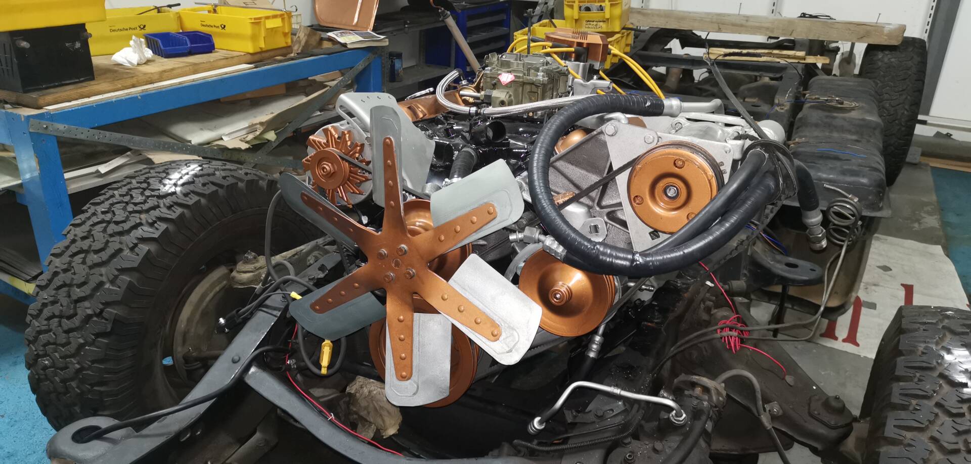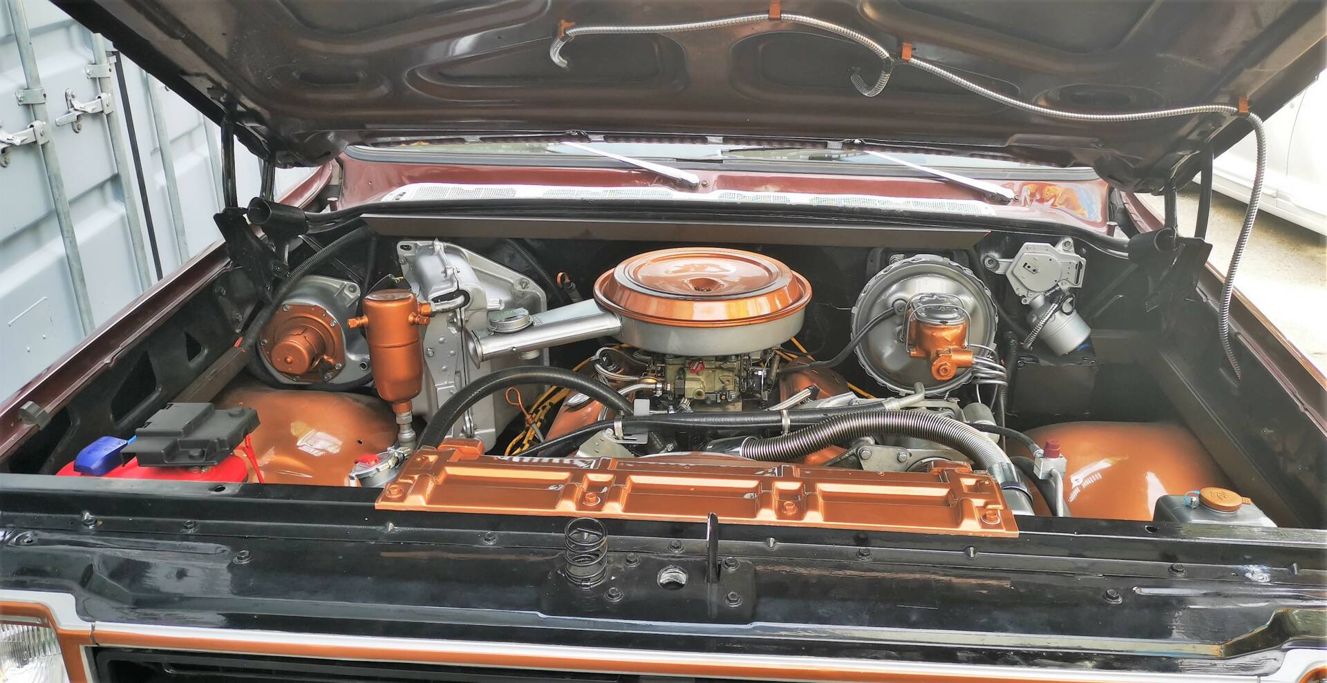 Technisch präsentiert sich das Fahrzeug umfassend revidiert und modernisiert: Motor und Automatikgetriebe wurden komplett überholt, dabei kamen verbesserte Original-Ersatzteile und moderne Dichtungen zum Einsatz. Motor, Anbauteile und Motorraum wurden zusätzlich optisch aufgewertet und hochwertig lackiert sowie technisch „gecleant“. Sämtliche Betriebsflüssigkeiten und Filter sind erneuert. Die gesamte Elektrik inklusive aller Kabel wurde neu aufgebaut – mit moderner Absicherung und Funk-Wegfahrsperre. Die Beleuchtungsanlage ist auf deutschen Standard umgerüstet, inklusive Rückfahrlicht und Nebelschlussleuchte. Von den beiden serienmäßigen Tanks (je ca. 80 Liter) ist aktuell nur einer angeschlossen.