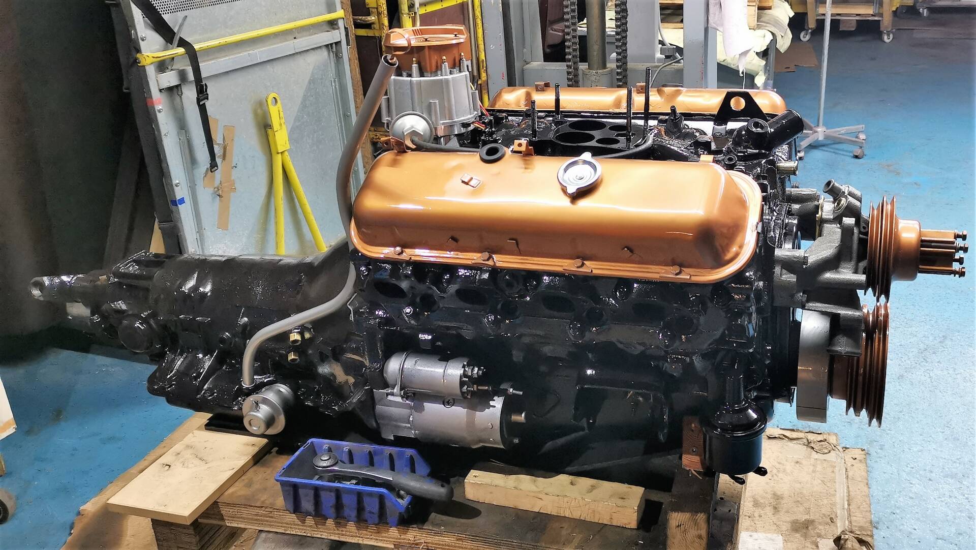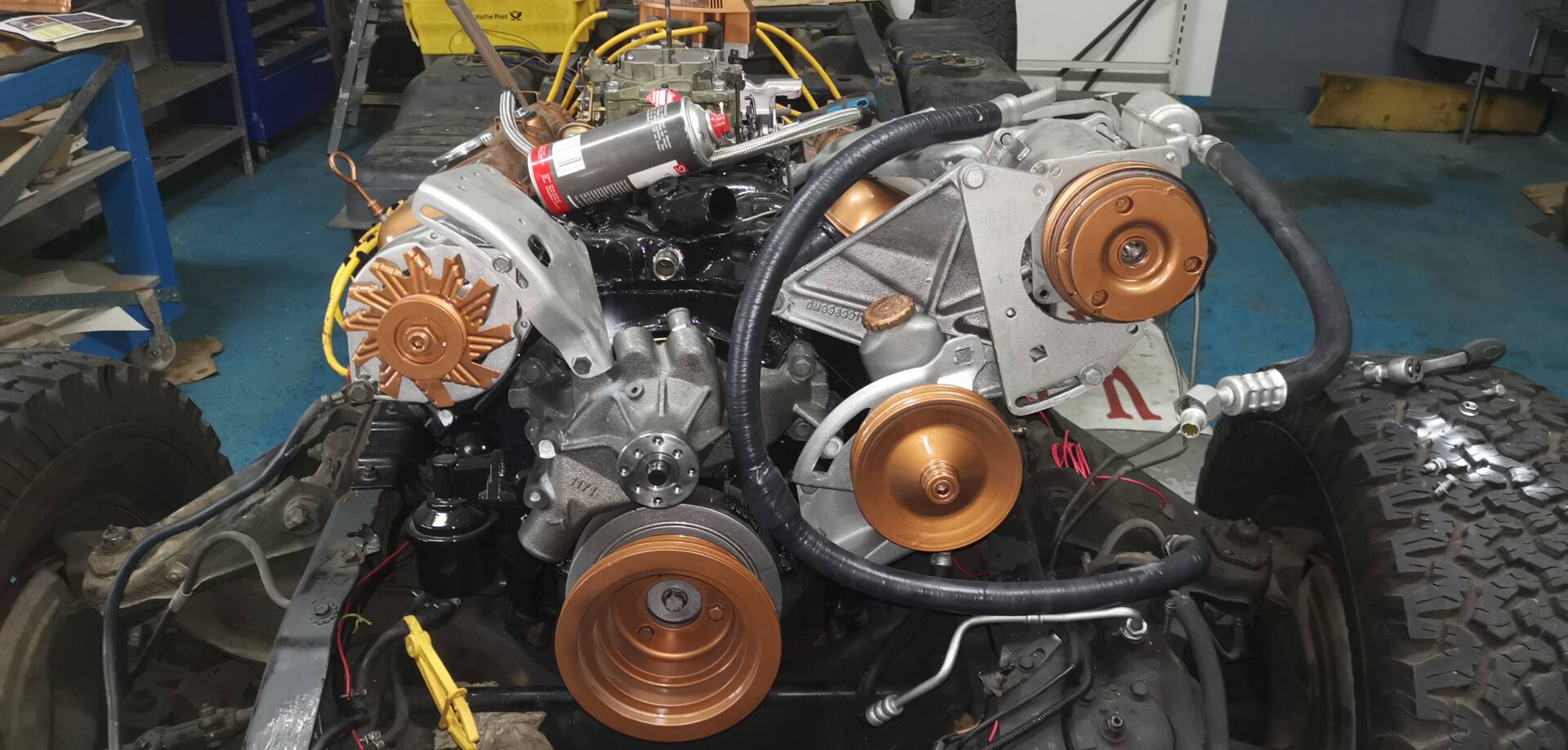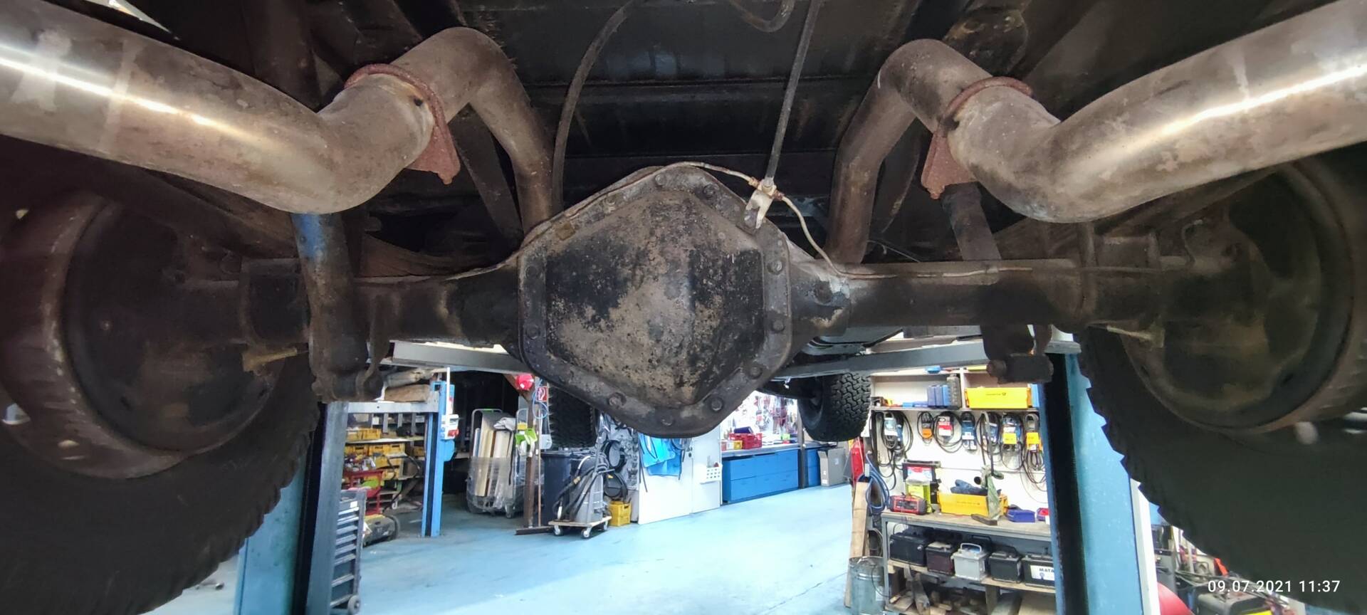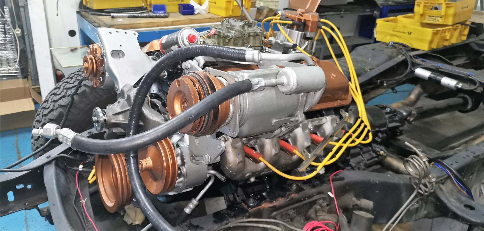 Technisch präsentiert sich das Fahrzeug umfassend revidiert und modernisiert: Motor und Automatikgetriebe wurden komplett überholt, dabei kamen verbesserte Original-Ersatzteile und moderne Dichtungen zum Einsatz. Motor, Anbauteile und Motorraum wurden zusätzlich optisch aufgewertet und hochwertig lackiert sowie technisch „gecleant“. Sämtliche Betriebsflüssigkeiten und Filter sind erneuert. Die gesamte Elektrik inklusive aller Kabel wurde neu aufgebaut – mit moderner Absicherung und Funk-Wegfahrsperre. Die Beleuchtungsanlage ist auf deutschen Standard umgerüstet, inklusive Rückfahrlicht und Nebelschlussleuchte. Von den beiden serienmäßigen Tanks (je ca. 80 Liter) ist aktuell nur einer angeschlossen.