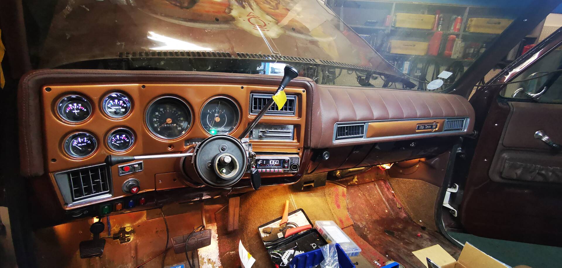 Der Innenraum dieses Sierra 2500 befindet sich laut Angabe in neuwertigem Zustand. Die Sitzbank ist mit Kunstleder bezogen, was nicht nur optisch überzeugt, sondern auch im Alltag robust ist. Das Armaturenbrett sowie die Dekorleisten wurden aufwendig lackiert. Neue Instrumente und Zusatzanzeigen sorgen für ein frisches, zeitgemäßes Cockpit, das dennoch den Charakter des Fahrzeugs bewahrt.