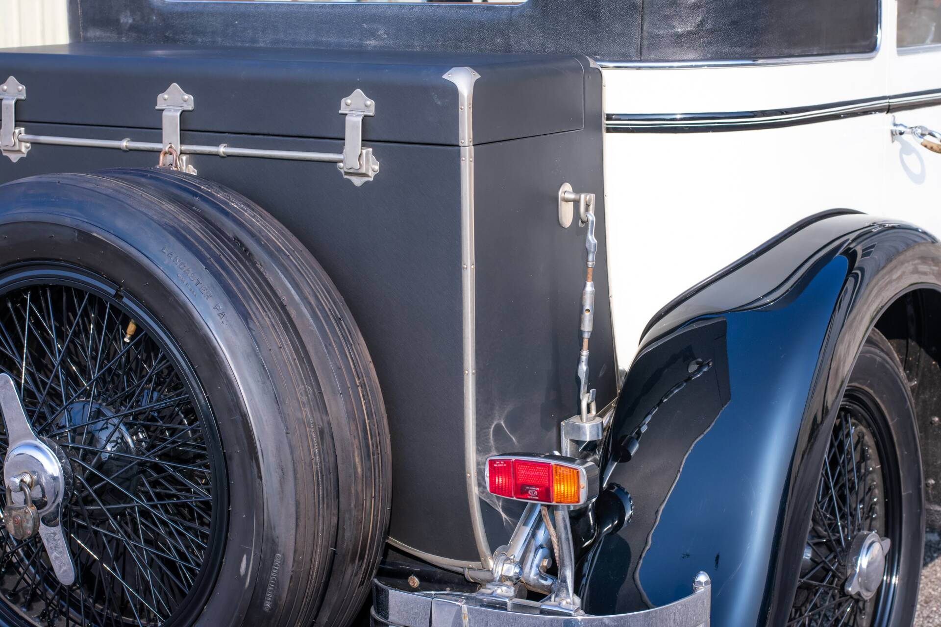 Vintage saloons usually lacked any form of boot, instead relying on an external trunk – and here is no exception, with a large trunk mounted at the rear, behind which two spare wheels are mounte