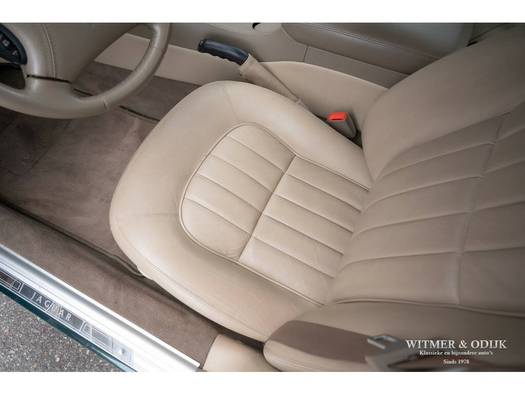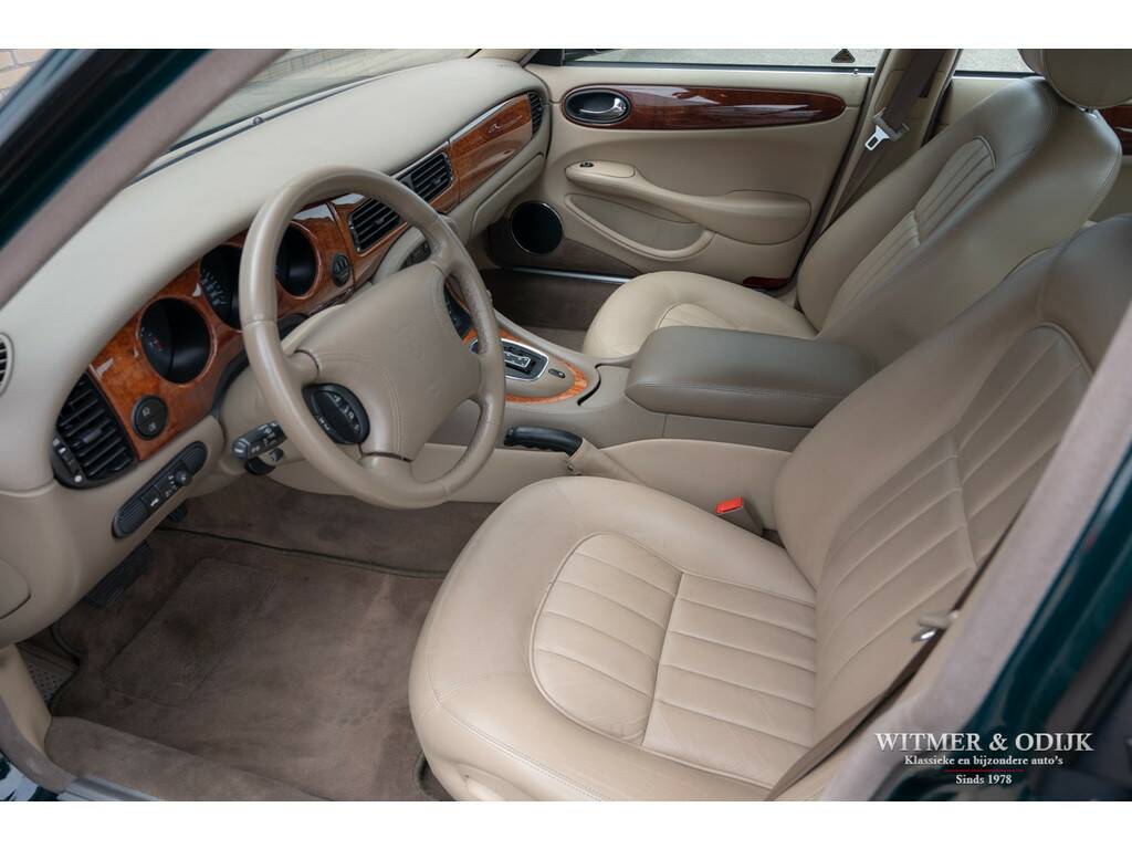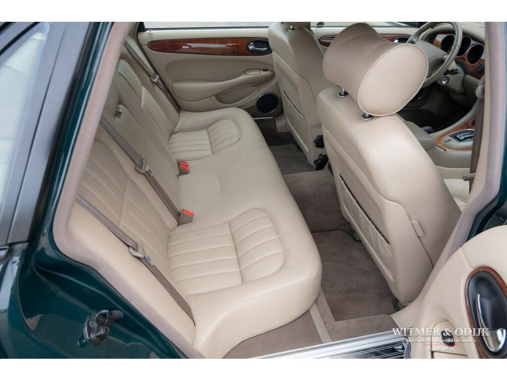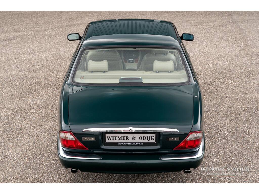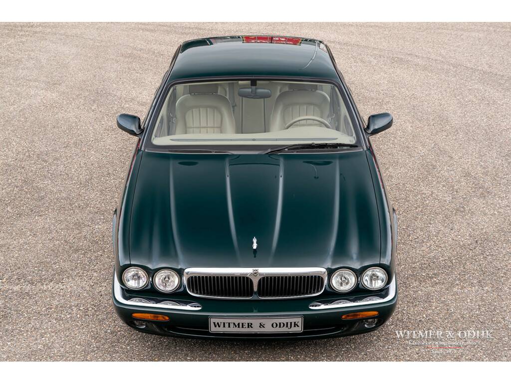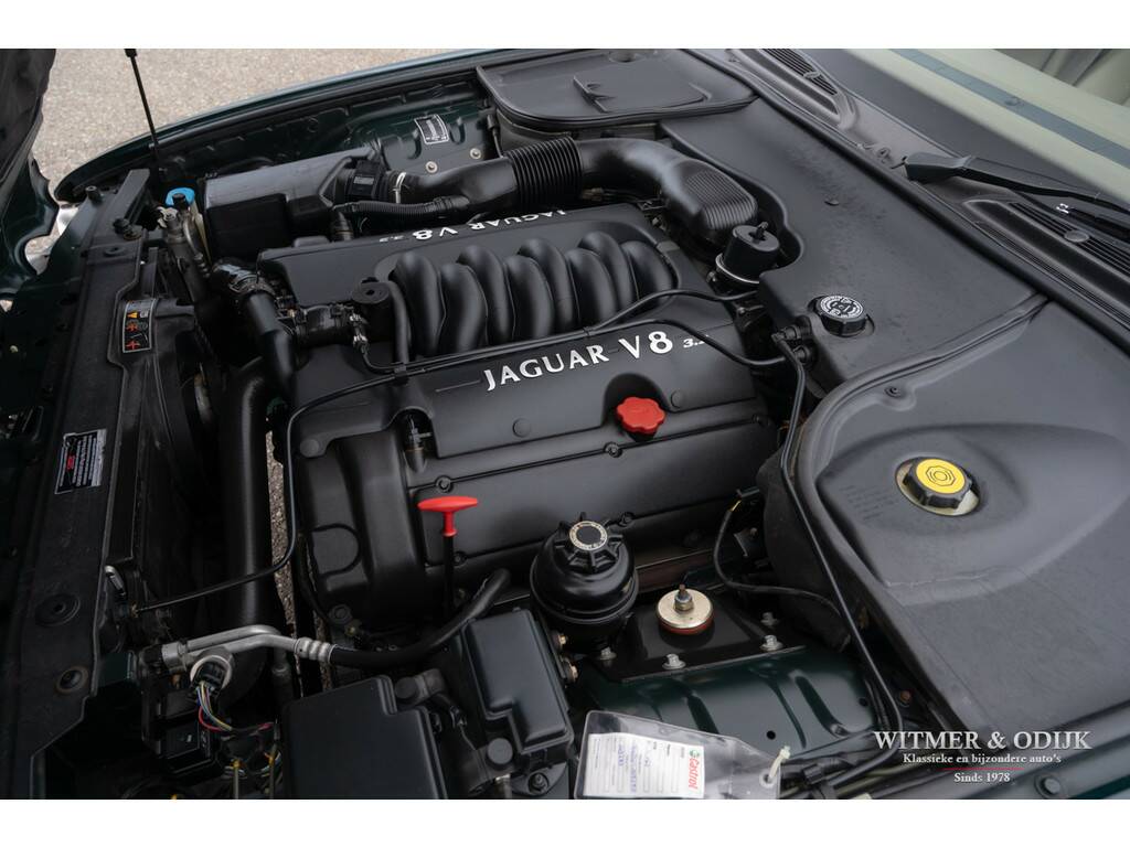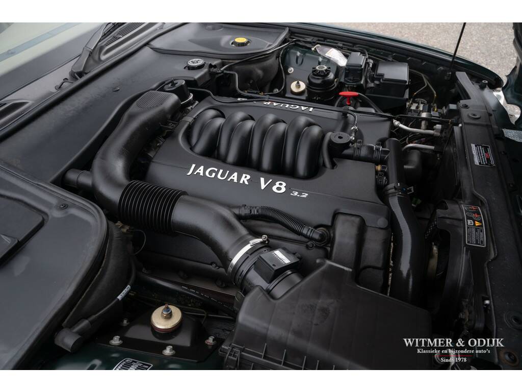 In 1997 introduceerde Jaguar in haar beroemde sedan de XJ, welke al sinds 1968 bestond, een V8 motor. Dit om het comfortniveau van de XJ serie nog verder te verhogen. Immers met een V8 werd de auto stiller en was er 'onderin' ook meer trekkracht voorhanden. Er werd gebruikt gemaakt van de inmiddels als goed en betrouwbaar bekend staande motor uit de XK serie. In deze auto is dat de 3,2ltr. motor met 240pk afgeleid van de 4ltr. V8. Het interieur en dashboard werd gemoderniseerd, uiteraard wel in volledige Jaguar stijl, en er kwamen electronisch adaptief gestuurde schokdempers onder de auto. Zoals het hoort in de autoindustrie, waar men bepaald niet stilzit, werd de XJ-V8 een prettig verbeterde auto t.o.v. de voorganger zonder het inmiddels diep gewortelde karakter te verliezen. Dit bijzonder fraaie exemplaar heeft dankzij de aantrekkelijk lage kilometerstand nog een lang leven voor de boeg. Deze XJ mag een wel zeer bijzondere vondst genoemd worden; slechts 110.000km gereden, absoluut roest- en schadevrij, eerste lak, goed onderhouden en optisch nieuwwaardig. Zo heeft bijvoorbeeld de carrosserie geen enkel gebruiksspoor, ook geen steenslag of sporen van parkeren op de bumpers. Deze XJ werd dan ook garage gestald. Verbazingwekkend is de kwaliteit en optiek van het interieur, gezien de leeftijd verwacht men hier uitgedroogd leer met instap- of gebruikssporen. Niets van dat al is het geval. De stoelen hebben de originele vorm, geen instapsporen, originele keurige matten op de vloer en alle schakelaars en knoppen zijn fris en nog origineel afleesbaar. Ook de hemelbekleding hangt niet naar beneden, een veel voorkomend probleem bij dit type Jaguar.
