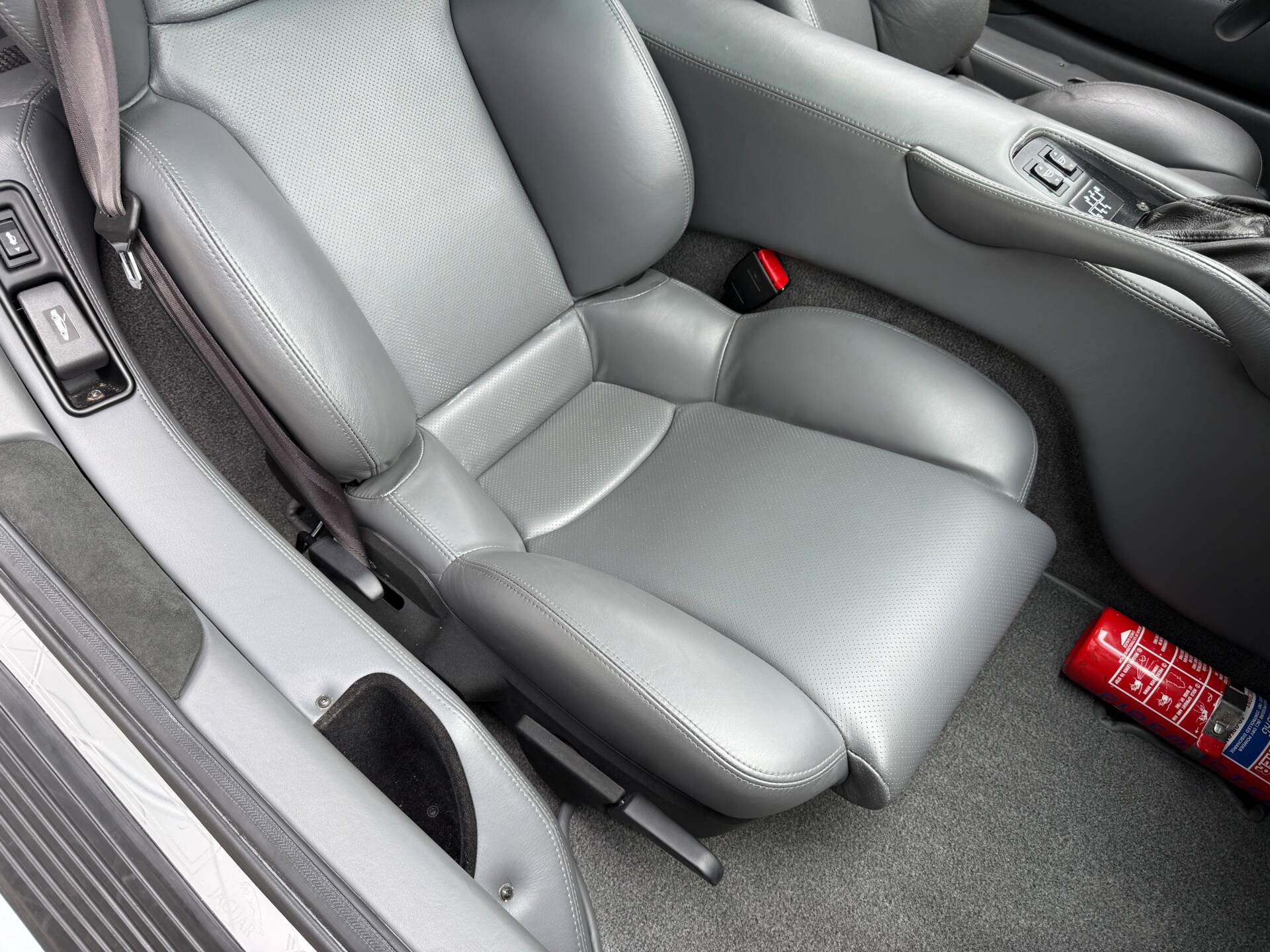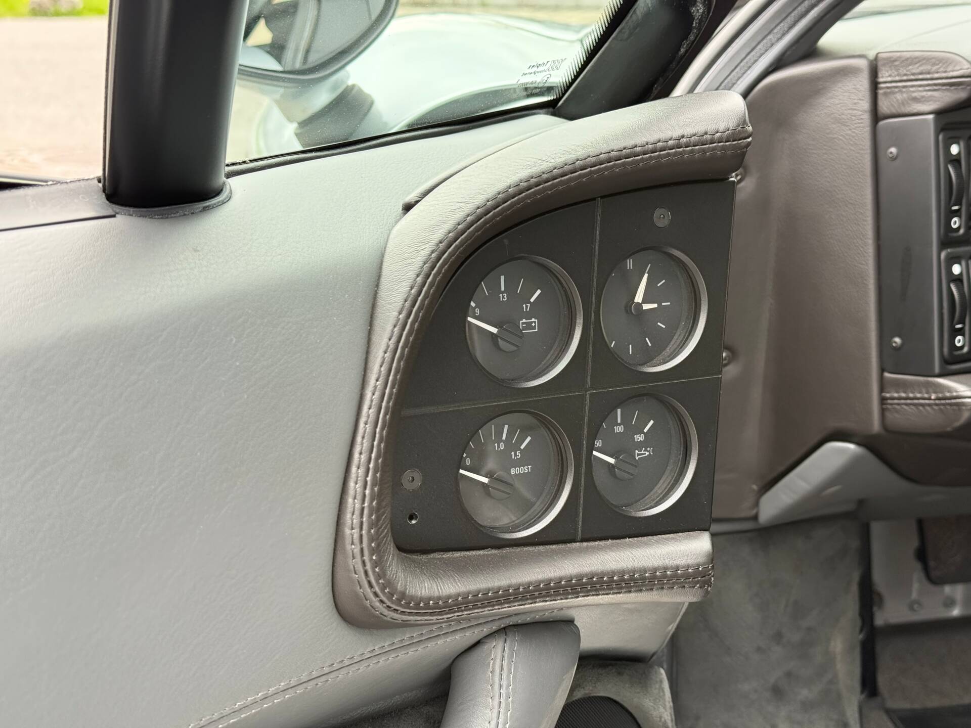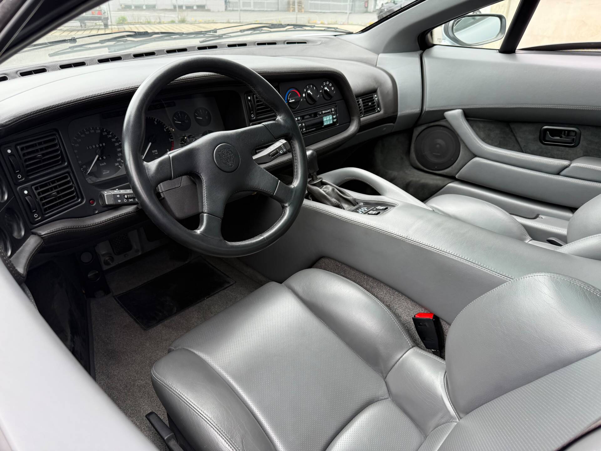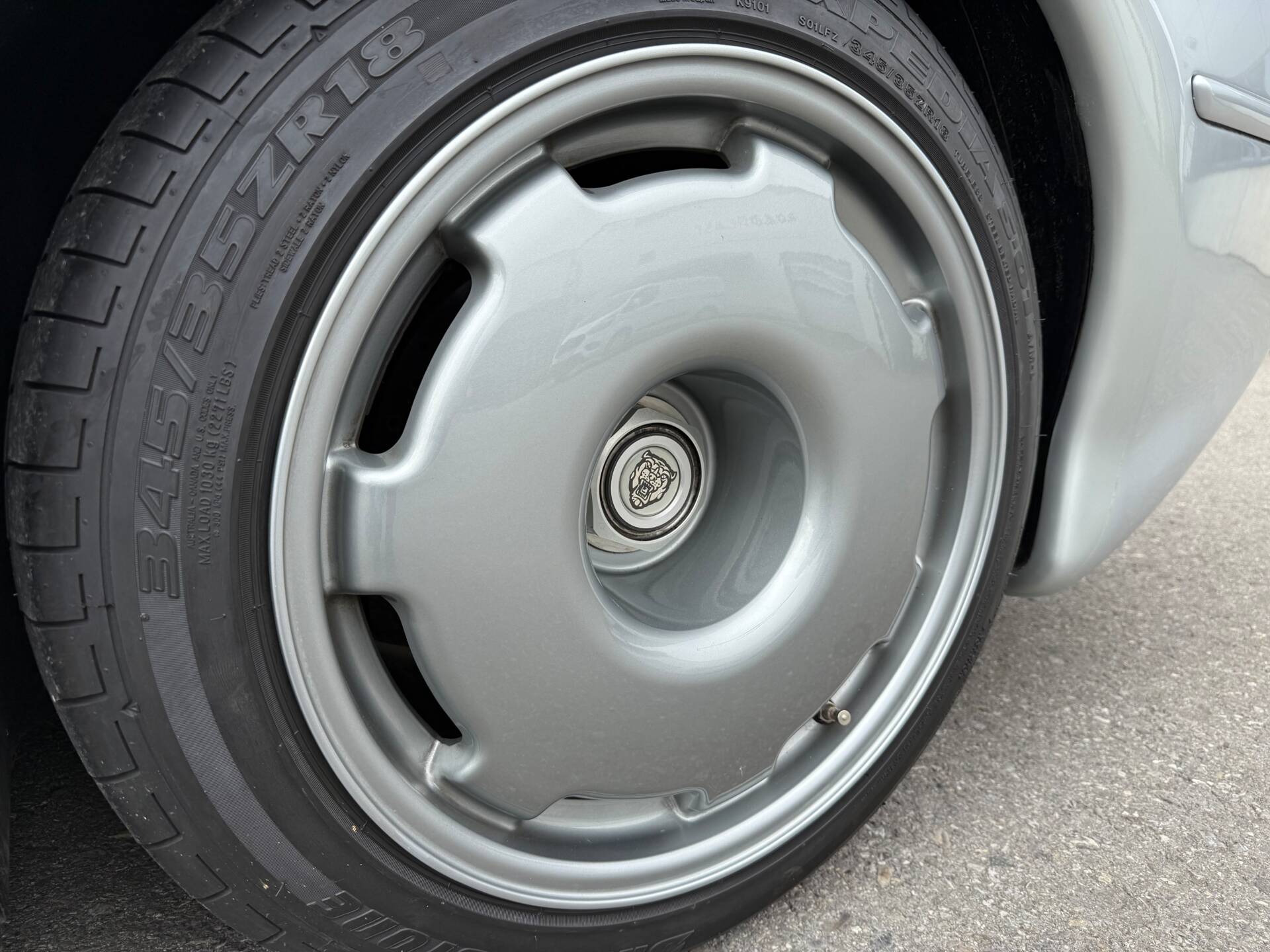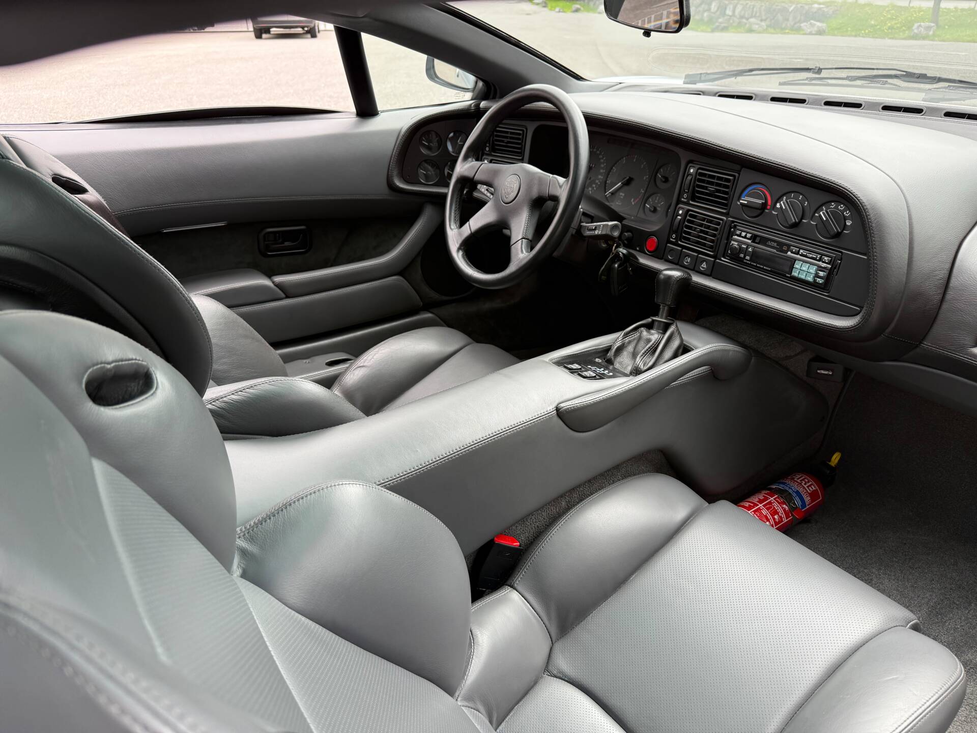 Das graue Leder-Interior befindet sich, wie der gesamte Wagen, in einem fantastischen und unberührten Originalzustand. Auch die originalen, damals extra für den XJ220 entwickelten, Bridgestone „Expedia“ Reifen sind noch immer montiert.
