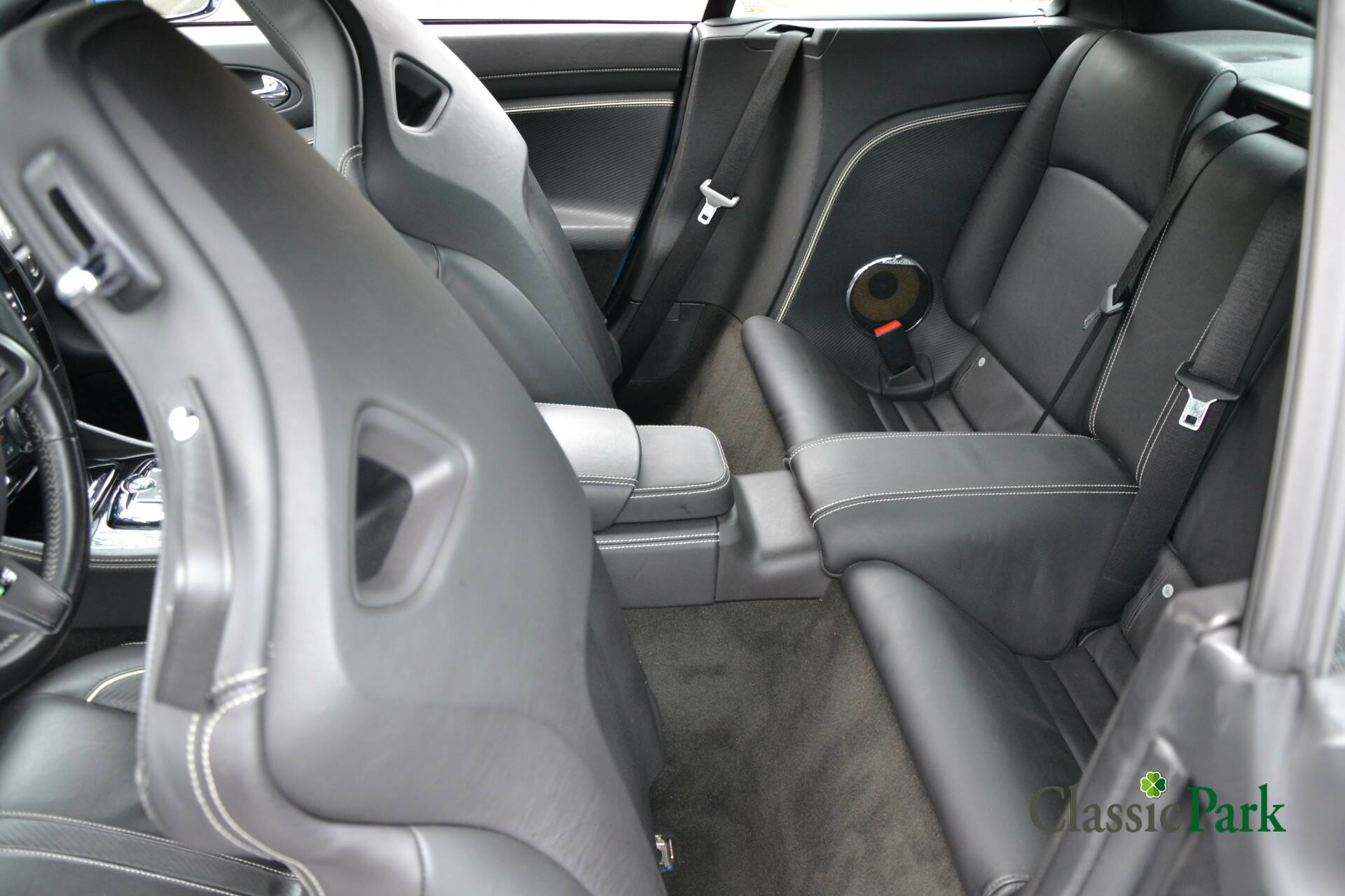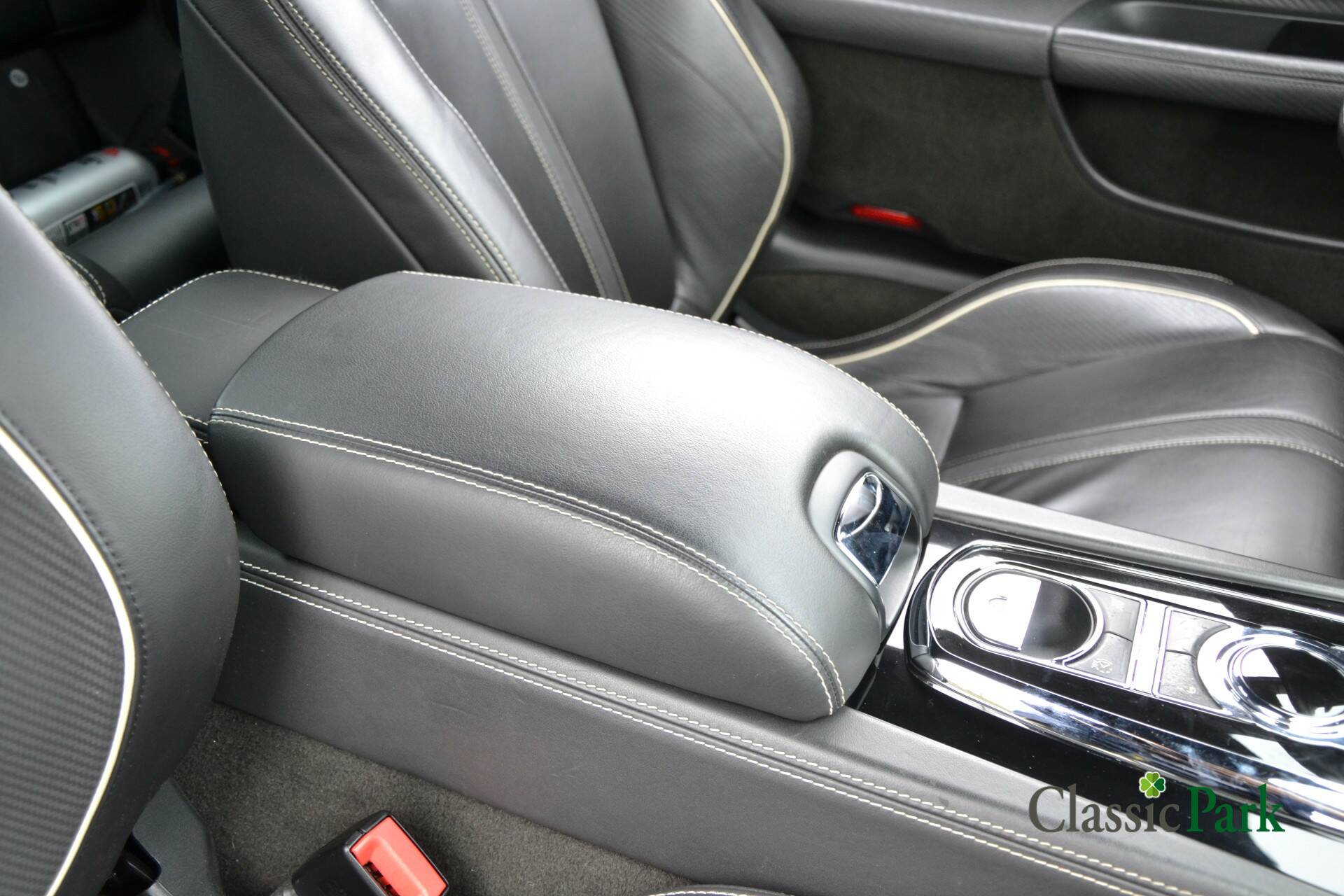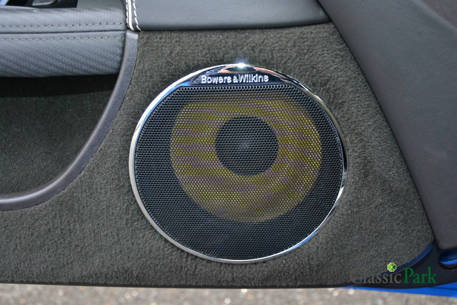 Im Innenraum verbinden sich Sportlichkeit und Luxus auf höchstem Niveau. Hochwertiges schwarzes Vollleder ziert die Performance-Sportsitze, die nicht nur fantastisch aussehen, sondern auch hervorragend stützen. Carbon-Faser-Akzente an Armaturen und Spoilern runden das Bild ab. Und für den Fall, dass Sie sich einmal nicht vom V8-Sound begeistern lassen möchten – was kaum vorstellbar ist – sorgt ein Soundsystem von Bowers & Wilkins für exzellenten Musikgenuss.