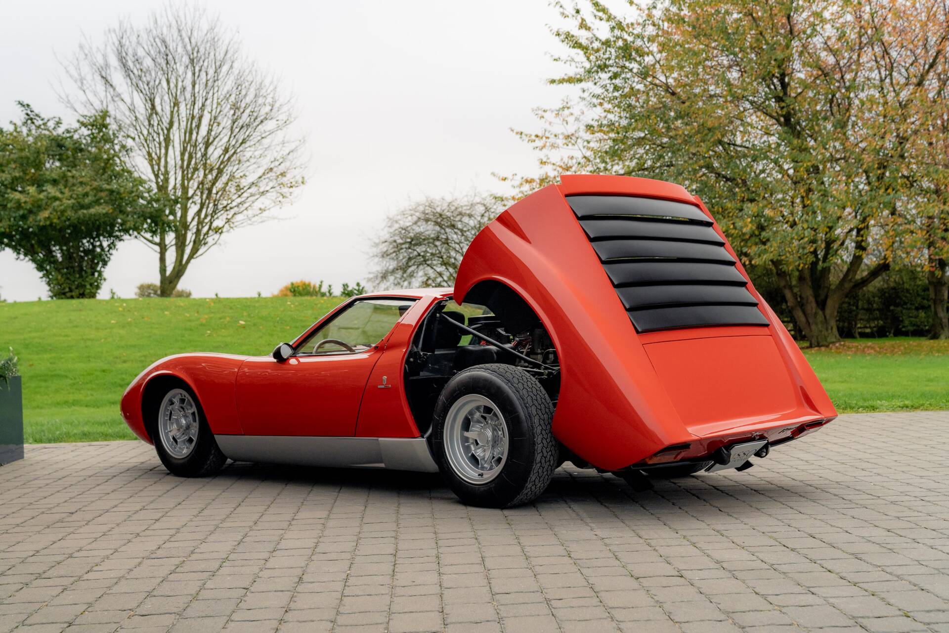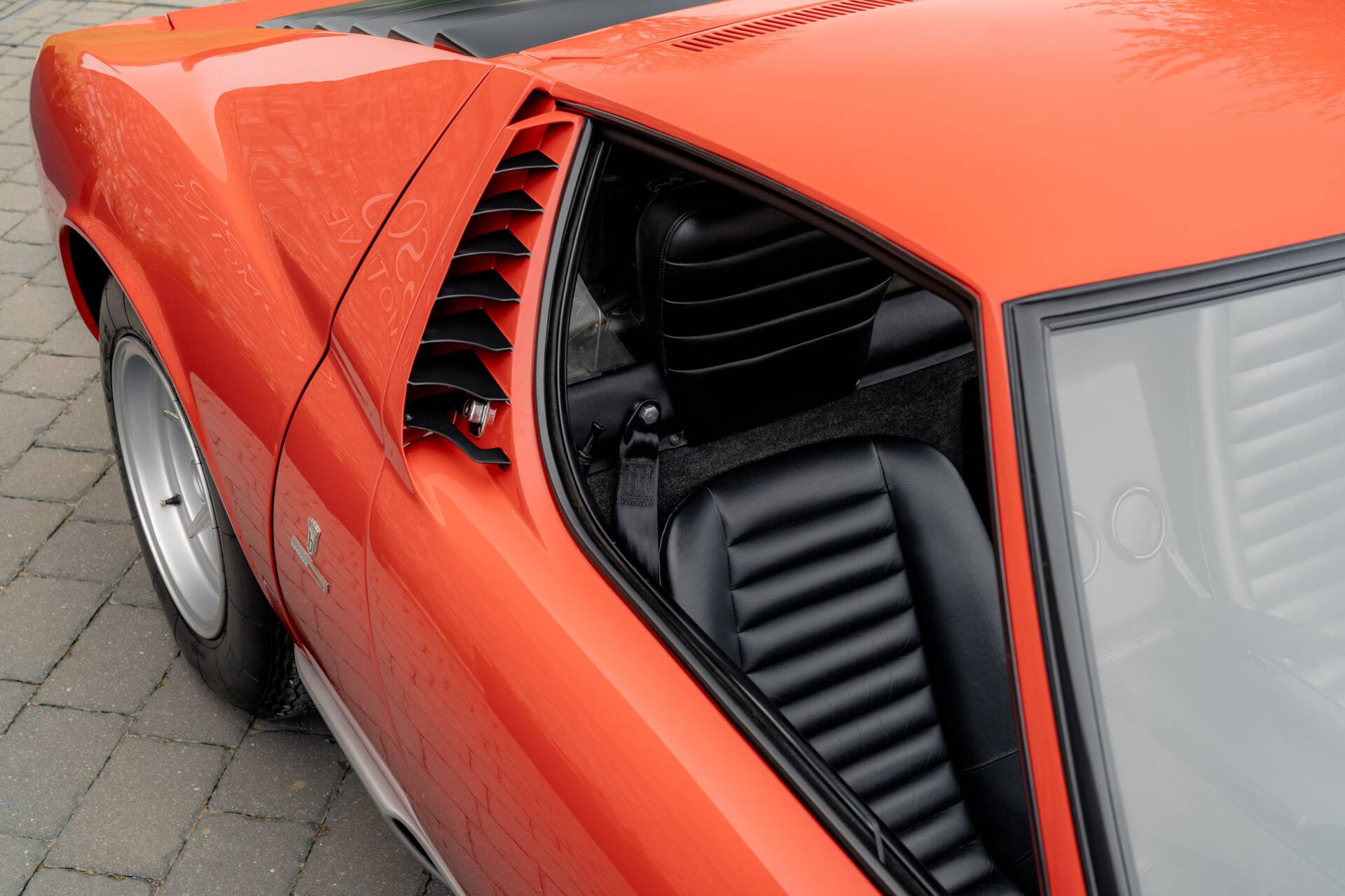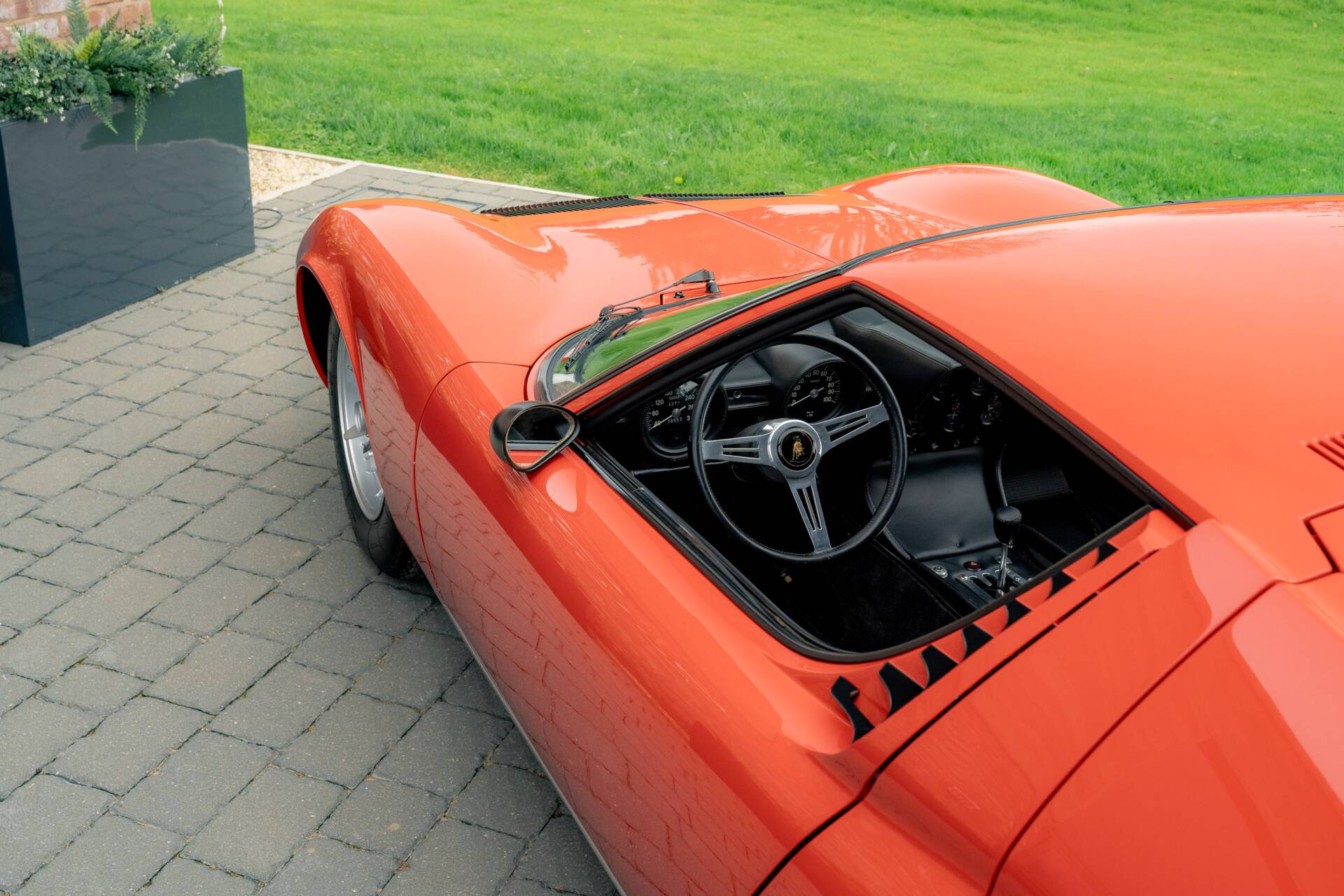 At the same time, the then-owner opted to subtly enhance the car’s mechanical specification. These upgrades included the fitment of Miura S brakes, wider SV-type rear wheels and tyres, SV suspension components, and a modernised electrical system, improving both performance and reliability while remaining faithful to the spirit of the model.