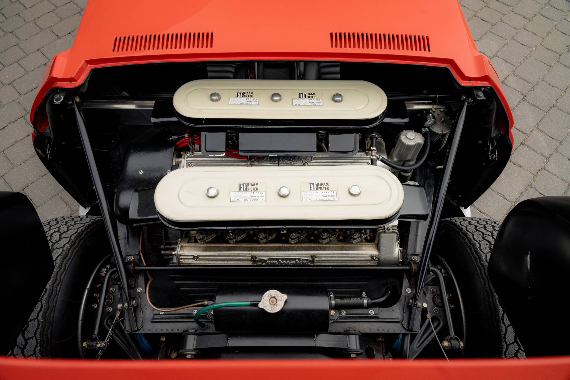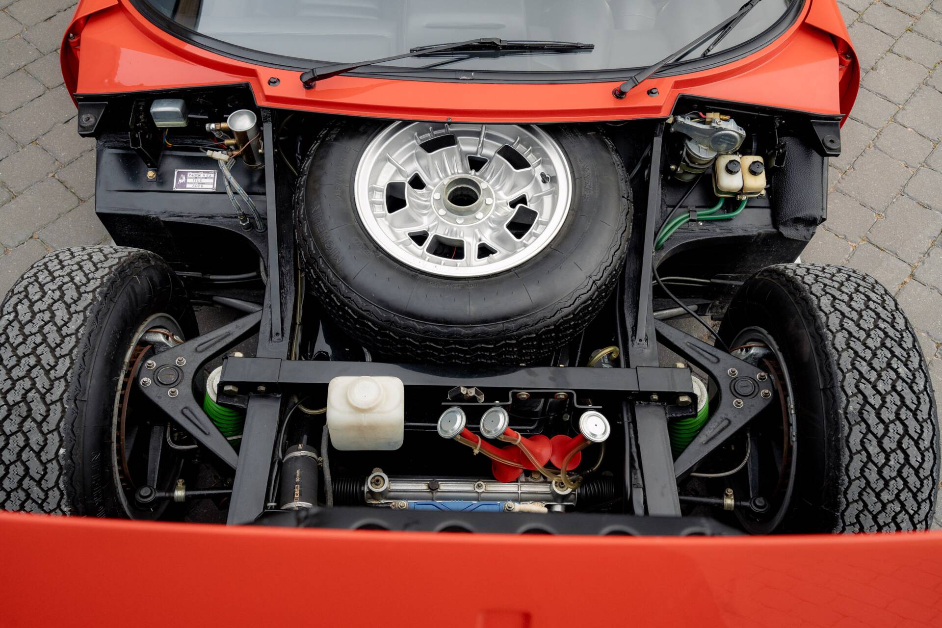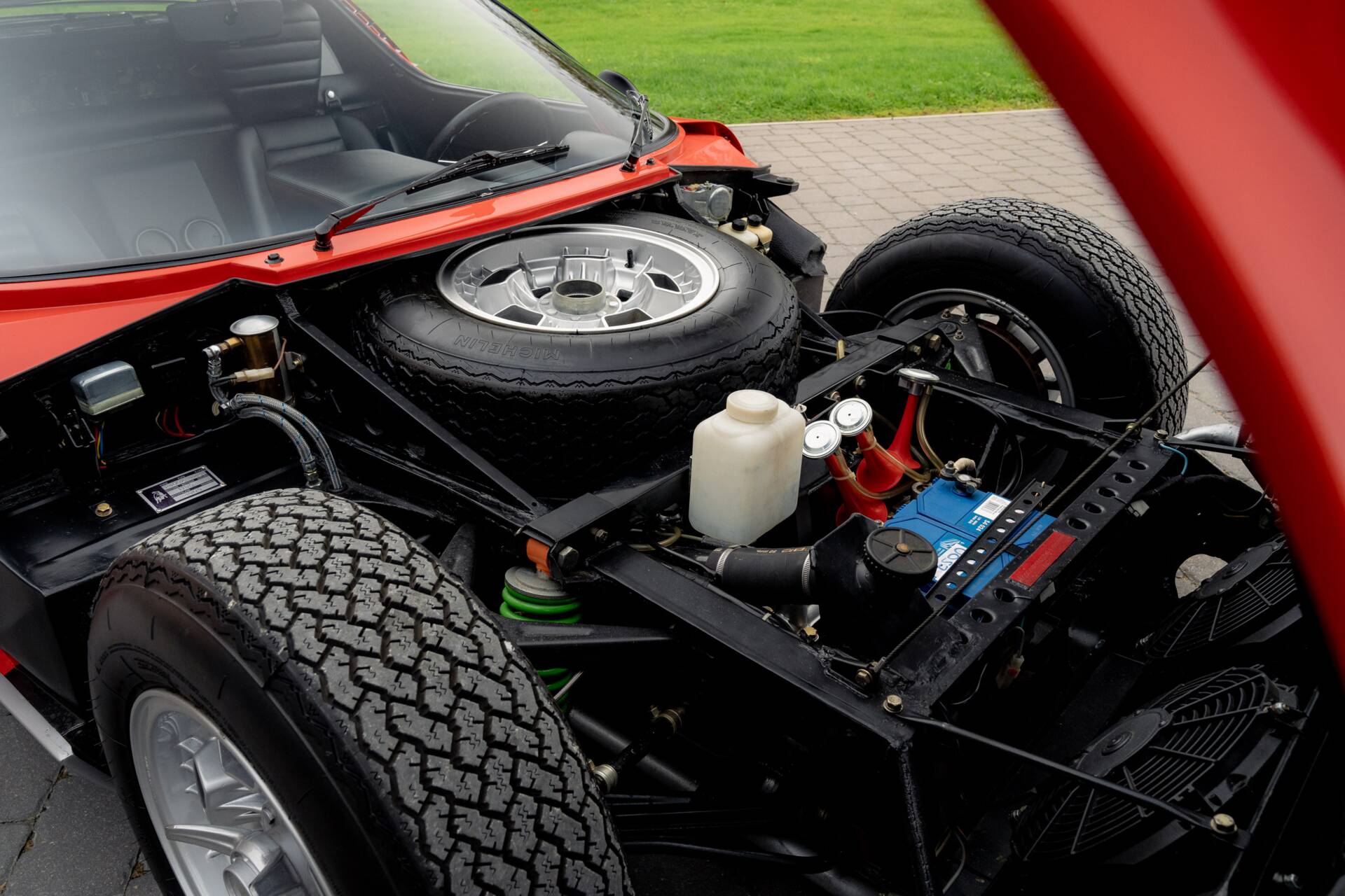At the same time, the then-owner opted to subtly enhance the car’s mechanical specification. These upgrades included the fitment of Miura S brakes, wider SV-type rear wheels and tyres, SV suspension components, and a modernised electrical system, improving both performance and reliability while remaining faithful to the spirit of the model.