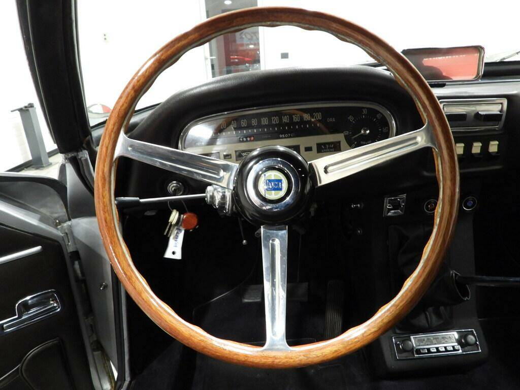 Sedili e pannelli in TVE (Tessuto vinilico elasticizzato) Testa di moro, Moquette in lana nera al pavimento, Volante sportivo a tre razze con corona in legno, Autoradio Blaupunkt originale dell’epoca con antenna al parafango posteriore destro, Alette parasole posteriori, Cerchi in ferro con calotta cromata Lancia con pneumatici Michelin 65 SR15, Lunotto posteriore rialzabile elettricamente tramite tasto, Specchio esterno lato guida al parafango anteriore sinistro