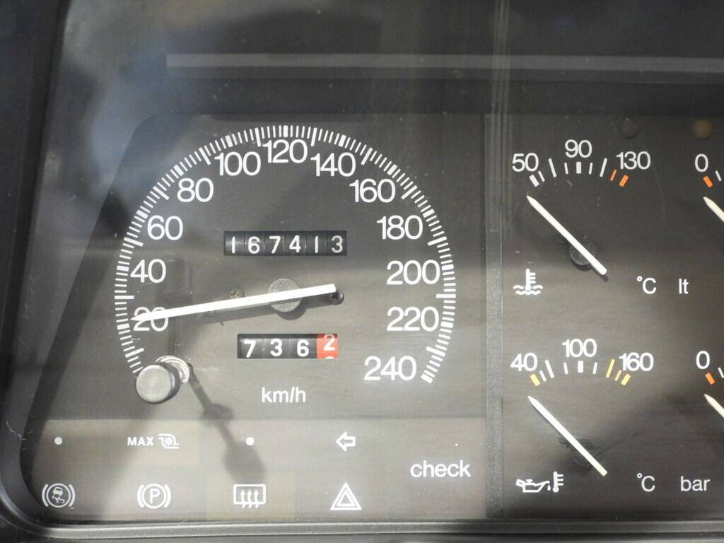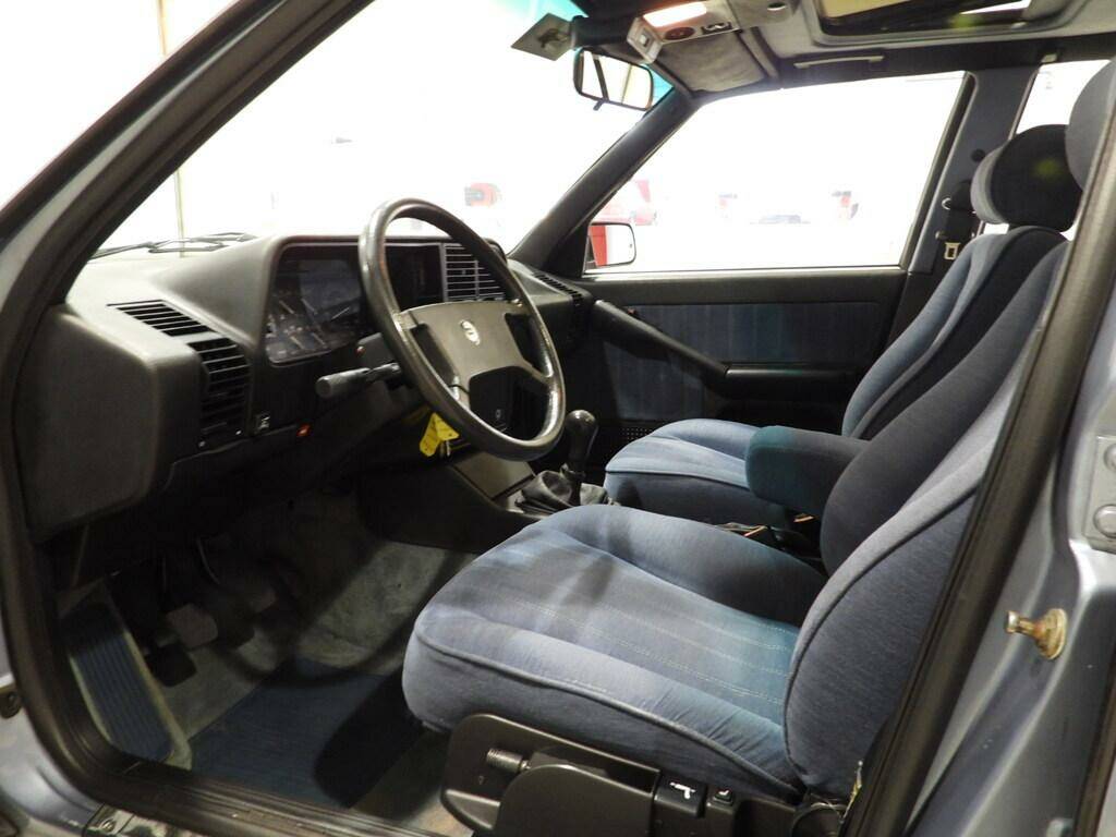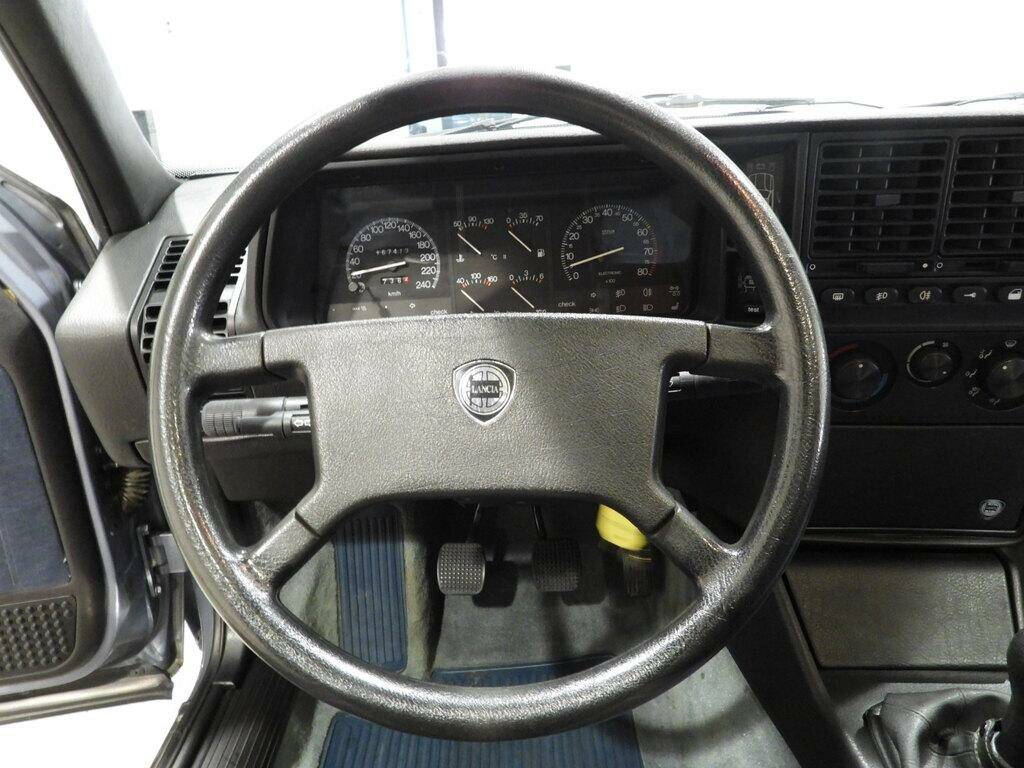 Light blue fabric seats and panels, 2 front and 2 rear headrests, rear armrest, blue wool carpeting, Pioneer AM/FM 7-speaker cassette radio with antenna on the left rear fender, electric front windows, electrically adjustable double exterior mirrors, sunroof, Lancia Speedline 6JX14 alloy wheels with 195/60 R14 tires, headlight washers, rectangular white fog lights