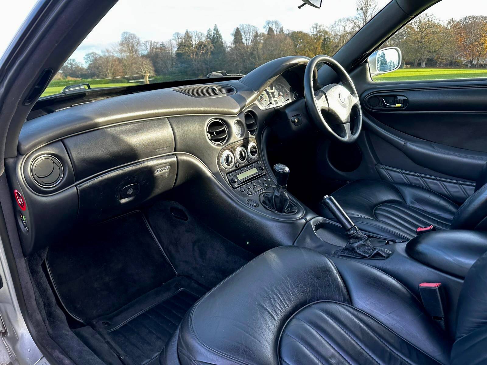 Presented in Grigio Touring metallic with Nero leather interior and matching Nero carpets, this 2000 Maserati 3200 GT offers the perfect blend of classic Pininfarina styling and thrilling twin-turbo performance. It features a 3.2 Litre, Twin Turbo V8, which is mated to a six speed manual gearbox. Some of the features on this Maserati include Full Carbon Interior Kit, CD Changer, Heated Front seats with Memory and more. The history file is made up of old MOTs, Spare Keys, Original Book Pack, Invoices, Up to date V5 and Specification Sheet.