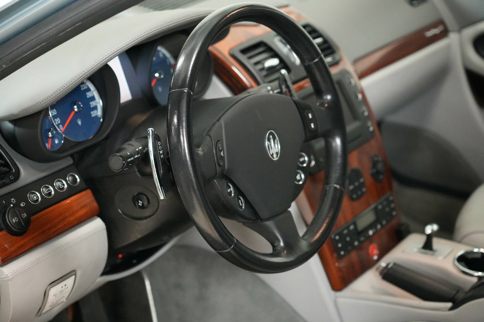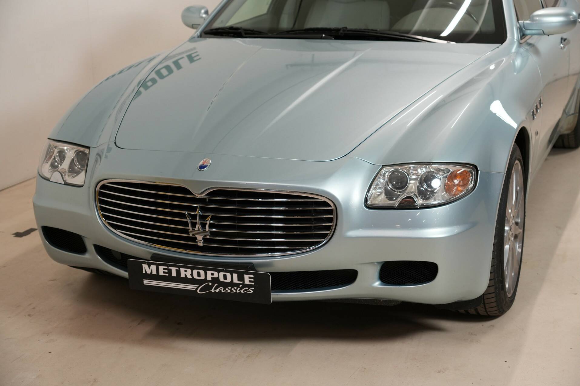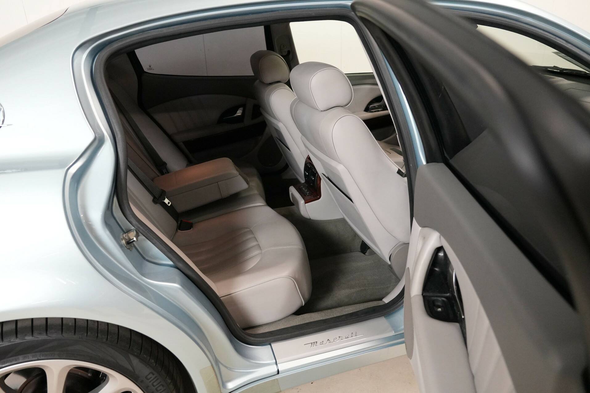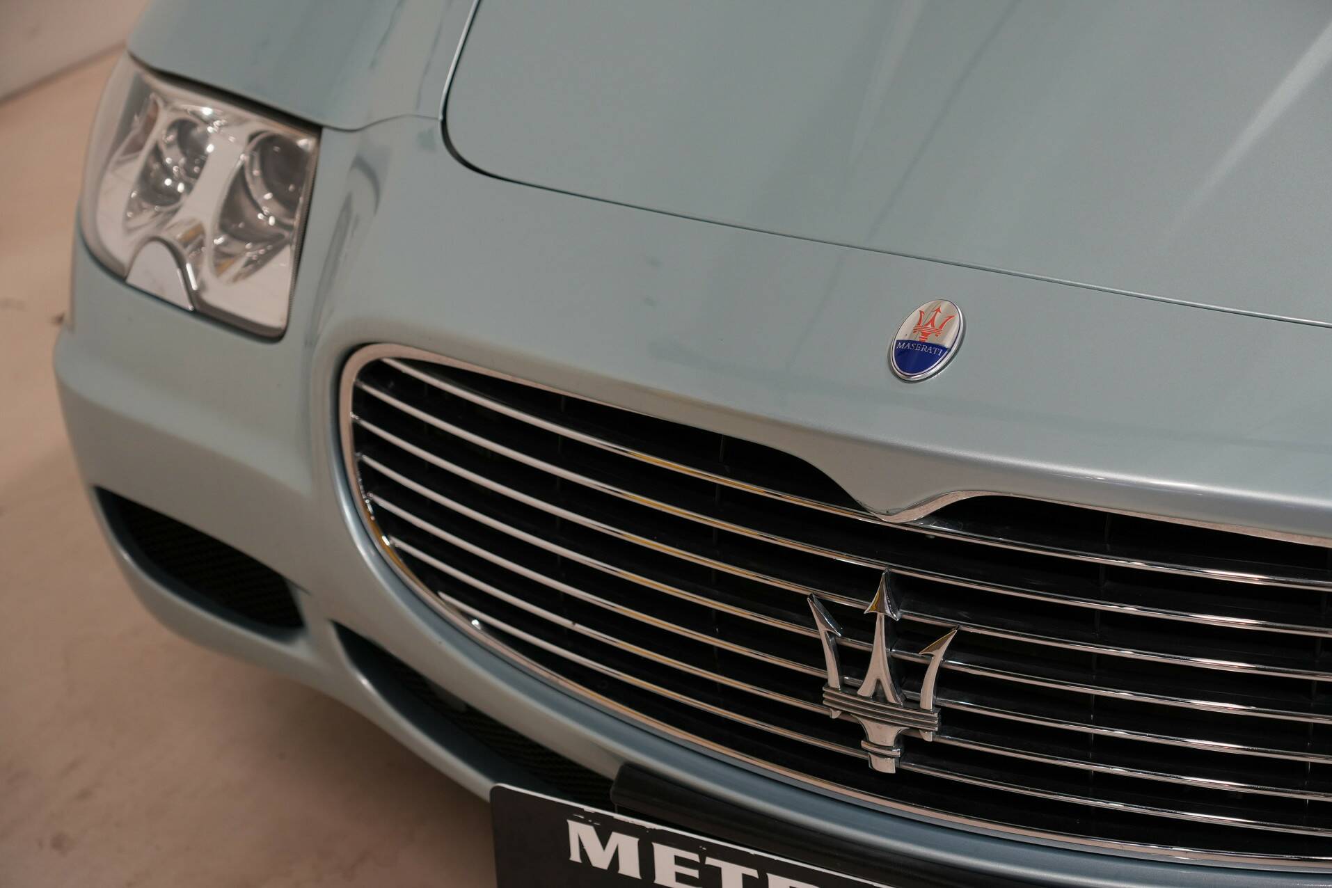 Der hier vorgestellte Quattroporte ist eine aus Japan stammende Version in Hellblau-Metallic, einer Farbe, die sehr gut zum Auto passt. Der Innenraum ist mit grauem Leder bezogen und bietet alle Extras, die diese hochexklusiven Autos bieten. Er steht auf wunderschönen 9-Speichen-Leichtmetallfelgen. Das Auto wurde sehr gut gepflegt und ist kaum von einem Neuwagen zu unterscheiden. Dieser Maserati hat nur 45.581 km auf dem Tacho und fühlt sich wie neu an. Selbstverständlich sind alle Handbücher enthalten. Unter der Haube befindet sich ein fast neuer Motor. Für alle, die einen schönen Quattroporte suchen, ist dies das richtige Auto!