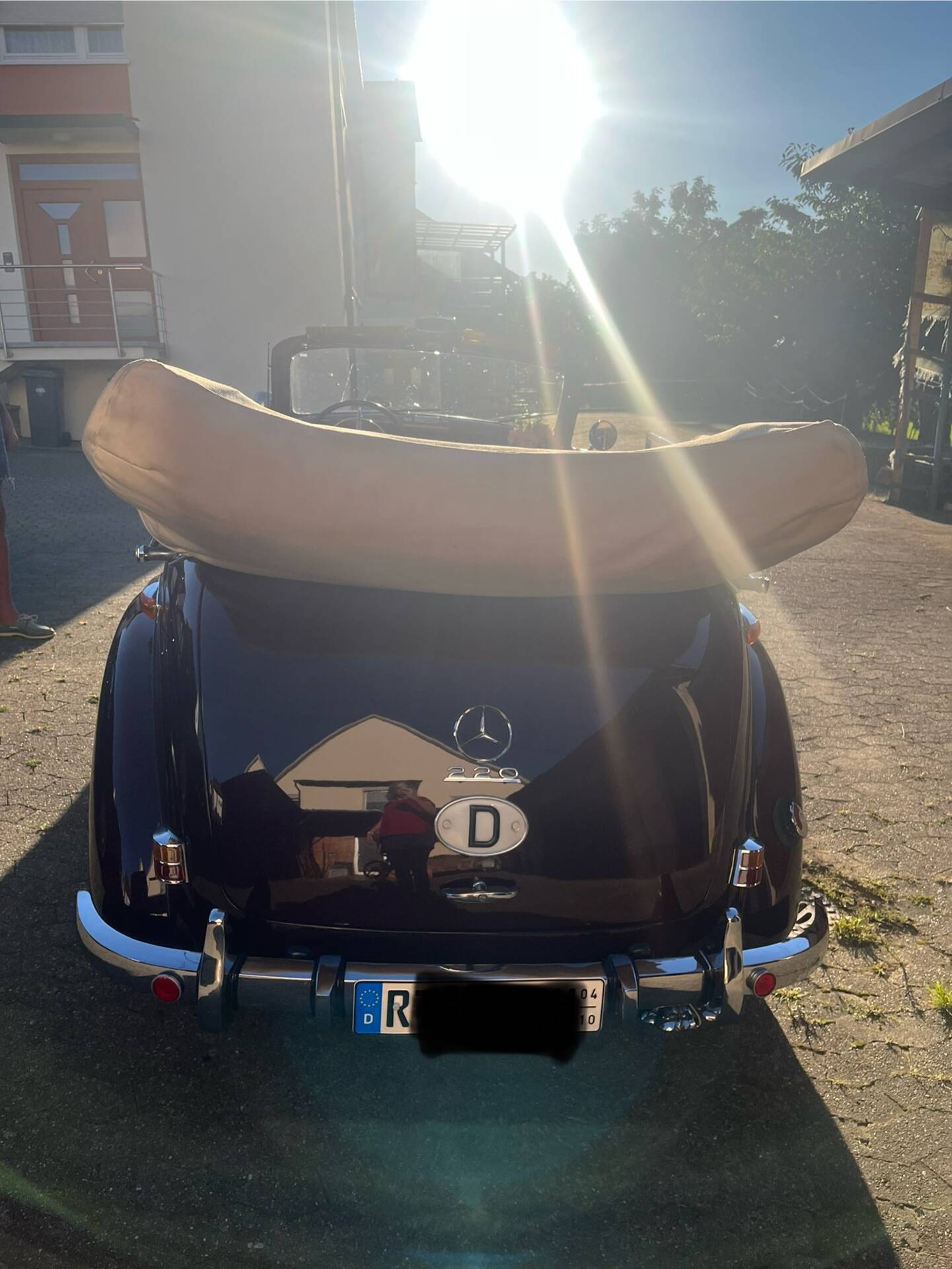 Zum Verkauf steht ein seltener und ausgesprochen gepflegter Mercedes-Benz 220B Cabrio, Erstzulassung 07/1952, mit klassischem braunem Lack und beiger Vollleder-Innenausstattung. Das Fahrzeug befindet sich seid vielen Jahren in Liebhaberhand, ist fahrbereit und mit H-Kennzeichen sowie TÜV bis 05/2026. Der Kilometerstand beträgt 60.500 km, der Wagen wurde immer sorgfältig gewartet und regelmäßig bewegt.