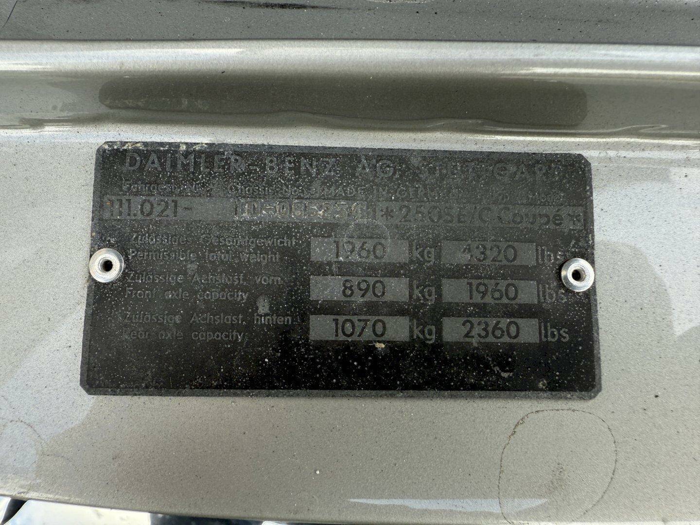 VIN Nr. 11102110085234 (250SE61)