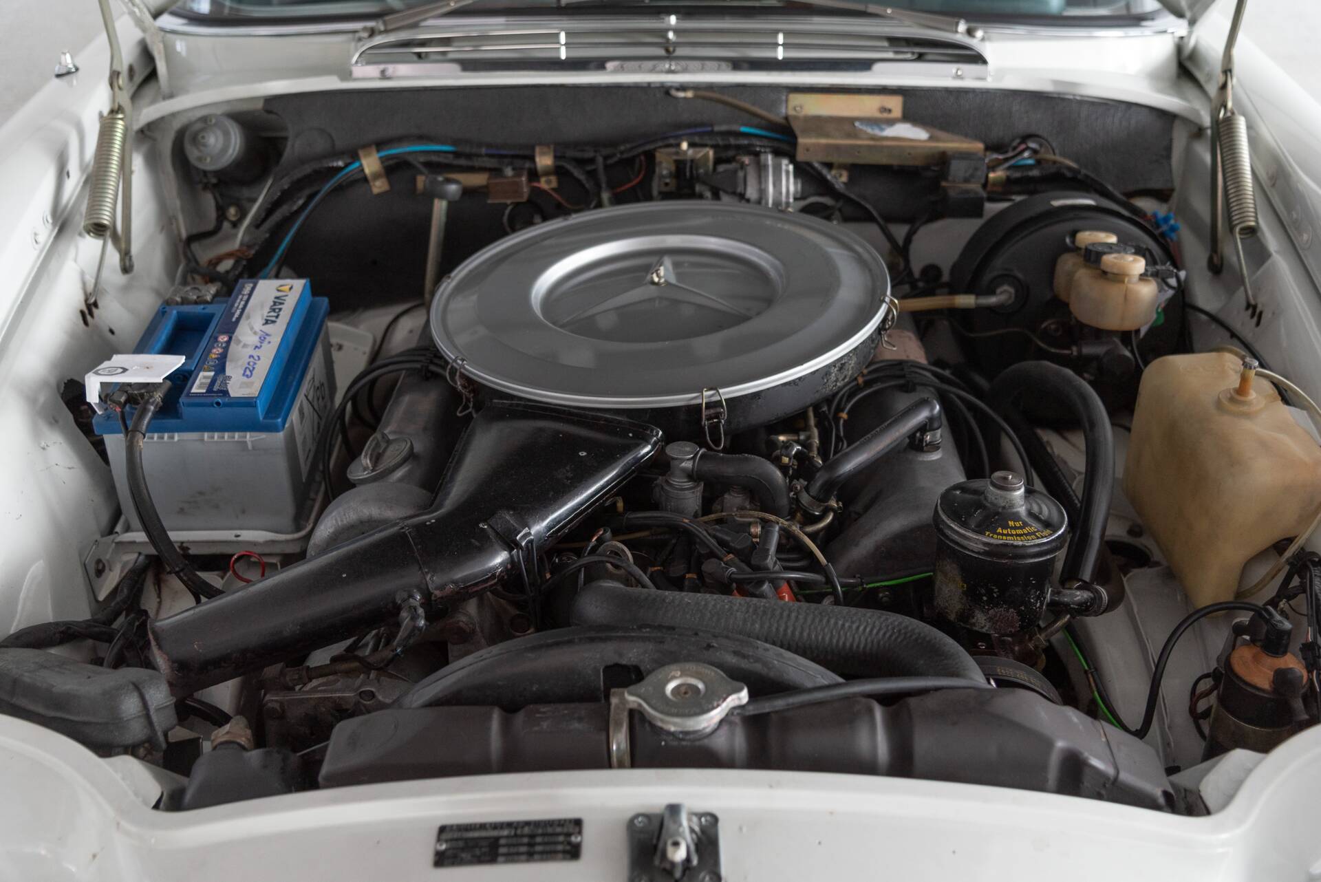 Bereits beim Erstbesitzer erhielt der Wagen im Jahr 1977 ein Austauschgetriebe, das von der Mercedes-Benz Niederlassung München verbaut wurde. Diese Maßnahme ist vollständig belegt, unter anderem durch das originale Tauschaggregatheft. Im Zuge der Restaurierung Ende der 1990er-Jahre wurde zudem der Motor ersetzt; der originale Motor ist jedoch vollständig vorhanden und liegt ausgebaut bei. Die durchgehend nachvollziehbare technische Entwicklung des Fahrzeugs wird von mehreren über die Jahre erstellten Gutachten untermauert, zuletzt 2025 mit einer Bewertung von Note 2.