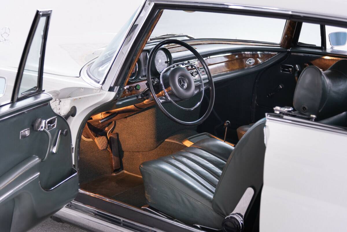 Zum Verkauf steht ein Mercedes-Benz W111 280 SE 3.5 Coupé in Weiß mit grünem Interieur, dessen Historie sich außergewöhnlich klar und nachvollziehbar darstellen lässt. Das Coupé wurde am 06.05.1970 in München an einen Verlag ausgeliefert und blieb trotz insgesamt drei Haltereinträgen bis 1996 durchgehend im Familienbesitz. Erst danach wechselte der Wagen erstmals außerhalb der Familie den Eigentümer. Dieser hielt das Fahrzeug nur ein Jahr, bevor es 1997 vom letzten Besitzer übernommen wurde, der noch im selben Jahr eine umfassende Restaurierung in Auftrag gab. Die Arbeiten wurden 1999 abgeschlossen und sind detailliert dokumentiert.Bereits beim Erstbesitzer erhielt der Wagen im Jahr 1977 ein Austauschgetriebe, das von der Mercedes-Benz Niederlassung München verbaut wurde. Diese Maßnahme ist vollständig belegt, unter anderem durch das originale Tauschaggregatheft. Im Zuge der Restaurierung Ende der 1990er-Jahre wurde zudem der Motor ersetzt; der originale Motor ist jedoch vollständig vorhanden und liegt ausgebaut bei. Die durchgehend nachvollziehbare technische Entwicklung des Fahrzeugs wird von mehreren über die Jahre erstellten Gutachten untermauert, zuletzt 2025 mit einer Bewertung von Note 2.Die Dokumentation dieses Coupés ist außergewöhnlich umfangreich und umfasst den originalen Pappdeckelbrief, die originale Datenkarte, das Serviceheft, das Tauschaggregatheft, eine vollständige fotografische Restaurierungsdokumentation sowie sämtliche Rechnungen. Damit präsentiert sich dieses 280 SE 3.5 Coupé als besonders authentisches und sorgfältig erhaltenes Exemplar eines der begehrtesten Modelle der Baureihe W111, ein Fahrzeug mit Charakter, Historie und Substanz. Der Mercedes 280 SE 3.5 wurde stets als das Topmodell der W 111 Baureihe bezeichnet, welche zwischen 1959 und 1971 produziert wurde. Sowohl das Cabriolet als auch das Coupé sind Fahrzeuge der Spitzenklasse mit Stil und Eleganz.Es dauerte zehn Jahre, bis in der Baureihe W 111 ein V8 Motor verbaut wurde. Dieser bringt mit seinen 3499 cm³ Hubraum damals erstaunliche 200 PS auf die Straße. Der Wagen wurde allerdings nicht nur technisch, sondern auch optisch optimiert. Die Frontpartie wurde mit einer flacheren Motorhaube und einem niedrigeren Kühlergrill versehen – wodurch auch die Bezeichnungen „Hoch- & Flachkühler“ entstanden sind.Die Flachkühler (und damit auch unser W 111) gelten heute als die begehrteste Variante. Besonders wertvoll sind diese Fahrzeuge auch wegen ihrer geringen Stückzahl. Von dem 280 SE 3.5 Coupé wurden zwischen 1969 und 1971 gerade einmal 3270 Stück produziert.